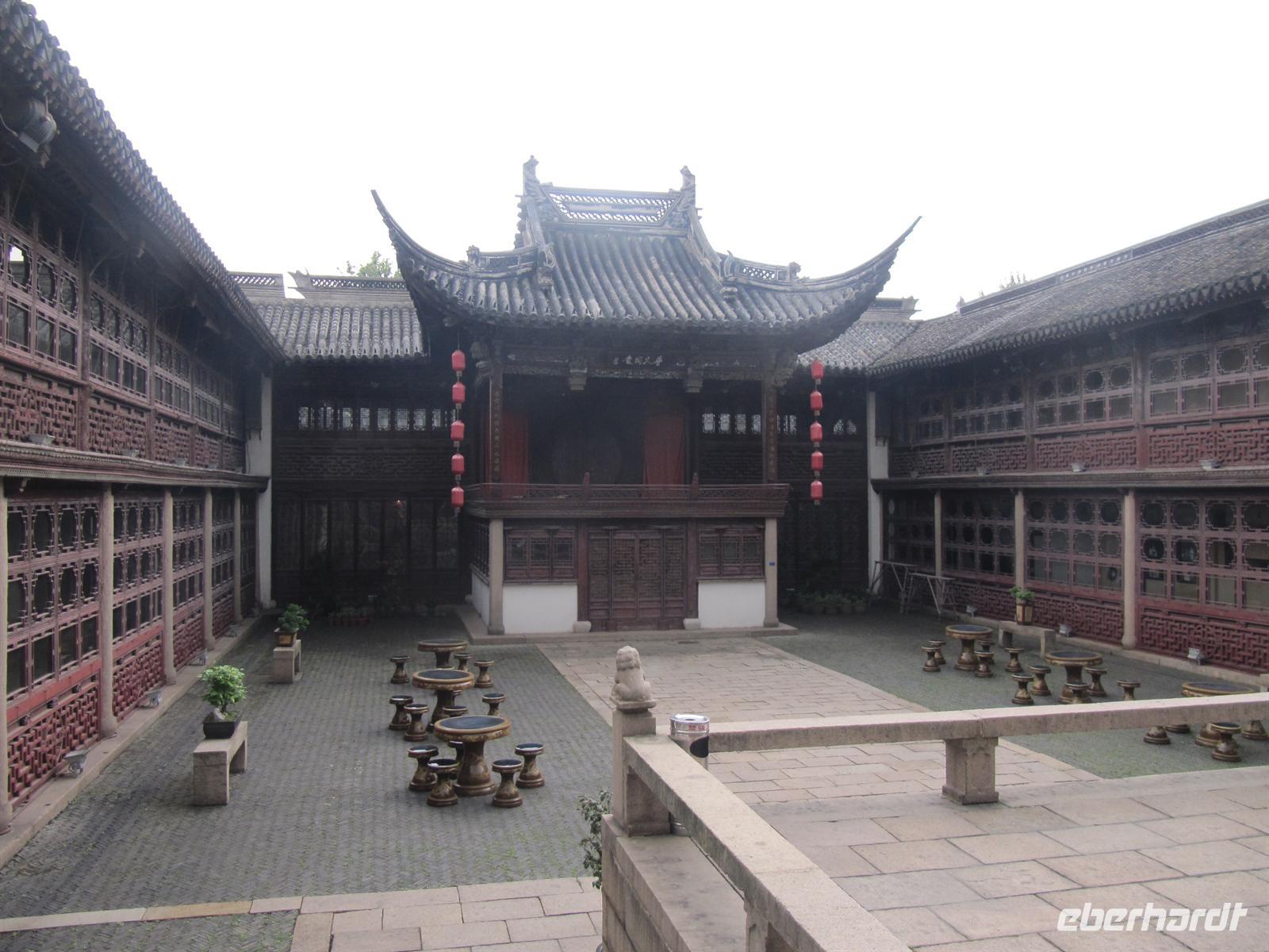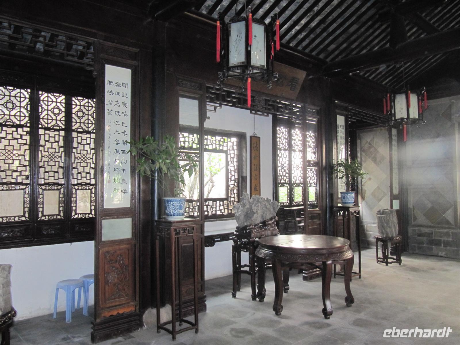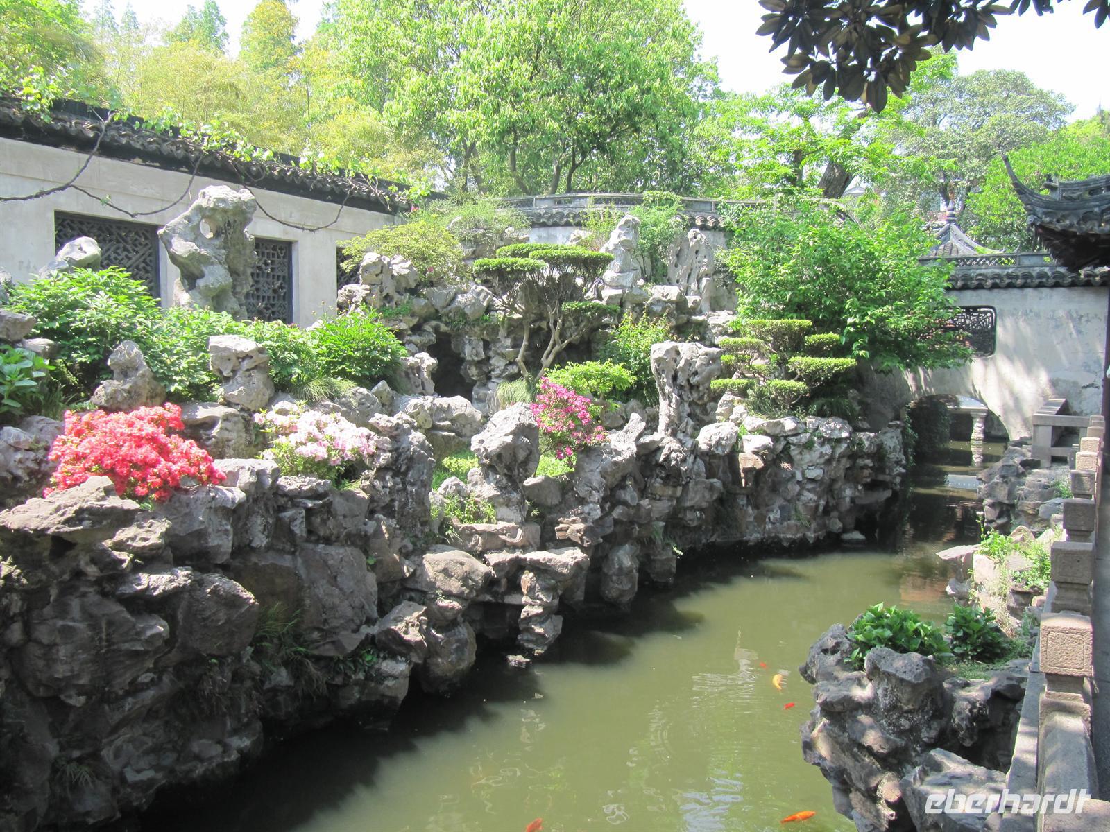 Suzhou erreichten wir am frühen Nachmittag und gönnten uns eine kurze Pause in der Altstadt, um etwas zu essen und zu trinken, bevor es zu einem UNESCO-Weltkulturerbe ging, zum Garten des Meisters der Netze. Diese wunderschöne Anlage chinesischer Gartenbaukunst ist auf einen Hochbeamten aus der Ming-Dynastie zurückzuführen, der ihn für sich und seine Familie anlegen ließ. Bis zum Jahre 1950 war er in privater Hand und gehörte zuletzt einem berühmten chinesischen Maler.
