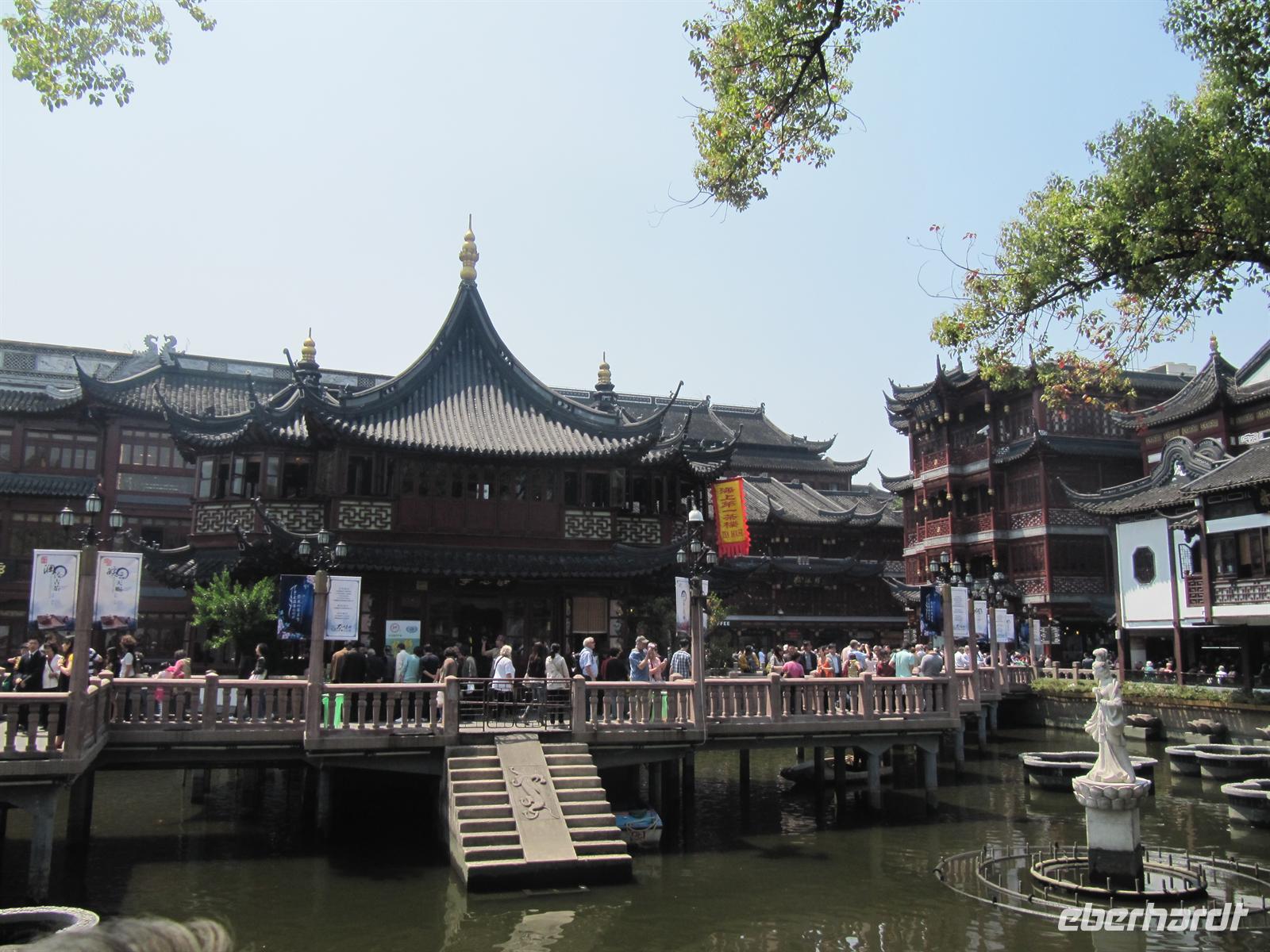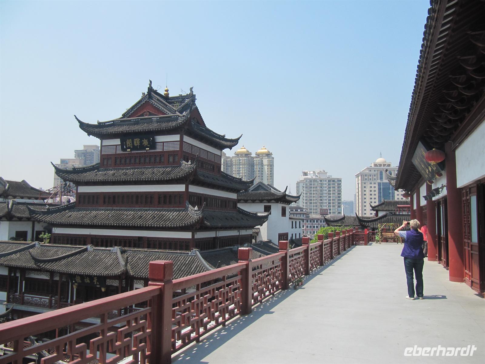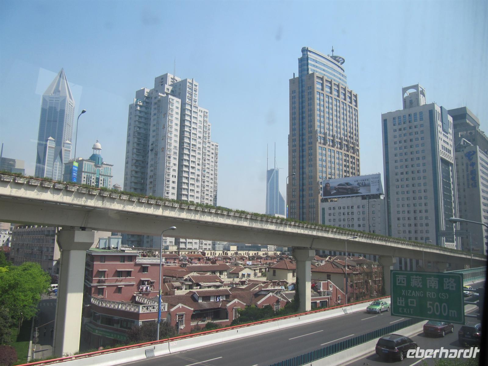 Ein Land in einer Stadt - normalerweise reichen 22 Millionen Einwohner + 4 Millionen Wanderarbeiter + 3 Millionen Touristen aus, ein Land zu bevölkern, nicht so in China. Denn Shanghai ist trotz dieser beeindruckenden Zahlen nicht die größte chinesische Stadt, sondern erreicht nur Rang 2. Dafür hält die Metropole am Huangpu jede Menge Superlative bereit, sie ist in vielerlei Hinsicht eine wahre Weltmetropole. Durchstreift man Shanghai, wähnt man sich in Paris, London oder New York, was die Mode, die Glaspaläste, die multinationalen Firmen, die Luxusmarken, das Flair und Weltgewandtheit der Shanghaier angeht. Daneben bietet diese Stadt auch noch kulturelle Sehenswürdigkeiten, die zu entdecken sich ebenfalls lohnt. Wo also anfangen? Wir entschieden uns für die Altstadt und bummelten durch die nicht touristisch erschlossene Zone in den Bereich, der eigens für die Millionen Besucher rekonstruiert und aufgehübscht wurde. Wir besuchten den Yu-Garten, eine fünf Hektar große Anlage mit künstlichen Seen und Bergen, Pavillons, kleinen Kanälen und Drachenskulpturen, welcher inmitten des Großstadttreibens ein Hort der Ruhe und Besinnlichkeit darstellte. Anschließend ging es über die Zickzackbrücke zum Zentrum des alten Shanghai, um einer Teezeremonie in einem Teehaus über den Dächern der Altstadt beizuwohnen oder einfach dem bunten Treiben vier Stockwerke tiefer in den Gassen und Geschäften zuzuschauen. Vom alten Shanghai ging es danach mit dem Bus auf die andere Seite des Flusses, in das neue Geschäftsviertel und Finanzzentrum Pudong. Schon vom Bund, der berühmten Uferstraße aus, kann man die Wolkenkratzer bestaunen, die seit einigen Jahren im Stadtteil Pudong in den Himmel wachsen. Einer davon war jetzt unser Ziel, der