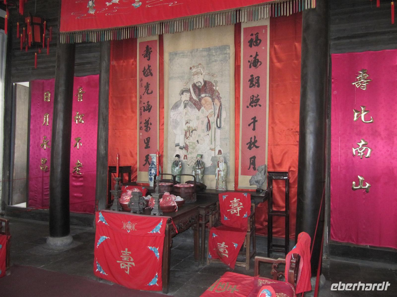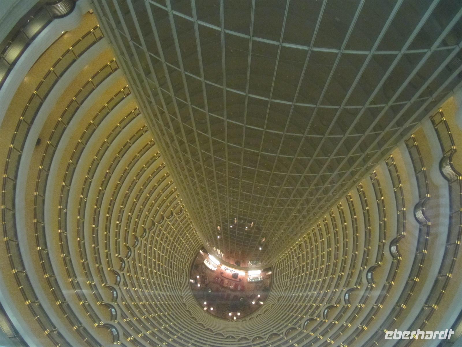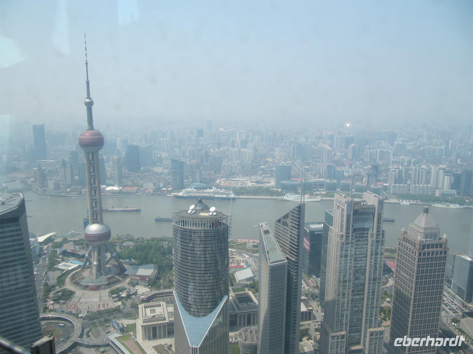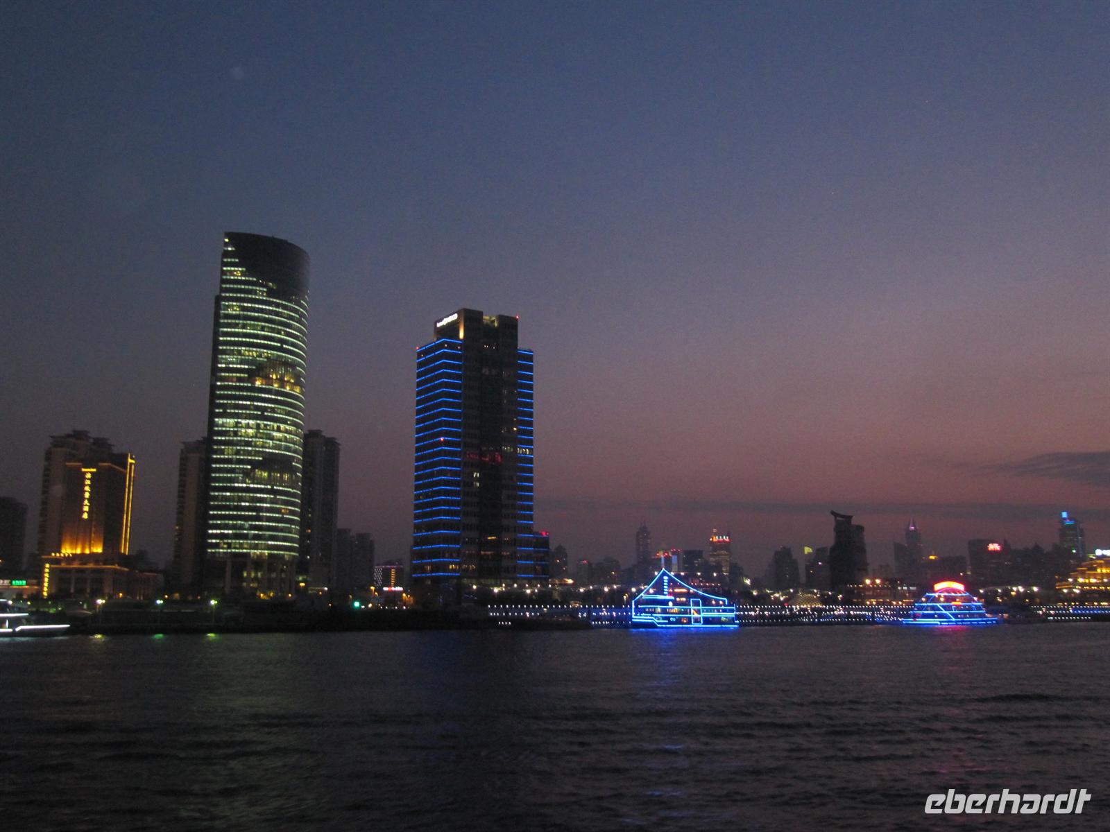 492 Meter hohe, 1999 fertig gestellte Jinmao-Tower, nach eigenem Bekunden das siebenthöchste Gebäude der Welt. Die beiden Fahrstühle trugen uns mit 9,1 Meter/Sekunde in 45 Sekunden in das 88. Stockwerk, von wo aus sich uns ein atemberaubender Blick über Shanghai und den Huangpu bot. Im Anschluss an den Ausflug in die Wolken kehrten wir zu ebenerdigen Besichtigungsobjekten zurück und durchfuhren das Gelände der EXPO 2010 mit den restlichen, noch nicht abgerissenen Pavillons, bevor wir dem Shanghaier Kinderpalast einen Besuch abstatteten und einer kleinen Gruppe beim Tanzunterricht zuschauen konnten. Das anschließende mongolische Barbecue, ein rustikales Grillbuffet in ebenso rustikaler Umgebung, diente der Erneuerung unserer Energievorräte, die für das heutige Abendprogramm benötigt wurden. Mit einem Ausflugsschiff ging es auf eine spektakuläre Flussfahrt entlang der abendlichen, schön beleuchteten Skyline von Pudong, flankiert von den nicht minder schön anzusehenden Kolonialbauten entlang des Bundes. Bevor uns unser Bus ins Hotel zurück brachte, rundeten ein Stopp an der Nanjing-Road, dem Shanghaier Einkaufsparadies und im französischen Viertel, mit seinen gemütlichen Bars, Boutiquen und Kneipen einen abwechslungsreichen Tag ab.