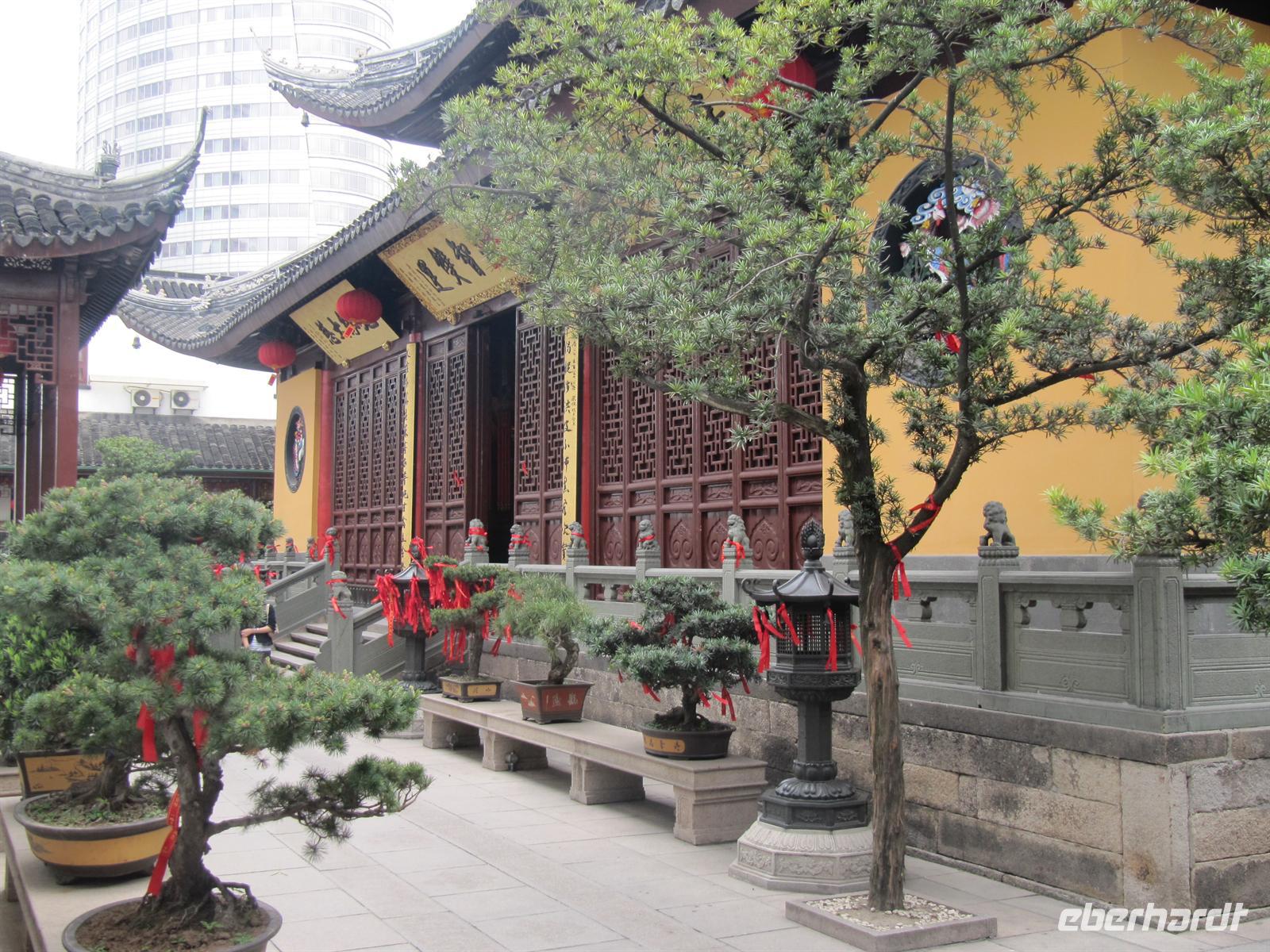 Nach dem Frühstück trafen wir uns alle zu einer gemeinsamen Kalligrafiestunde, um wenigstens etwas in die Geheimnisse der chinesischen Schriftzeichen eindringen zu können. Unser lieber Josef gab sich die allergrößte Mühe, uns die Symbolik und Strichführung der einzelnen Zeichen näherzubringen, aber jedem von uns wurde dabei deutlich vor Augen geführt, wie schwierig diese Schrift doch ist und wie glücklich wir uns mit unseren Buchstaben schätzen können. Trotzdem war es für alle ein Erlebnis und jeder konnte den Namen oder das Sternzeichen seiner Lieben in Chinesisch auf Reispapier kalligrafiert mit nach Hause nehmen. Nach dem Auschecken aus dem Hotel begann unsere letzte Besichtigungstour in Shanghai. Die Fahrt führte uns zuerst zum Jade-Buddha-Tempel, wo wir zwei Buddhafiguren aus dem kostbaren Material besichtigen und in den insgesamt vier Hallen wissenswertes über die Geschichte des Tempels, gerade auch in der Mao-Zeit, erfahren konnten. Anschließend fuhren wir zum Shanghai-Museum, welches auf vier Stockwerken einen Querschnitt der chinesischen Geschichte in Kunst, Kalligrafie, Bildhauerei,