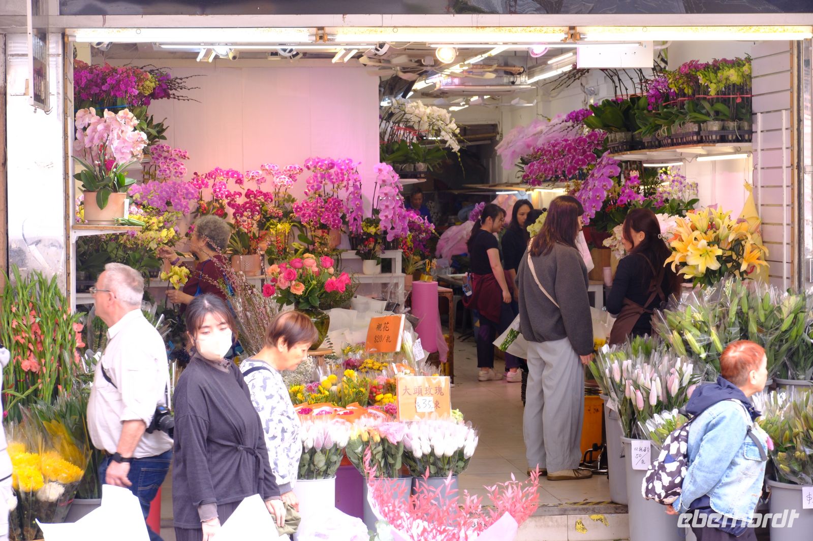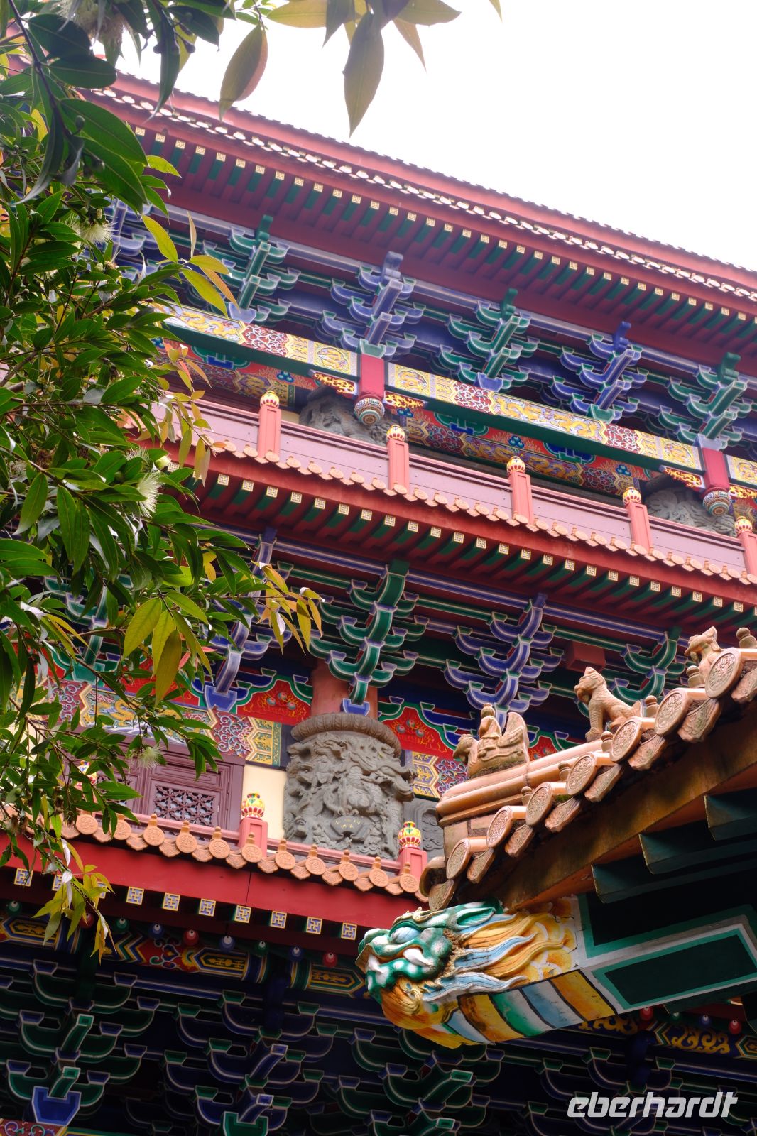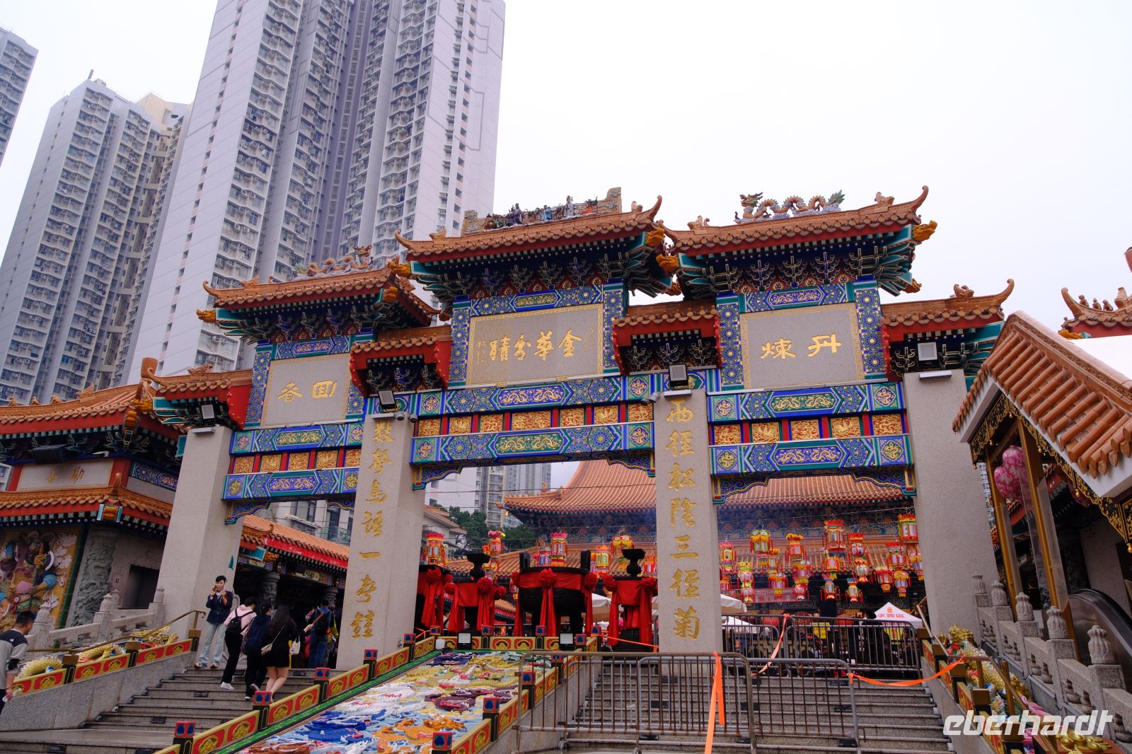 Wir erreichten unser kleines Hotel im Hongkonger Stadtteil Mong Kok im Bezirk Kowloon und machten uns kurz frisch. Ohne Koffer ging es dann mit dem Kleinbus zu unserem 1. Stopp – dem Wong-Tai-Sin-Tempel. Hier brachte uns Michael die Religion des Taoismus und des Buddhismus näher, erklärte uns die Tierkreiszeichen und den Alltag im Taoismus. Wir gingen durch den Tempel, in welchem sich viele der Gläubigen mit allerhand Räucherstäbchen tummelten. Der Tempel mitten im Hochhaus-Dschungel ist ein toller Kontrast und ein super Fotomotiv! Im Anschluss fuhren wir ein paar Meter mit dem Bus zum Chi-Lin-Kloster mit Klostergarten. Hier konnten wir in Ruhe die grüne Oase und das ruhige Kloster anschauen und genießen. Nach diesem Einblick ging es mit dem Bus zum Markt – hier werden täglich frischer Fisch, Fleisch, Gemüse und Obst gehandelt. Weiter ging es dann noch zum Goldfischmarkt, über den Blumenmarkt bis zum Vogelmarkt. Viele Eindrücke, Gerüche, Farben und Menschen – nun ging es erst einmal zum Mittagessen. Wir besuchten ein typisches Lokal und hatten ein Dim-Sum-Mittagessen, eine kantonesische (Südchina) Spezialität. Neben Reis, gebratenem Gemüse, frittiertem Süß-Sauer-Hähnchen und knusprigem Schweinefleisch gab es gedämpfte Teigtaschen, gefüllt mit Meeresfrüchten, Gemüse oder Fleisch – sehr lecker!