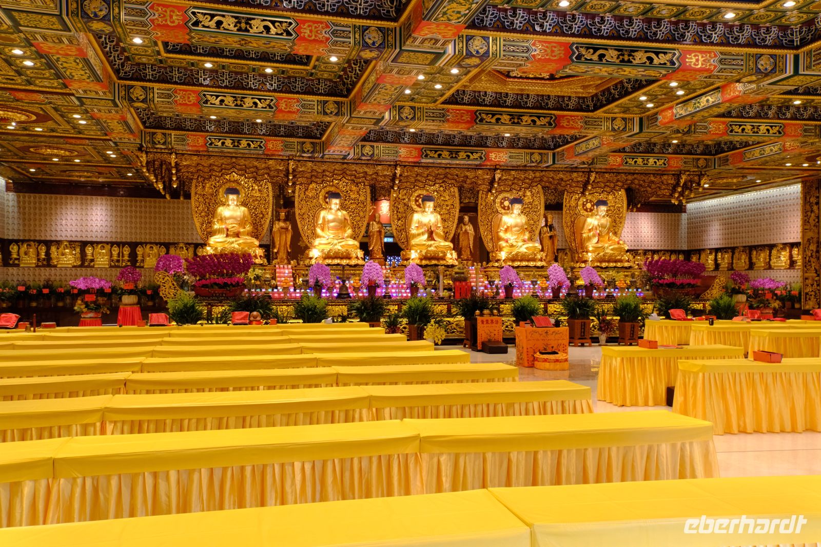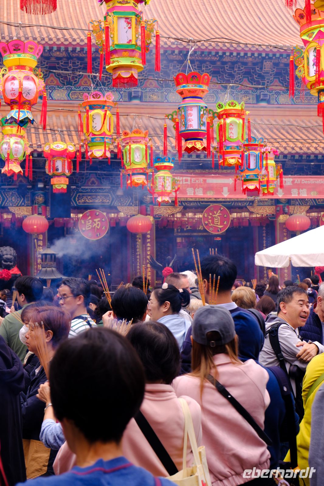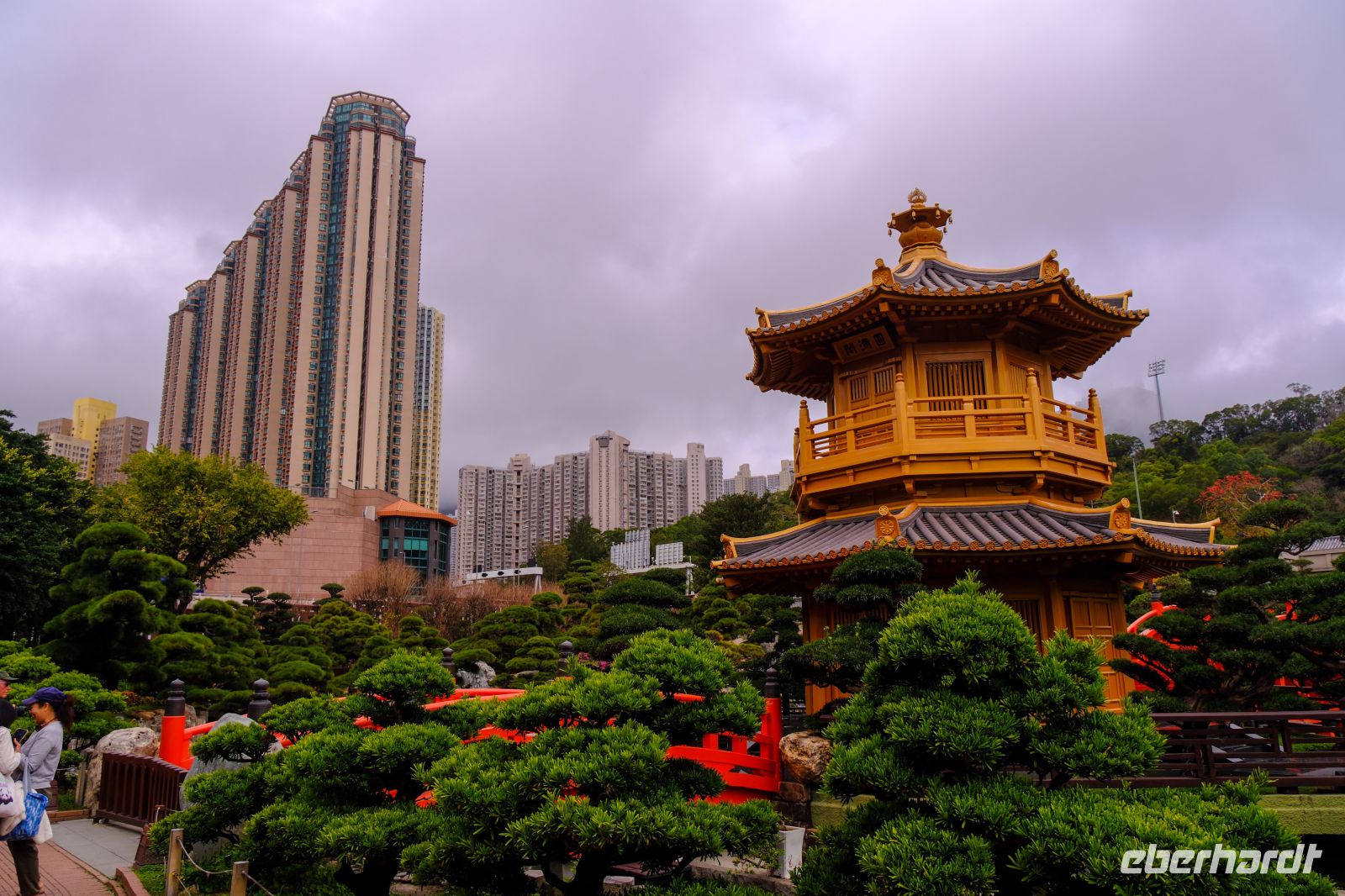 Wir erreichten unser kleines Hotel im Hongkonger Stadtteil Mong Kok im Bezirk Kowloon und machten uns kurz frisch. Ohne Koffer ging es dann mit dem Kleinbus zu unserem 1. Stopp – dem Wong-Tai-Sin-Tempel. Hier brachte uns Michael die Religion des Taoismus und des Buddhismus näher, erklärte uns die Tierkreiszeichen und den Alltag im Taoismus. Wir gingen durch den Tempel, in welchem sich viele der Gläubigen mit allerhand Räucherstäbchen tummelten. Der Tempel mitten im Hochhaus-Dschungel ist ein toller Kontrast und ein super Fotomotiv! Im Anschluss fuhren wir ein paar Meter mit dem Bus zum Chi-Lin-Kloster mit Klostergarten. Hier konnten wir in Ruhe die grüne Oase und das ruhige Kloster anschauen und genießen. Nach diesem Einblick ging es mit dem Bus zum Markt – hier werden täglich frischer Fisch, Fleisch, Gemüse und Obst gehandelt. Weiter ging es dann noch zum Goldfischmarkt, über den Blumenmarkt bis zum Vogelmarkt. Viele Eindrücke, Gerüche, Farben und Menschen – nun ging es erst einmal zum Mittagessen. Wir besuchten ein typisches Lokal und hatten ein Dim-Sum-Mittagessen, eine kantonesische (Südchina) Spezialität. Neben Reis, gebratenem Gemüse, frittiertem Süß-Sauer-Hähnchen und knusprigem Schweinefleisch gab es gedämpfte Teigtaschen, gefüllt mit Meeresfrüchten, Gemüse oder Fleisch – sehr lecker!
