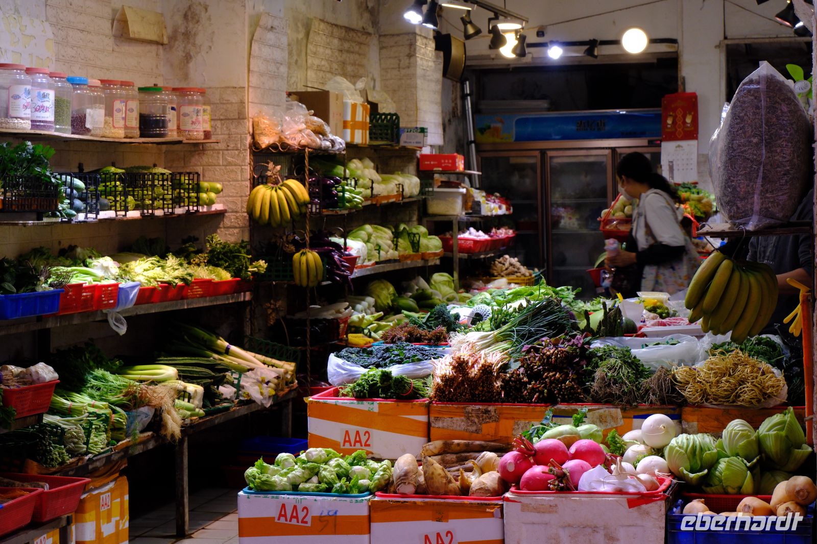 Mit der Seilbahn ging es dann hinauf auf etwa 1.000 Meter. Von hier aus ging es über einige Stufen hinunter zu den einzelnen Aussichtspunkten – es war bestes Wetter und dazu ein toller blauer Himmel. Auch wenn das eine oder andere Wölkchen die Bilder schöner gemacht hätte, es war herrliches Eberhardt-Wetter! Wir genossen die Aussichten und liefen in aller Ruhe den Rundweg entlang. Etwa auf halber Strecke machten wir eine Mittagspause – danach gab es für alle, die mochten, noch eine kleine Kletterpartie auf den Löwenfelsen hinauf. Hier gab es einen fantastischen Rundumblick auf das Gebirge, das aussah wie gemalt. Auch tolle Fotos entstanden hier … Danach ging es wieder hinunter vom Felsen und gemeinsam mit der Gruppe weiter zurück zur Seilbahnstation. Nun ging es die Treppen wieder hinauf, die wir zuvor hinuntergegangen waren – allerdings über einen anderen Weg. Wir hatten Zeit und machten alles in aller Ruhe. Mit der Seilbahn ging es dann wieder hinunter – ein klasse Tag! Aber er war noch nicht zu Ende: Am Nachmittag besuchten wir noch die Tunxi-Altstadtstraße. Hier machten wir Halt bei einer lokalen Teebäuerin, die uns den leckeren Tee der Region servierte und uns tolle Fakten darüber erzählte. Wir flanierten dann noch etwas über die Straße und es gab Freizeit zum Kaffeetrinken und Entspannen. Anschließend ging es ins Restaurant – hier wurden wir mit Trommelwirbel auf Chinesisch empfangen, pompös wie einst der Kaiser. Das Essen war wie immer fantastisch – eine große Auswahl von allem am runden Tisch. Von Tofu (auch liebevoll Torfu genannt) in gebratener und geräucherter form über Eintöpfe, gebratenen Gemüse und frittierten Hünchen über "Rindfleischpfanne" auf chinesisch und Bambusprossen.