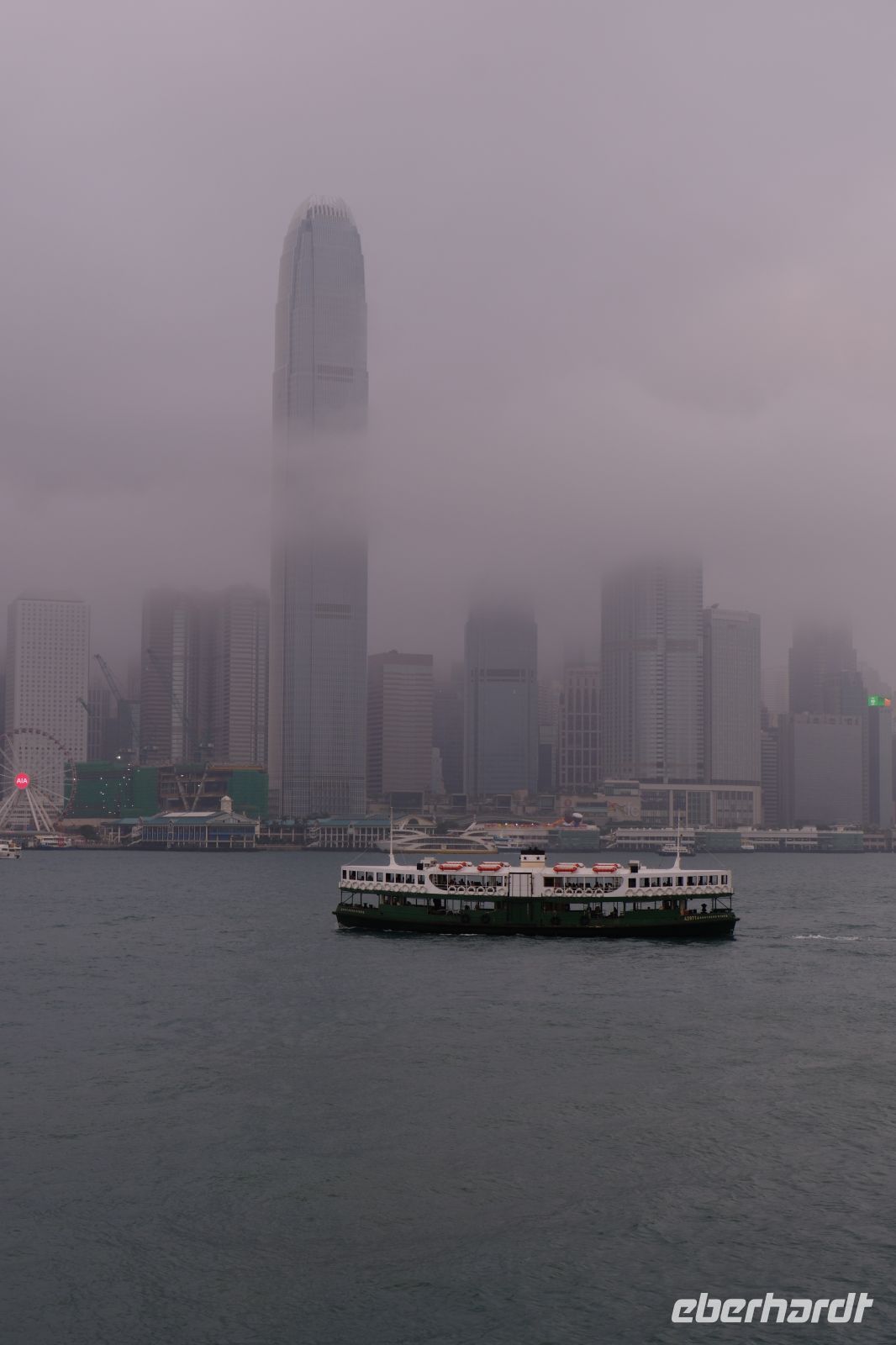 Die schönen verzierten Dächer und mehrstöckigen Pagoden waren sehr beeindruckend. Zwischendurch gab es ein paar kleine Koi-Becken und am Ende die große Halle der Tausend Buddhas. Nach der Besichtigung liefen wir wieder zum Klostervorplatz. Der Nebel war etwas verflogen und wer möchte, konnte nun gemeinsam mit mir die Stufen zum Großen Buddha (Big Buddha) besteigen. Dies ist der weltweit zweitgrößte freistehende Buddha in sitzender Haltung – wirklich pompös. Oben im Buddha selbst konnte man eine Ausstellung besuchen und sogar den vermeintlichen Zahn des Buddha bestaunen (mit viel Fantasie). Weiter ging es dann zu einer Kaffeepause in dem kleinen Dorf. Mit der Seilbahn ging es wieder hinunter und wir fuhren mit dem Bus wieder in die Innenstadt. Von Hongkong Island ging es dann mit der berühmten Star Ferry hinüber nach Kowloon.