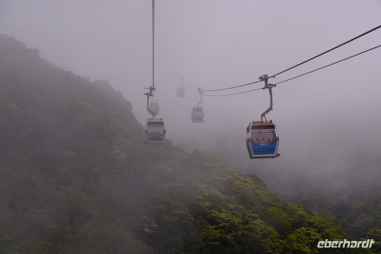 Ein weiterer Tag der Reise, ein weiteres Highlight! Bei bestem Eberhardt-Wetter (wie gebucht!) ging es ins Gelbe Gebirge. Mit dem Bus ging es zunächst in die Berge. Unsere englischsprachige Guide für die Region, Jessica, erzählte uns viel über den Teeanbau, die Holzproduktion und vieles mehr über die Region – ich übersetzte für die Gruppe. Angekommen ging es wie immer zunächst zum Eingang und weiter mit dem Shuttlebus. Auf dem Weg zur Seilbahnstation wurden wir dann noch Zeugen, wie eine riesige unbemannte Drohne Güter auf den Berg hochflog – unglaublich!