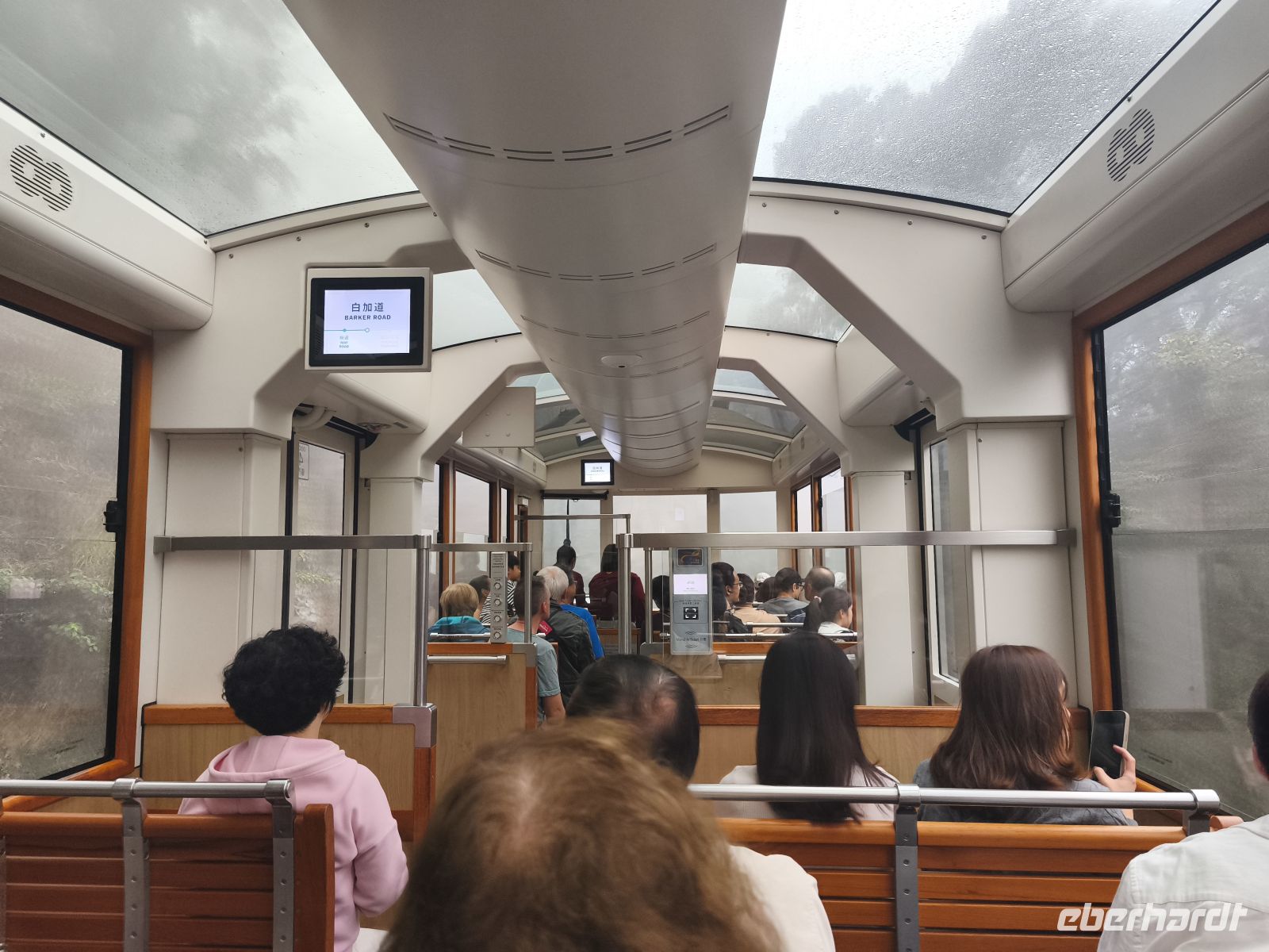 Unser letzter Tag in Hongkong – die Koffer wurden an der Rezeption verstaut und wir fuhren mit dem Bus nach Hongkong Island. Als Erstes fuhren wir mit einer der ikonischen Doppeldecker-Straßenbahnen. Wir stiegen als Erste ein und sicherten uns die tollen Plätze in der 2. Etage. Wir fuhren einige Stationen und Michael erklärte uns die Stadt, die an uns vorbeizog. Weiter führte uns ein kleiner Spaziergang durch das Finanzviertel. Mit der Peak Tram, einer Standseilbahn, ging es dann hinauf auf den Victoria Peak. Leider konnten wir die Aussicht aufgrund des starken Nebels nicht genießen – schade! Aber für das Wetter kann keiner etwas … (Kommentar aus der Zukunft: Zu dem Zeitpunkt wusste es noch keiner, aber dies sollte der letzte Tag mit schlechtem Wetter auf der gesamten Reise sein!)