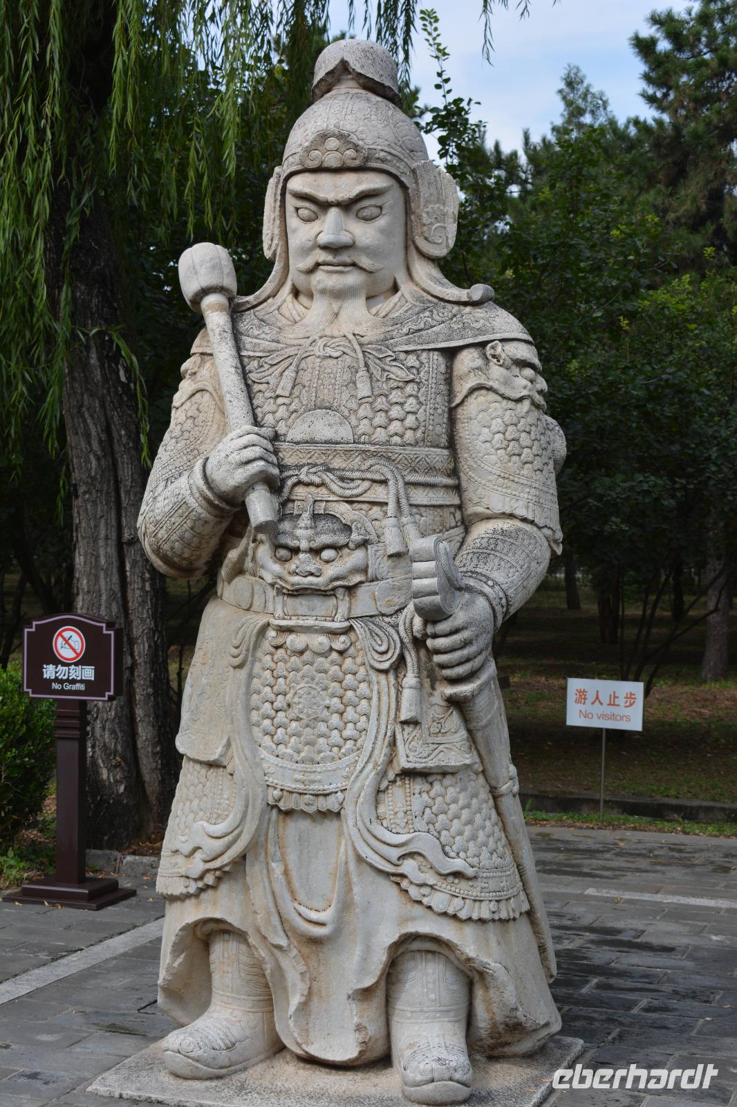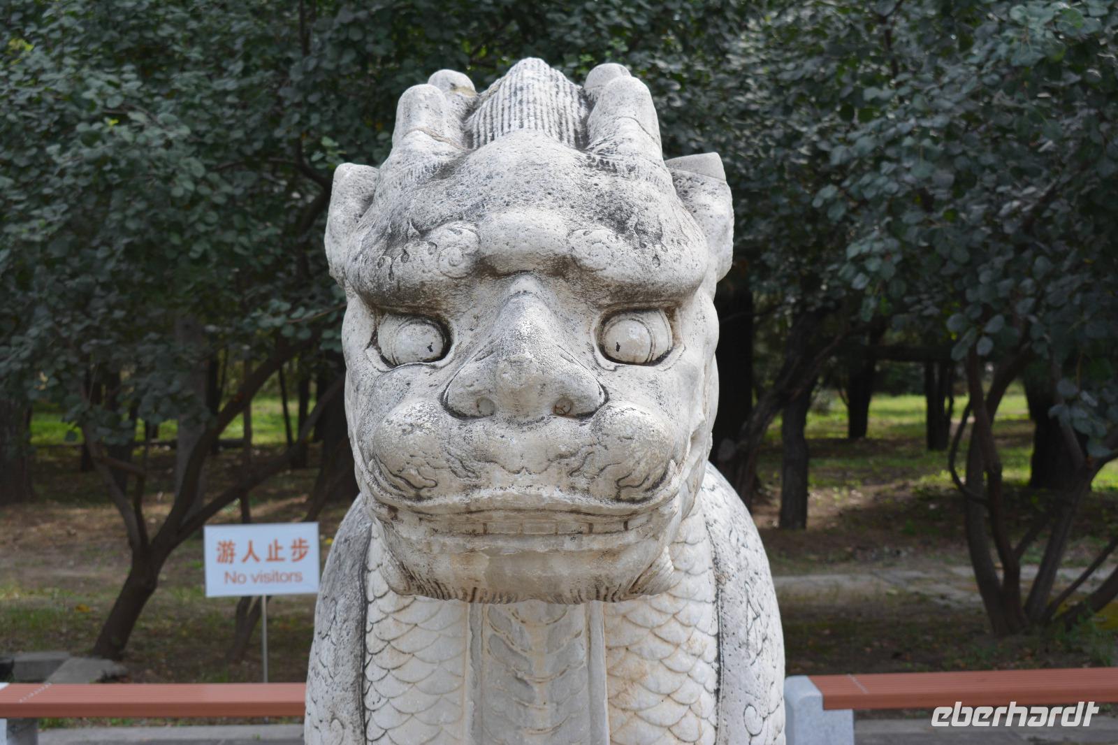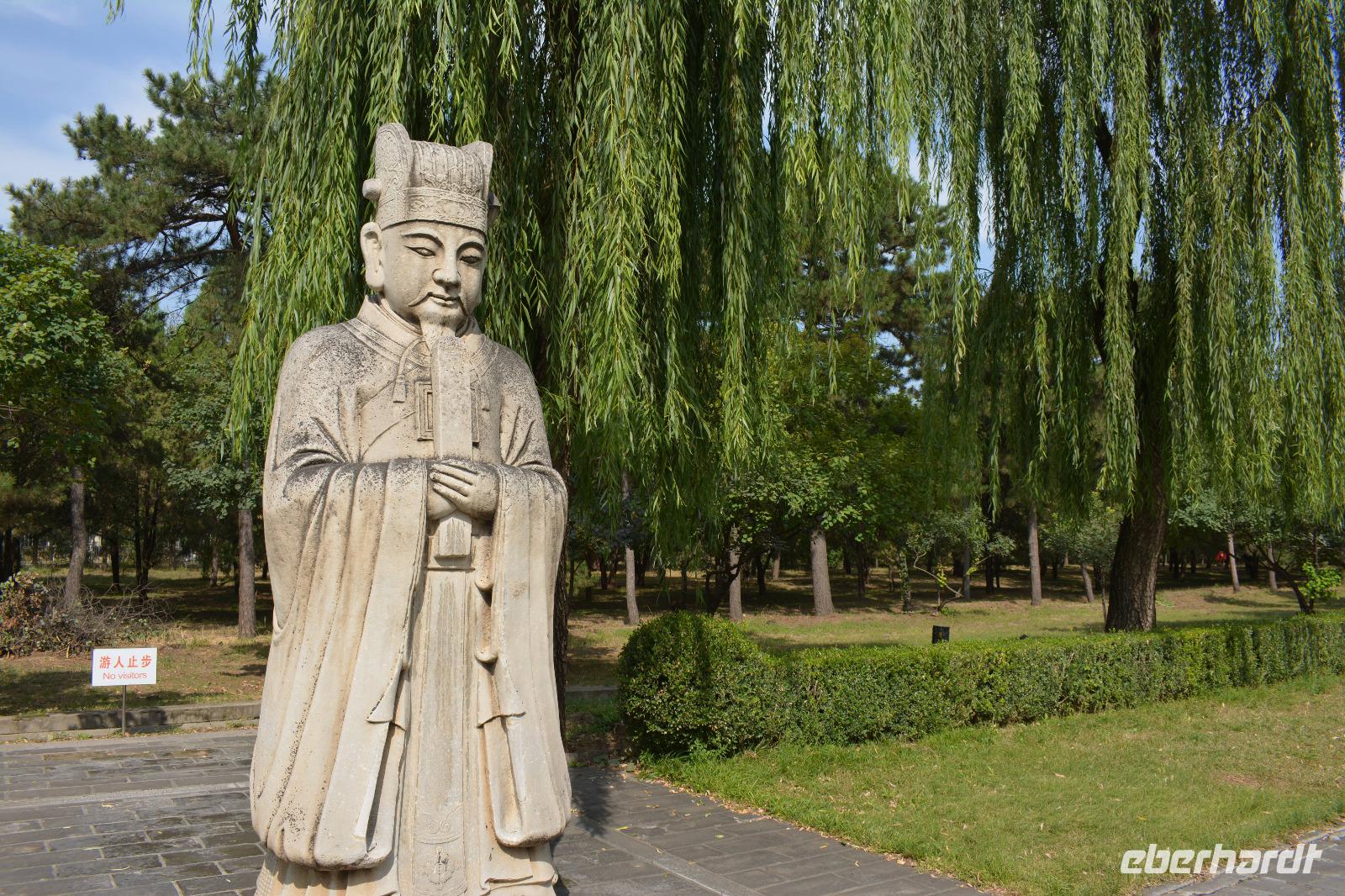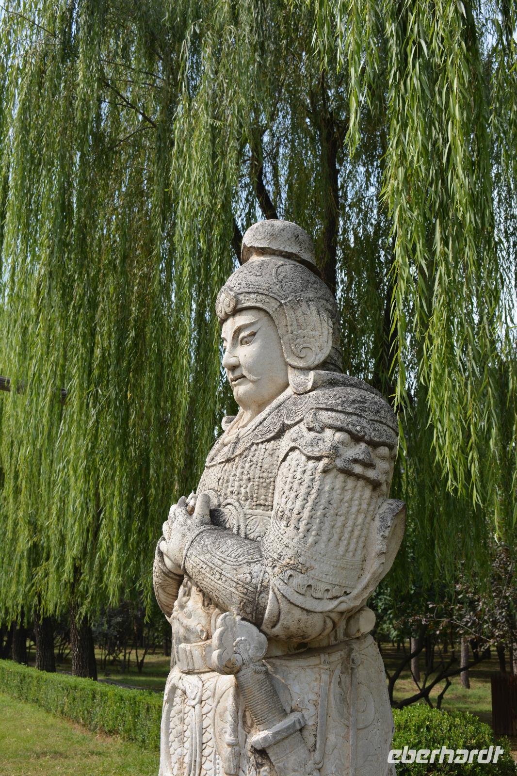 An der Geisterallee angekommen, hat man das Gefühl weit von der Innenstadt entfernt zu sein. Trauerweiden am Wegesrand und nur wenig Verkehr auf den anliegenden Straßen schaffen eine ruhige und harmonische Atmosphäre. Die Allee säumen außerdem Statuen von Kamelen, Löwen und Elefanten und Fabeltieren, wie chinesischen Einhörnern und dem Qilin.