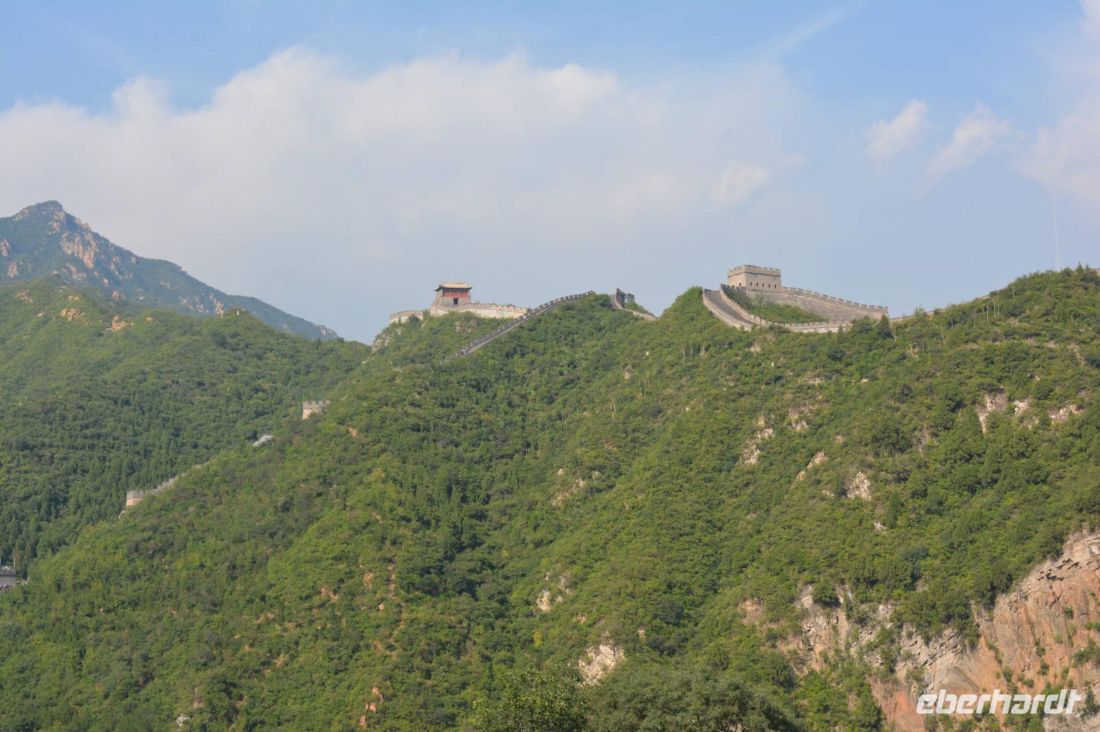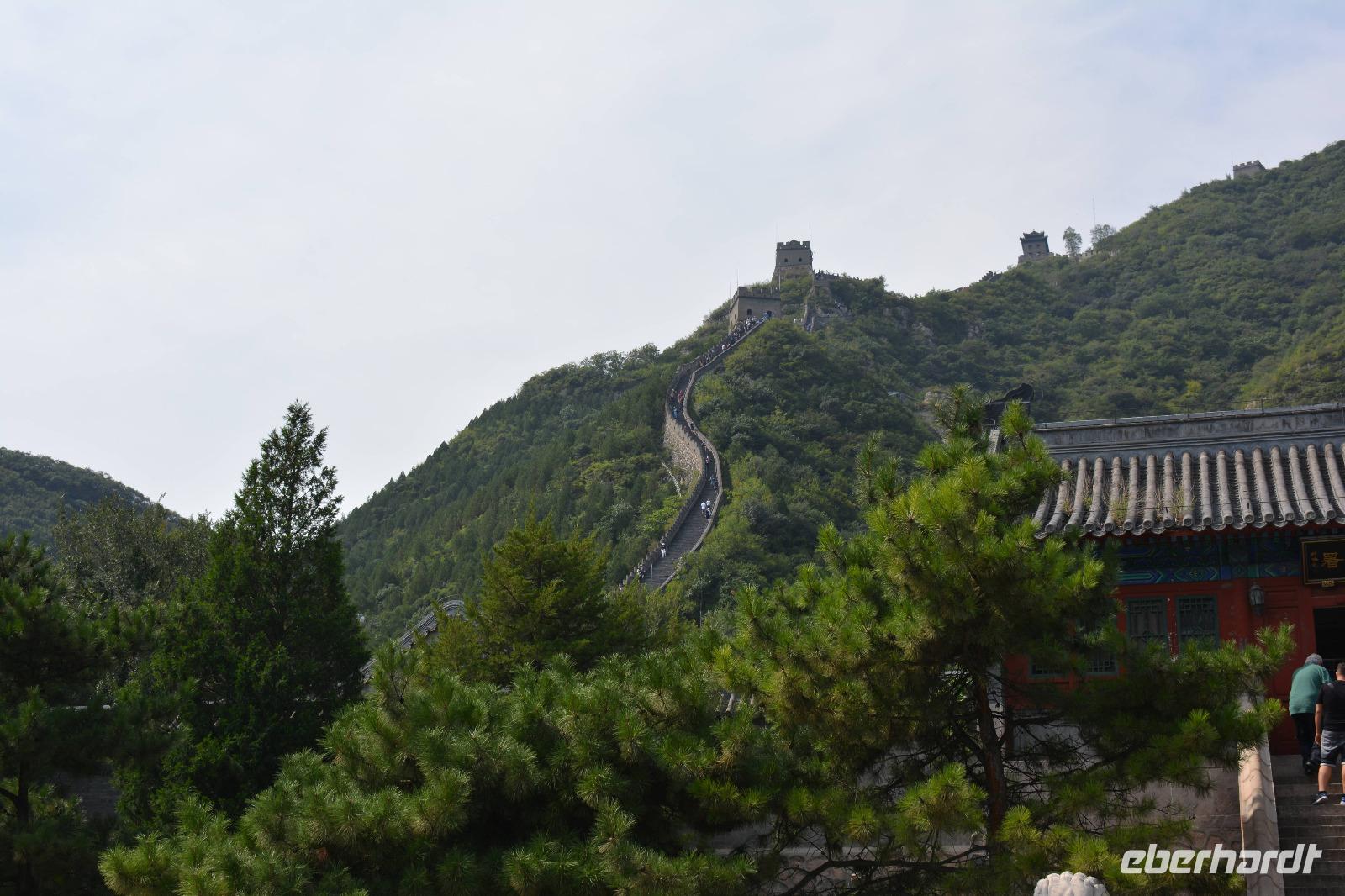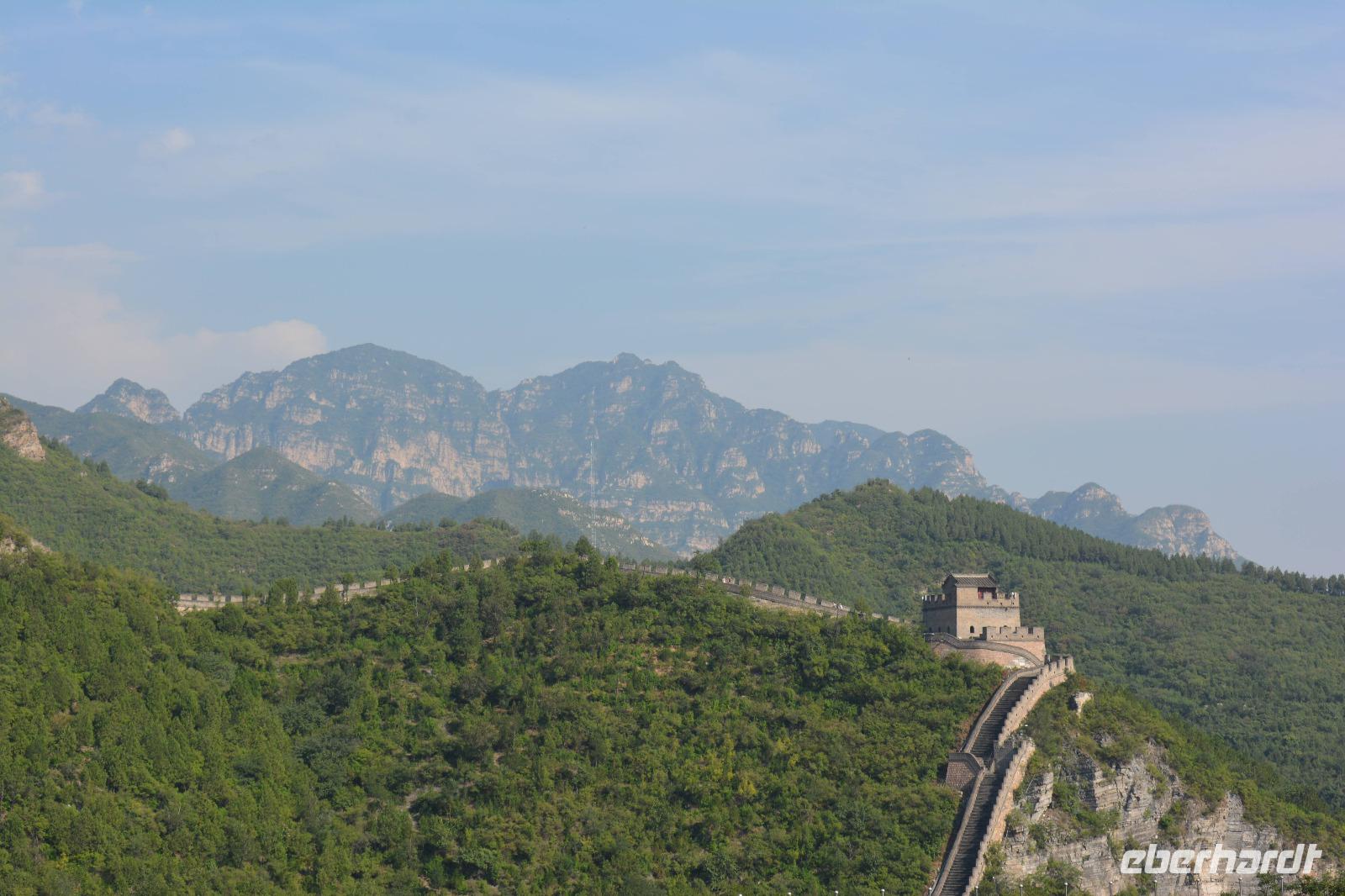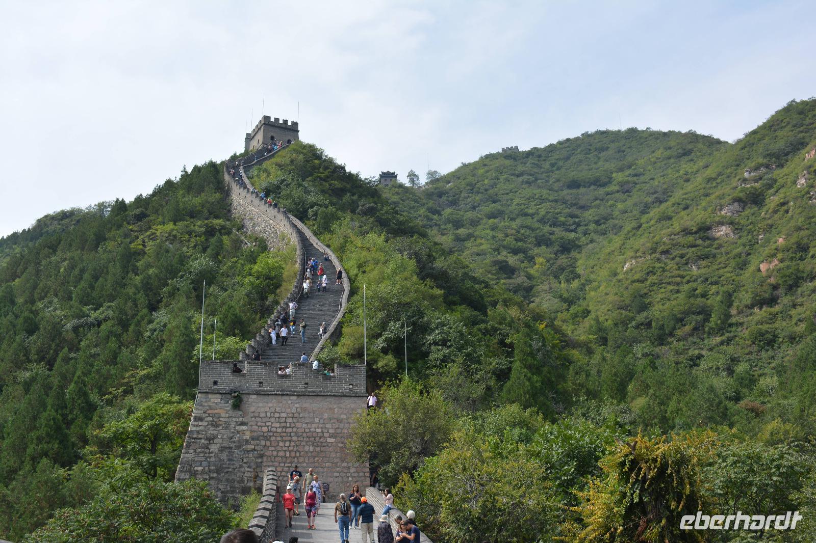 An der Mauer angekommen, machen wir uns bei schwülem Wetter auf den Weg nach oben. Durch die verschieden hohen Stufen ist der Aufstieg etwas beschwerlich, jedoch schaffen es viele bis zum höchsten Wachturm oder sogar den Rundweg an diesem Juyongguen-Pass herum. Das kühle Getränk danach hat sich jeder verdient!