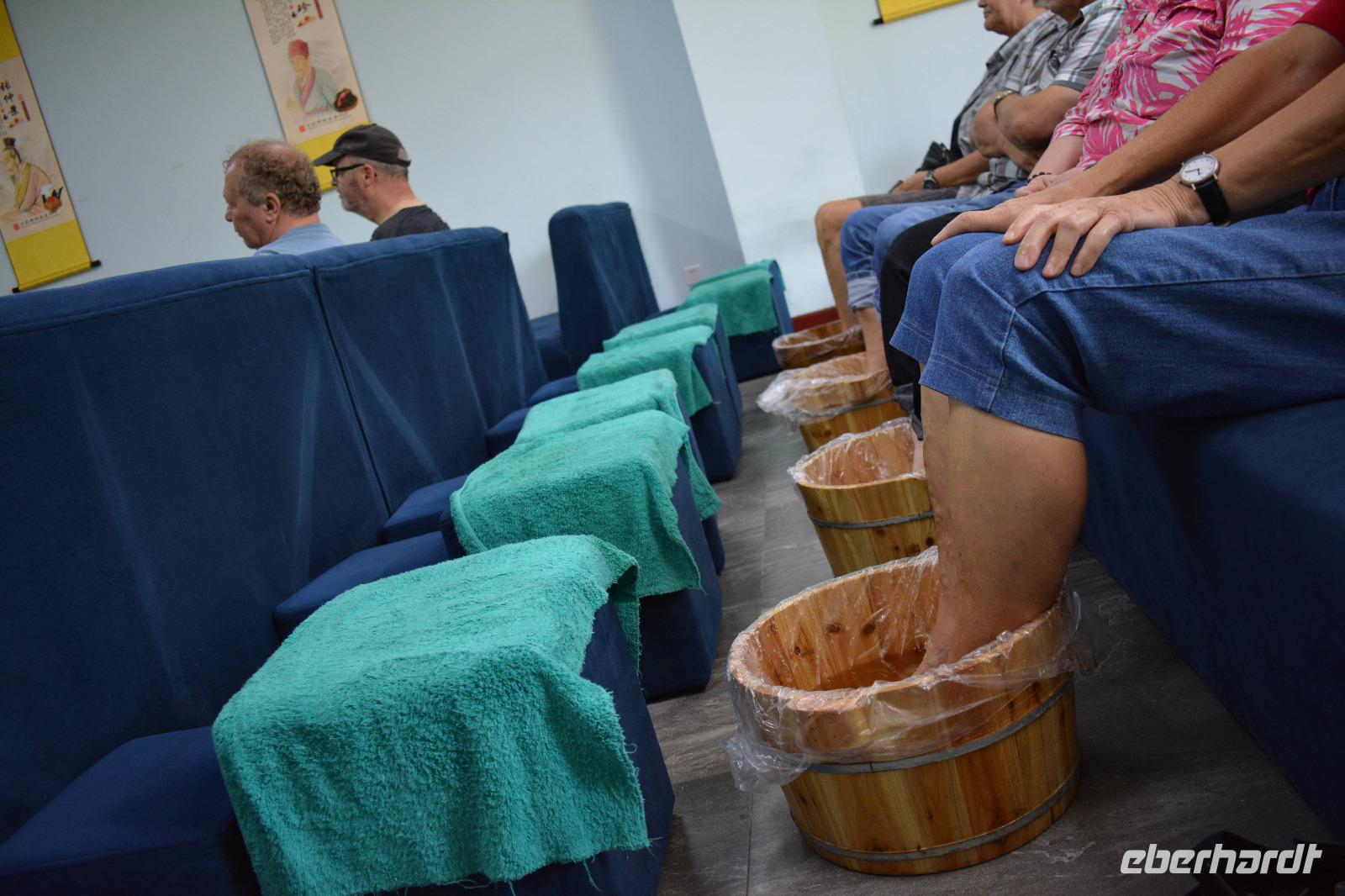 Weiter geht es zum Zentrum für chinesische Medizin. Einen Vortrag vom Professor erklärt uns die Arbeitsweise des Instituts, während sich unsere Füße in einem warmen Wasserbad auf die anstehende Fußmassage vorbereitet. Einige Doktoren analysieren, mit einfach wirkender Pulsmessung und einem kurzen Blick, unsere Krankheiten und empfehlen und spezielle chinesische Medizin. Die gleichzeitige Massage von den fleißigen Studenten ist wohltuend und bereitet uns auf den weiten Weg durch die verbotene Stadt und die nächsten Tage vor.