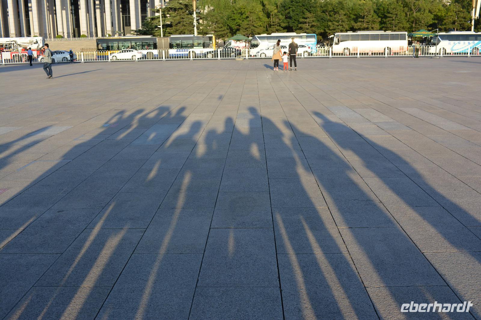 Den Abschluss des Tages, bevor wir zum Abendessen fahren, bildet unser Besuch des Tiananmen-Platz. Auch hier sind die Vorbereitungen zum Festakt in vollem Gange. Auf diesem Platz können sich bis zu 1 Million einfinden. Jeden Morgen bei Sonnenaufgang wird hier auch die chinesische Flagge gehisst, was täglich von vielen tausend landestreuen Chinesen besucht wird. Bevor wir nun morgen Peking verlassen, müssen wir natürlich noch die Spezialität der Stadt versuchen: Die Pekingente. Diese wird uns am Abendessen, gemeinsam mit vielen anderen Leckereien, serviert. Allen schmeckt es gut und nach einem kleinen Absacker geht es zurück ins Hotel.