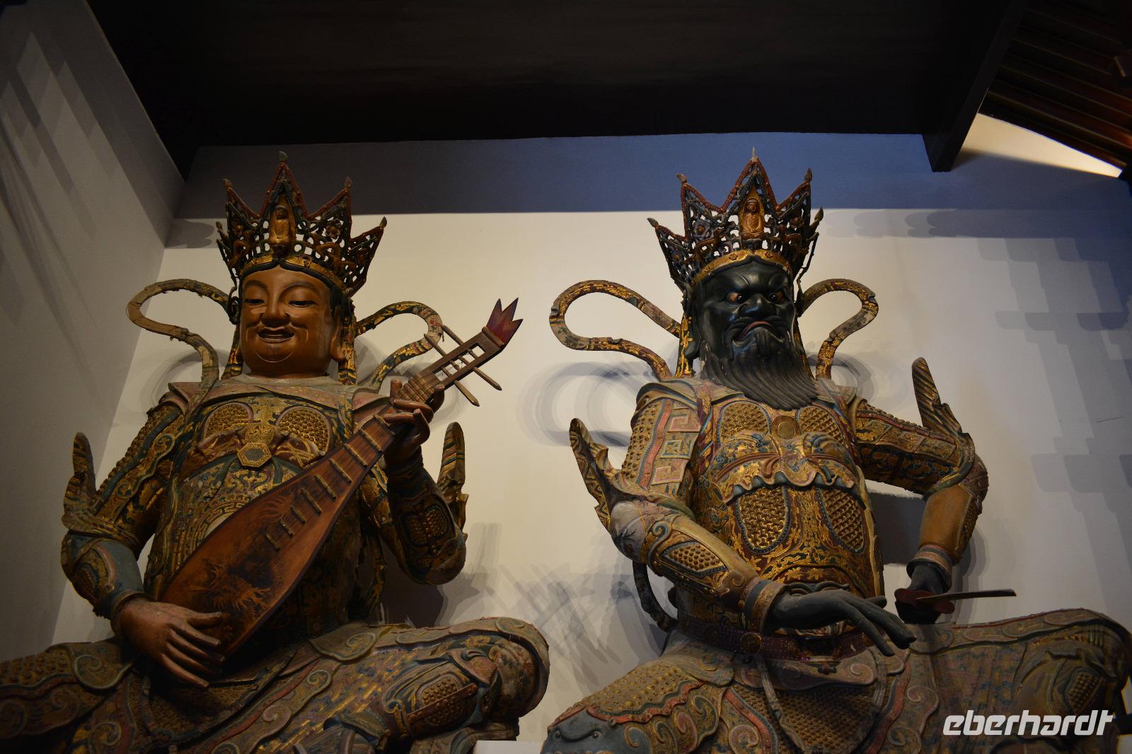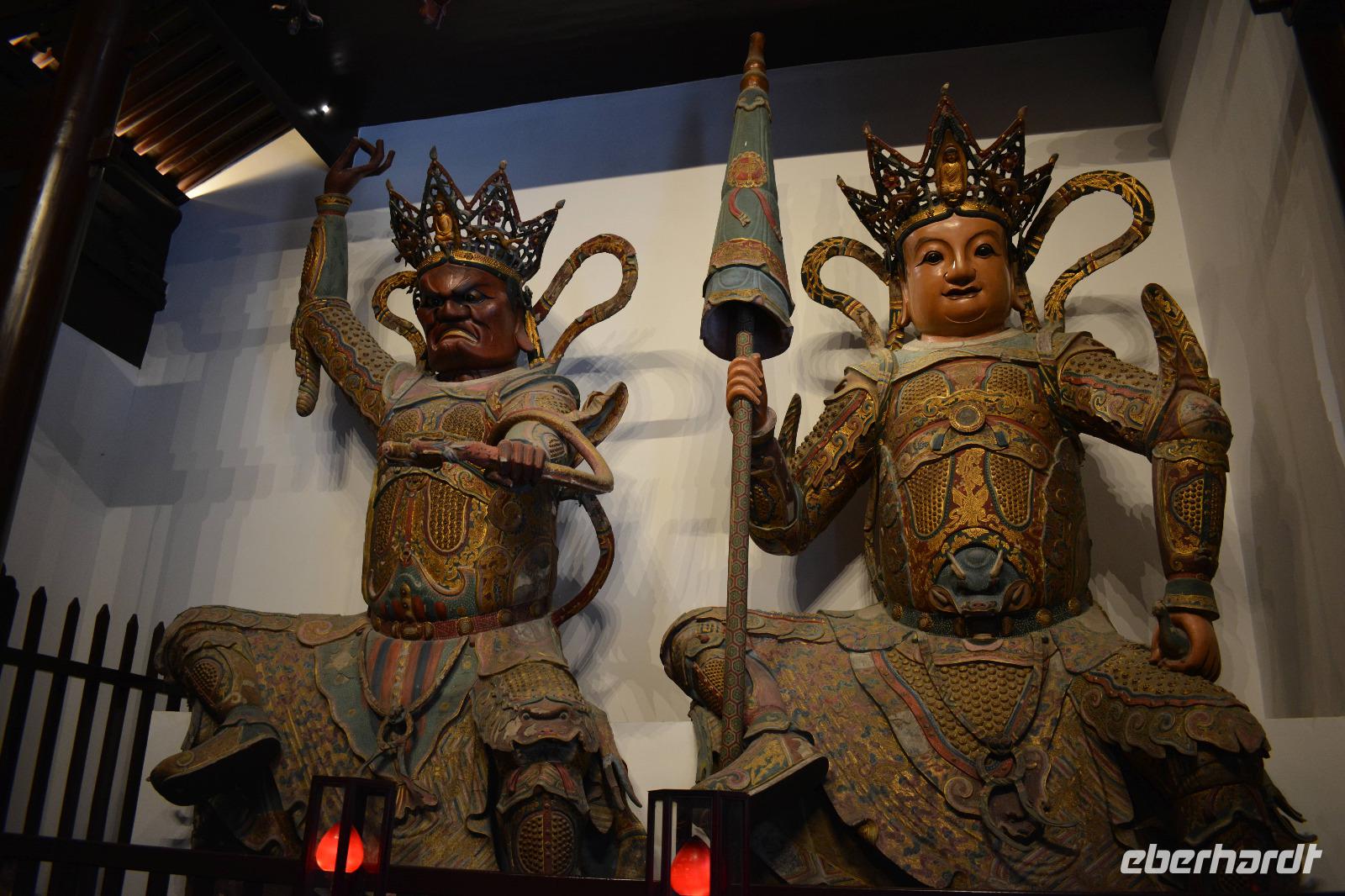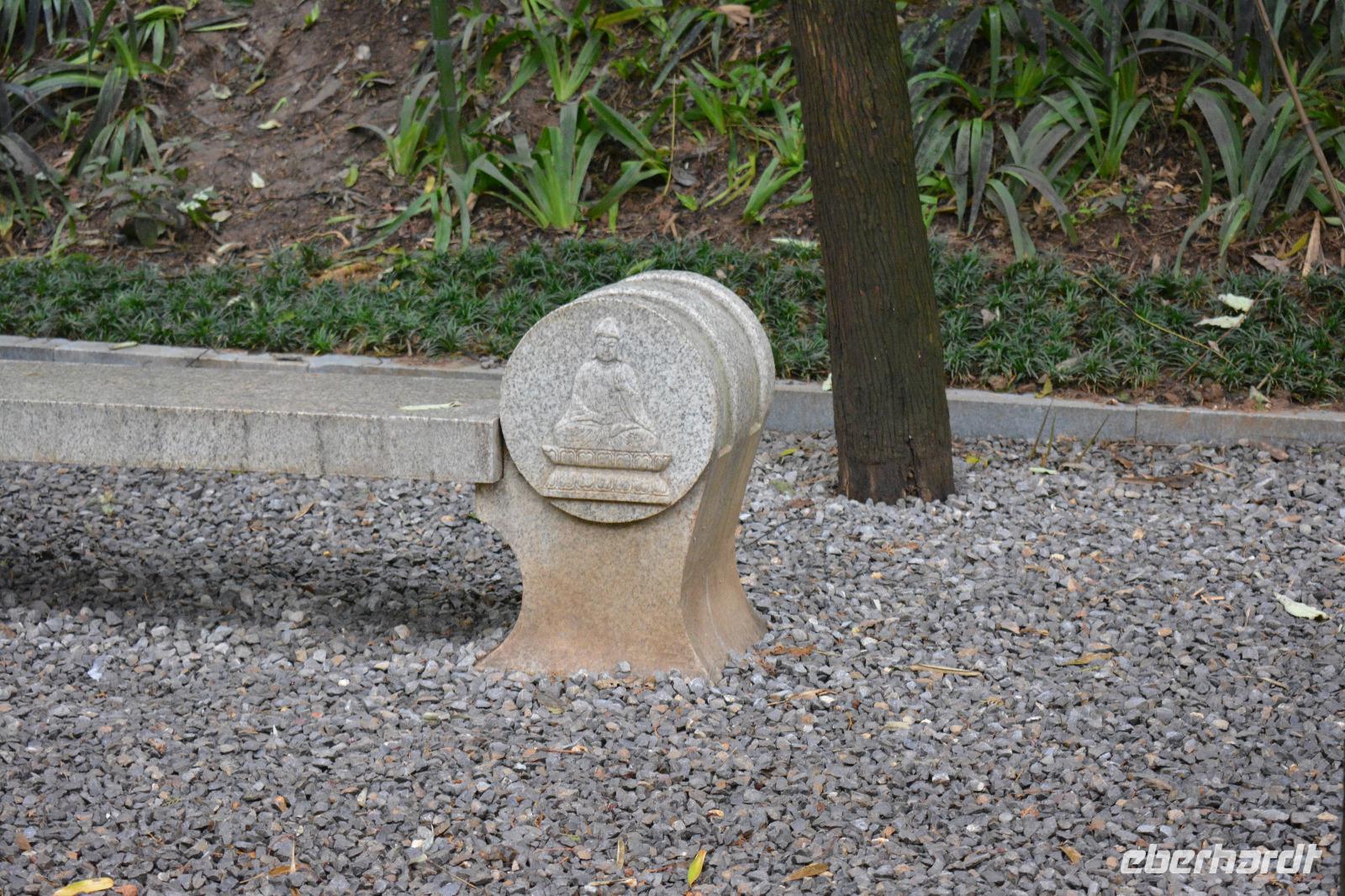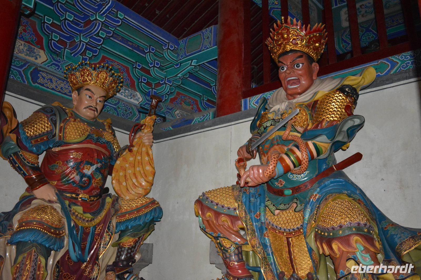 Wir erreichen unseren Bus und machen uns auf den Weg zum Kloster. Leider fängt es an zu regnen, aber das wird uns nicht den Tag verderben. Wir laufen eine lange Allee entlang und entdecken mitten im Park das Shaolinkloster. Hierhin können die Männer nach der Kung Fu Schule ziehen oder sie entscheiden sich für eine Laufbahn bei der Armee, Polizei oder als Bodyguard. Das Gelände des Klosters besteht wieder aus vielen verschiedenen Pagoden, welche hier mit sieben Fabelwesen auf dem Dach geschmückt sind. Sieben ist die heilige Zahl des Buddhismus. In den Pagoden sind meist schöne Buddha-Statuen zu sehen.