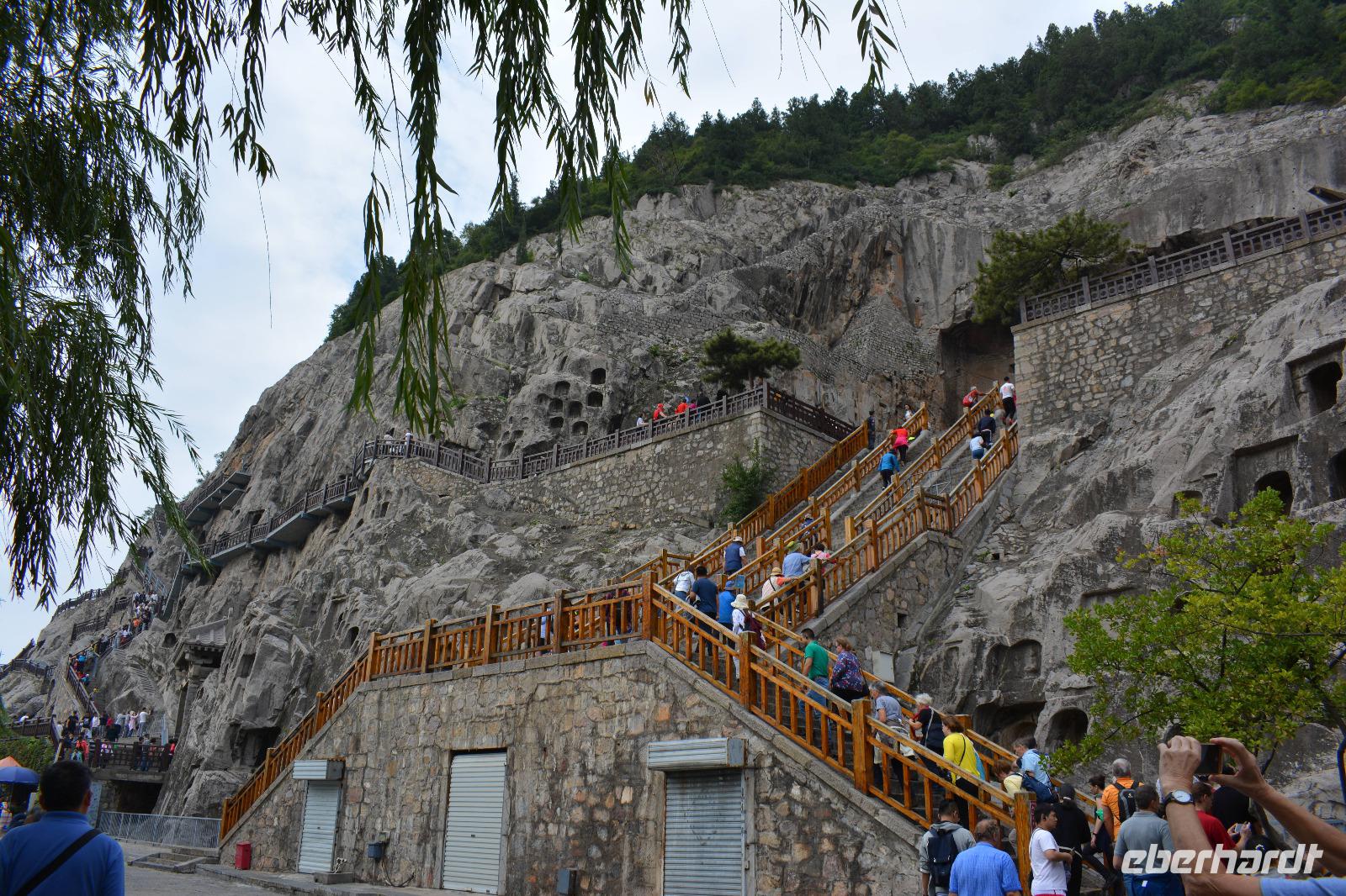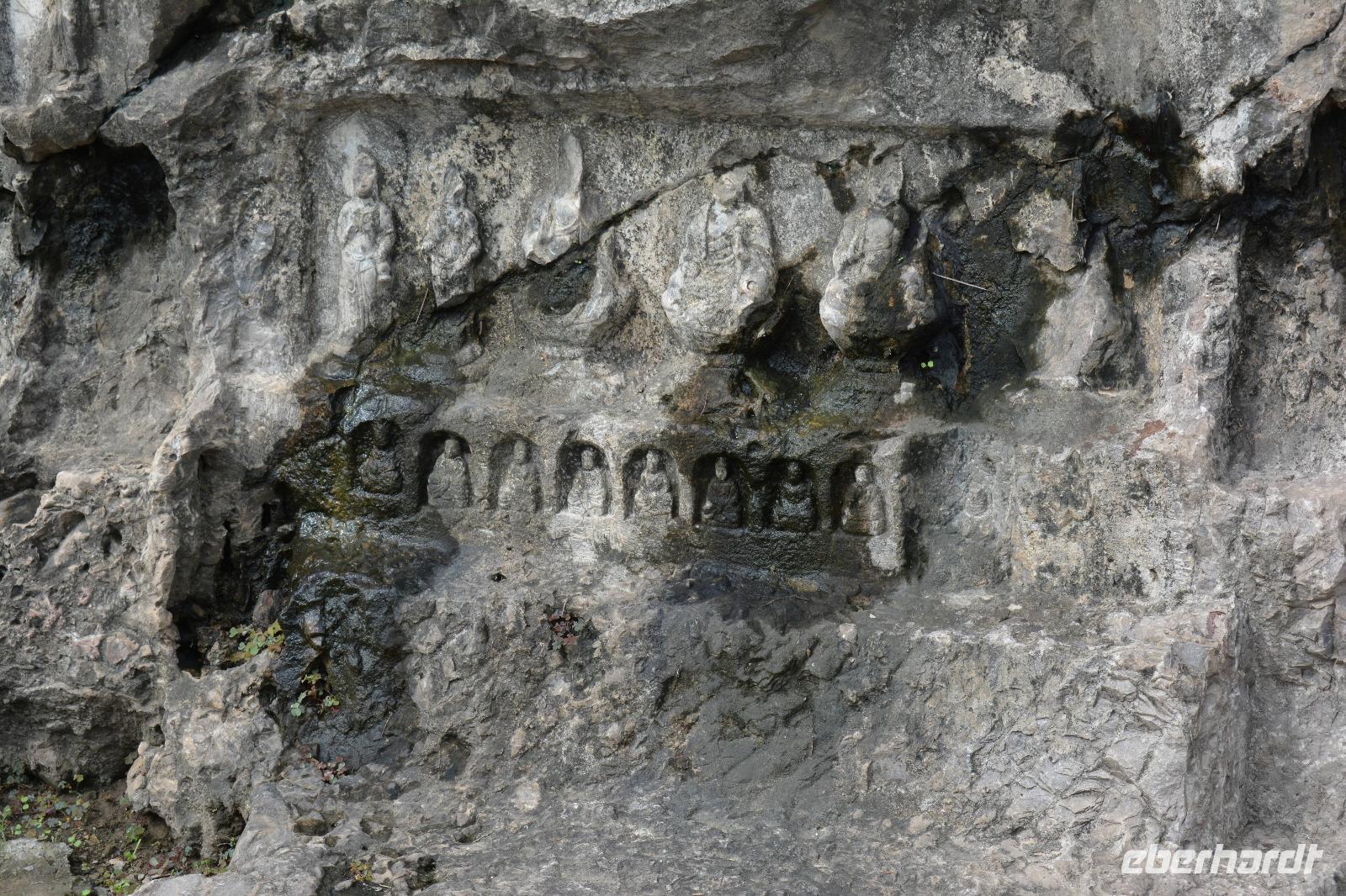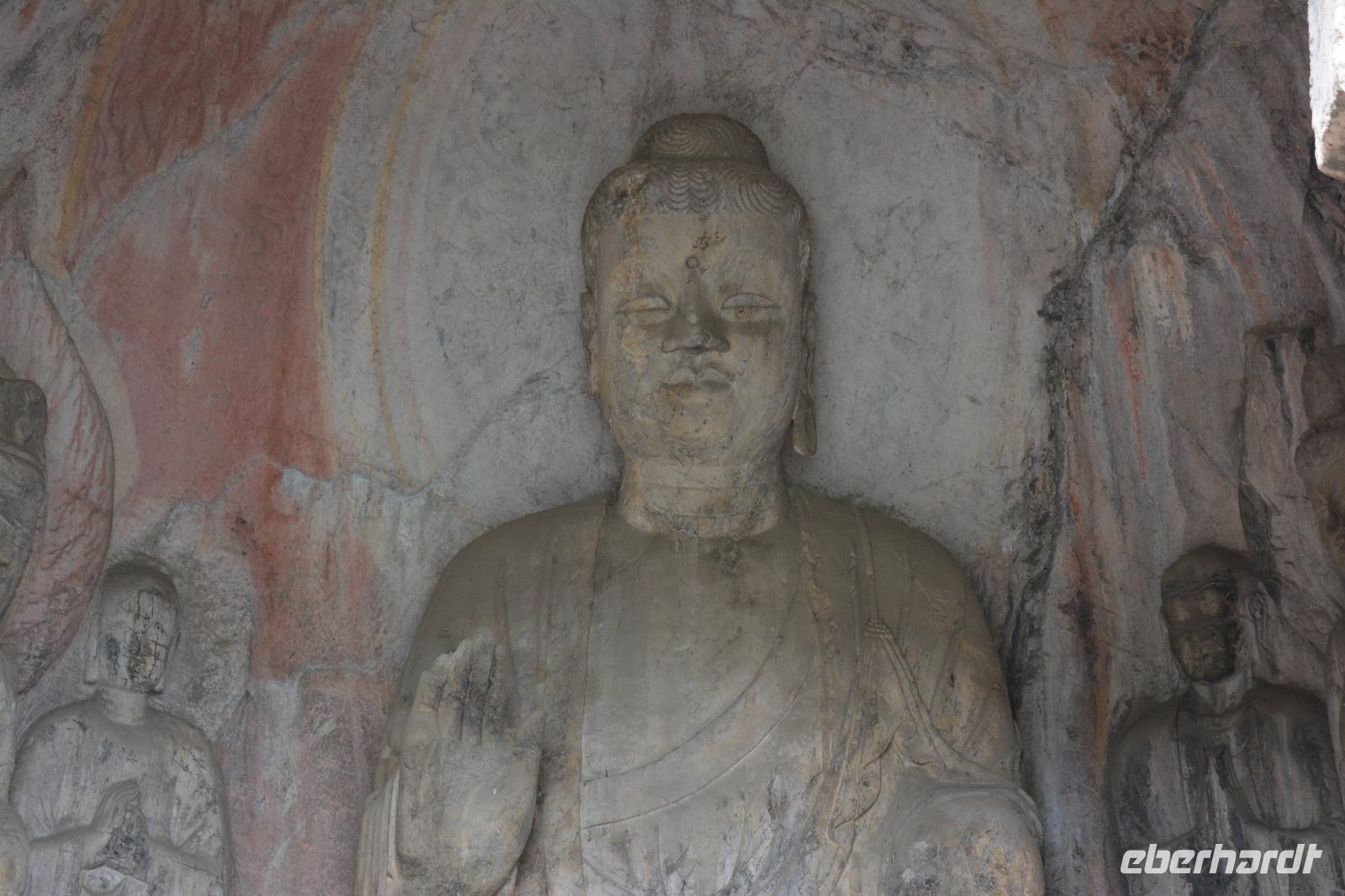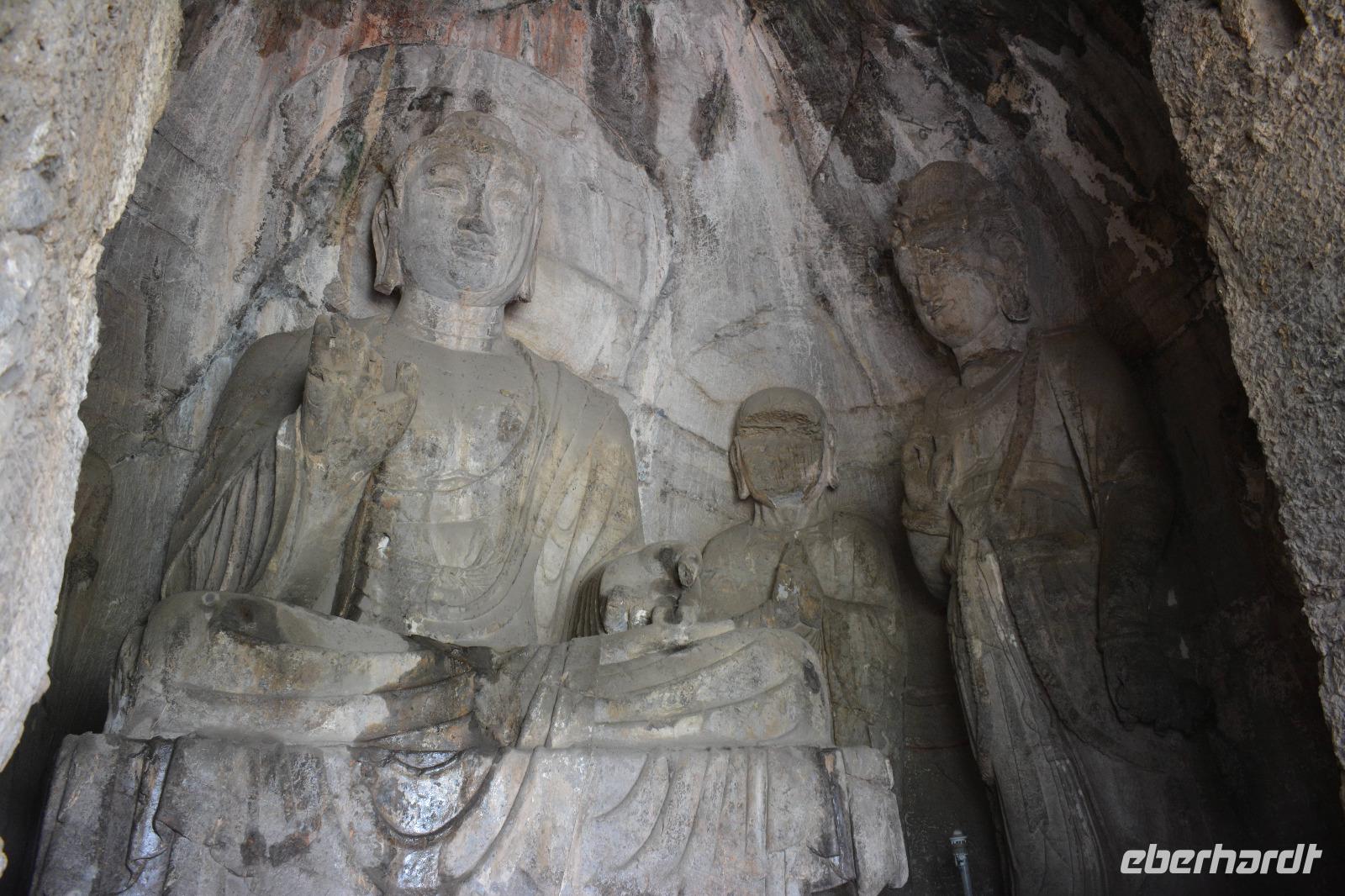 8.30 Uhr starten wir heute zu den Drachentor-Grotten, diese liegen in der Nähe der ehemaligen Hauptstadt Luoyang und wir können über 100.00 Buddha-Statuen betrachten. Leider wurden viele Statuen im 2. Weltkrieg beschädigt, indem die Japaner die Hände oder Köpfe der Buddhas abschlugen und mitnahmen. Die größte Statue ist 17,14 Meter groß. Allein die Ohren haben eine Länge von 1,90 Meter. In China sagt man: Lange Ohren stehen für ein langes Leben.