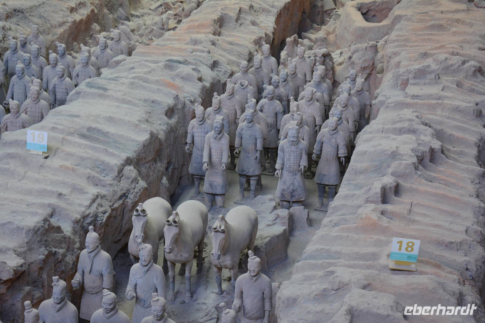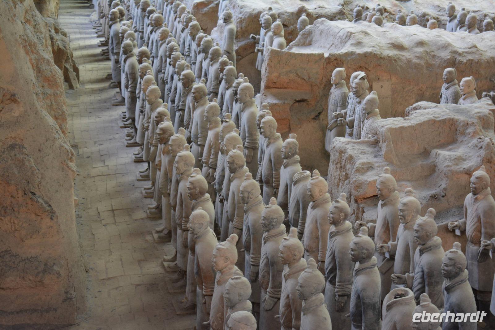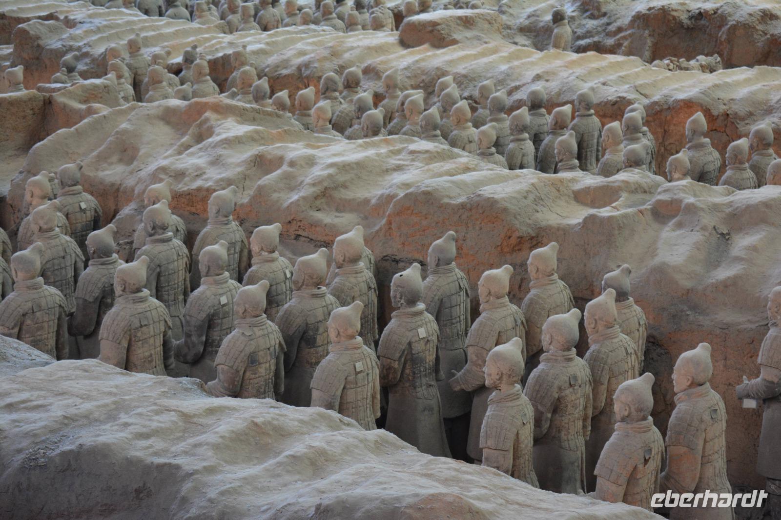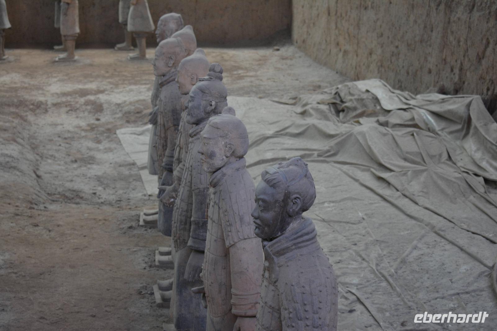 Nun wartet die Terrakotta-Armee auf uns. Am 29. März 1974 wurden die ersten Figuren bei Brunnenbohrungen entdeckt. Es ist eine Grabbeigabe vom Kaiser, welcher bereits 210 v. Chr. verstorben war. Nach und nach werden die ca. 8.000 Figuren freigelegt und aufwendig repariert.