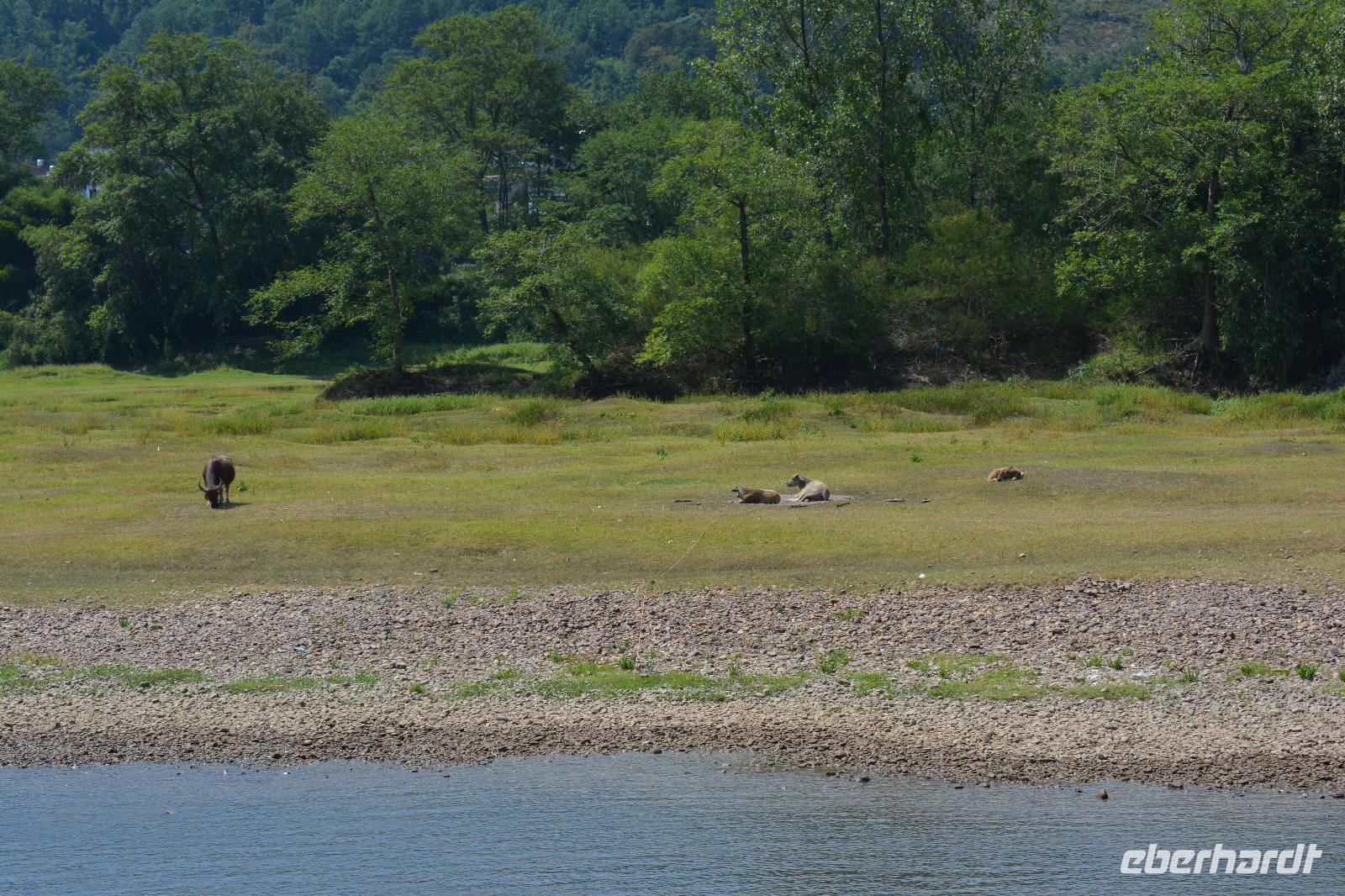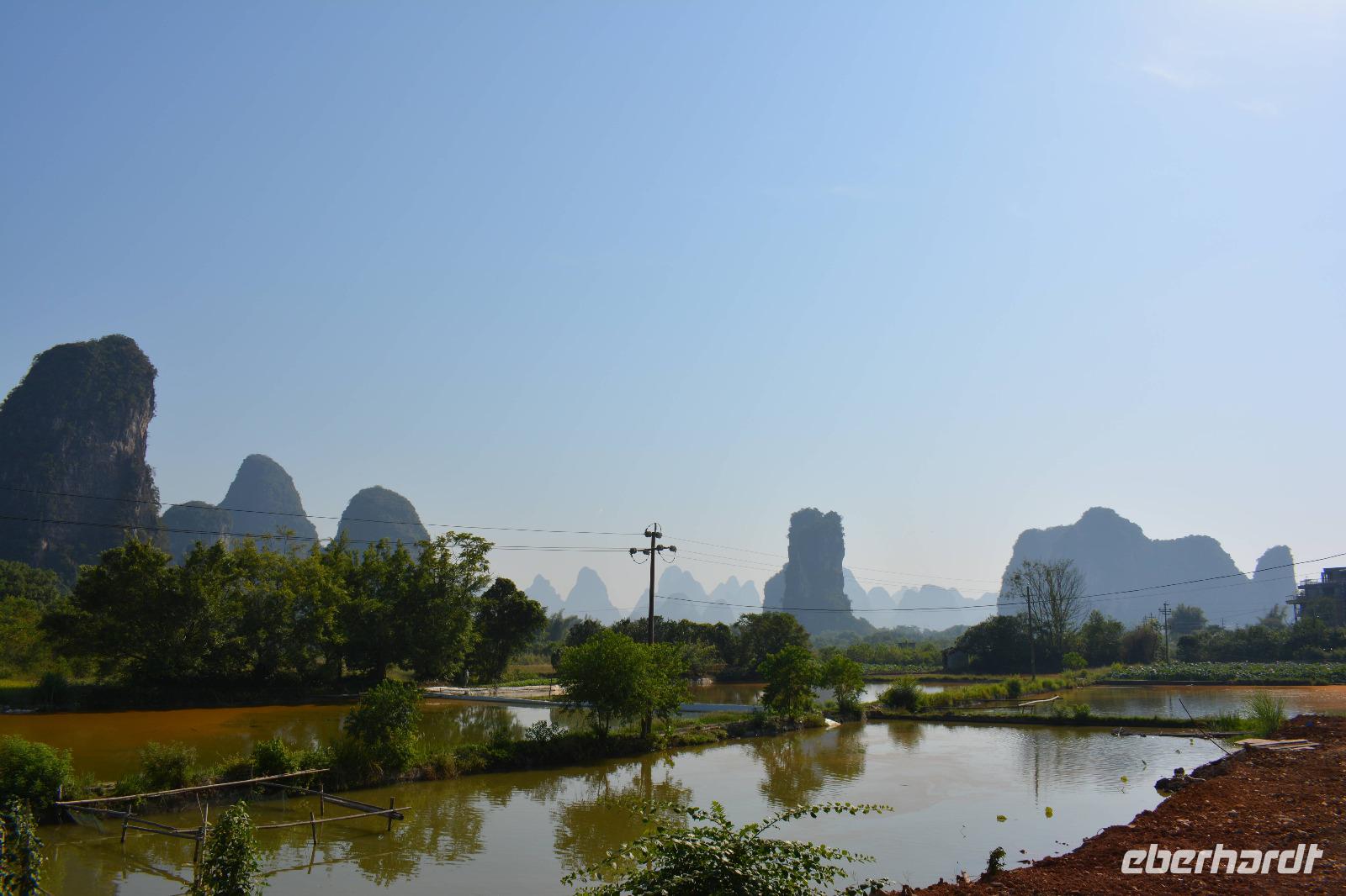 Auch an diesem Morgen genießen wir den wundervollen Ausblick aus unserer Unterkunft, am Seitenarm des Li-Fluss. Im vierten Stockwerk gibt es ein liebevoll angerichtetes Frühstück auf der Terrasse. Ein Glas vom frisch gebrühten Tee gibt uns Kraft für den Tag, aber auch diesen wollen wir ruhig angehen lassen.