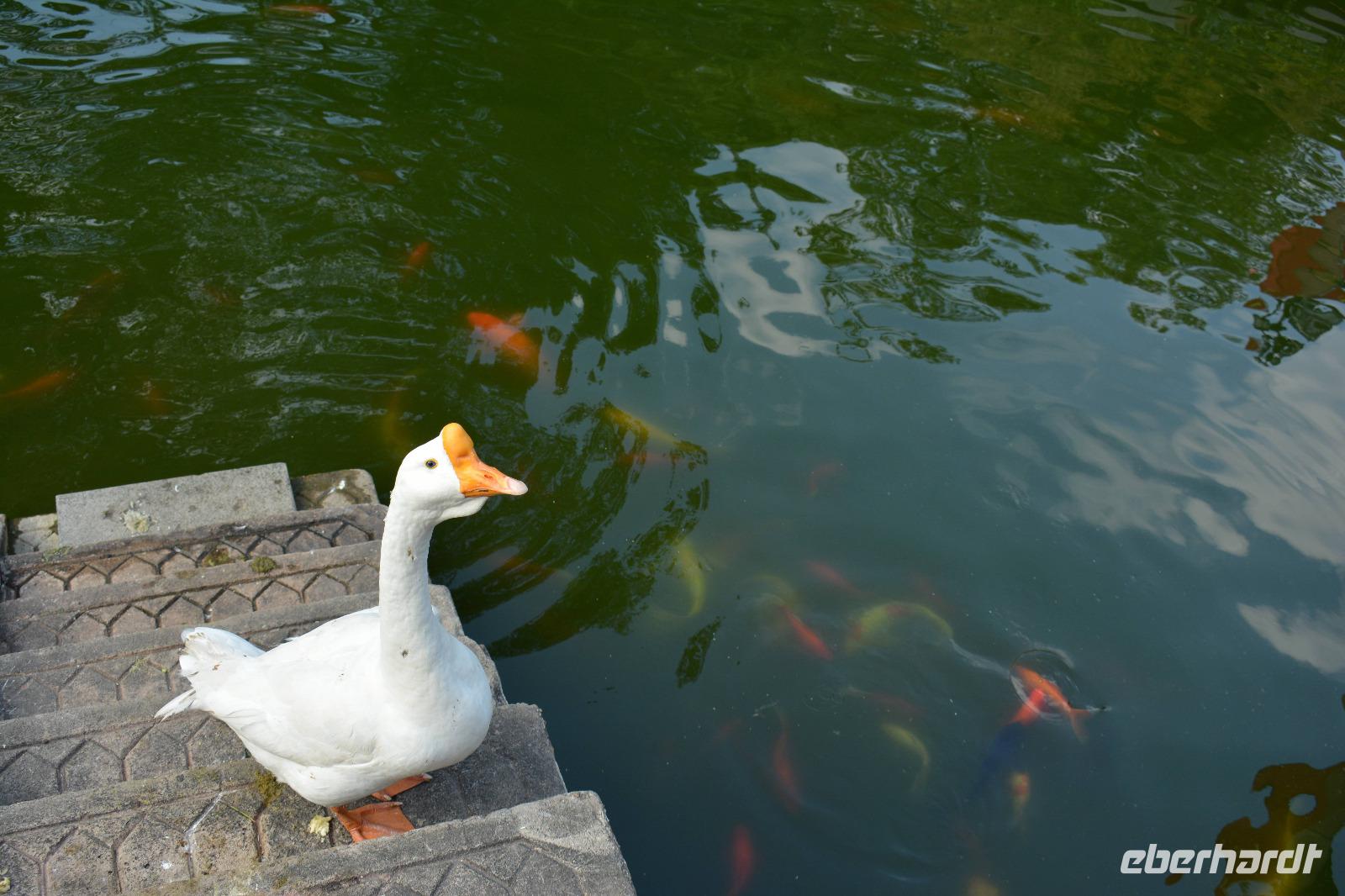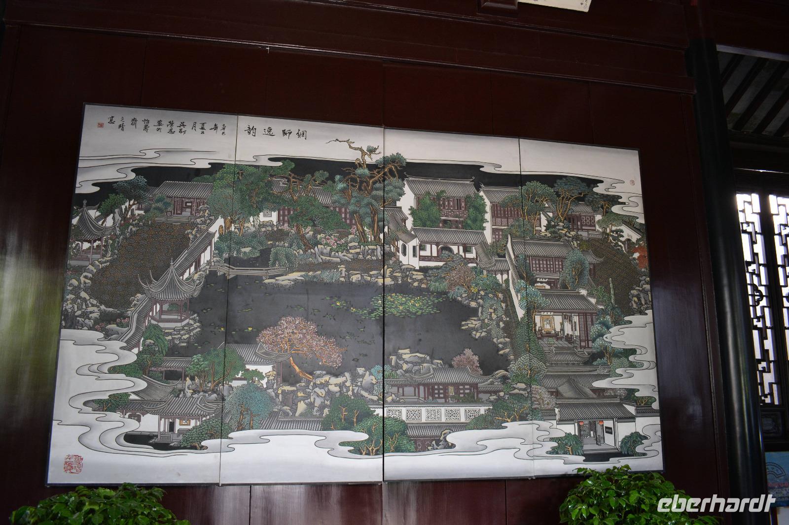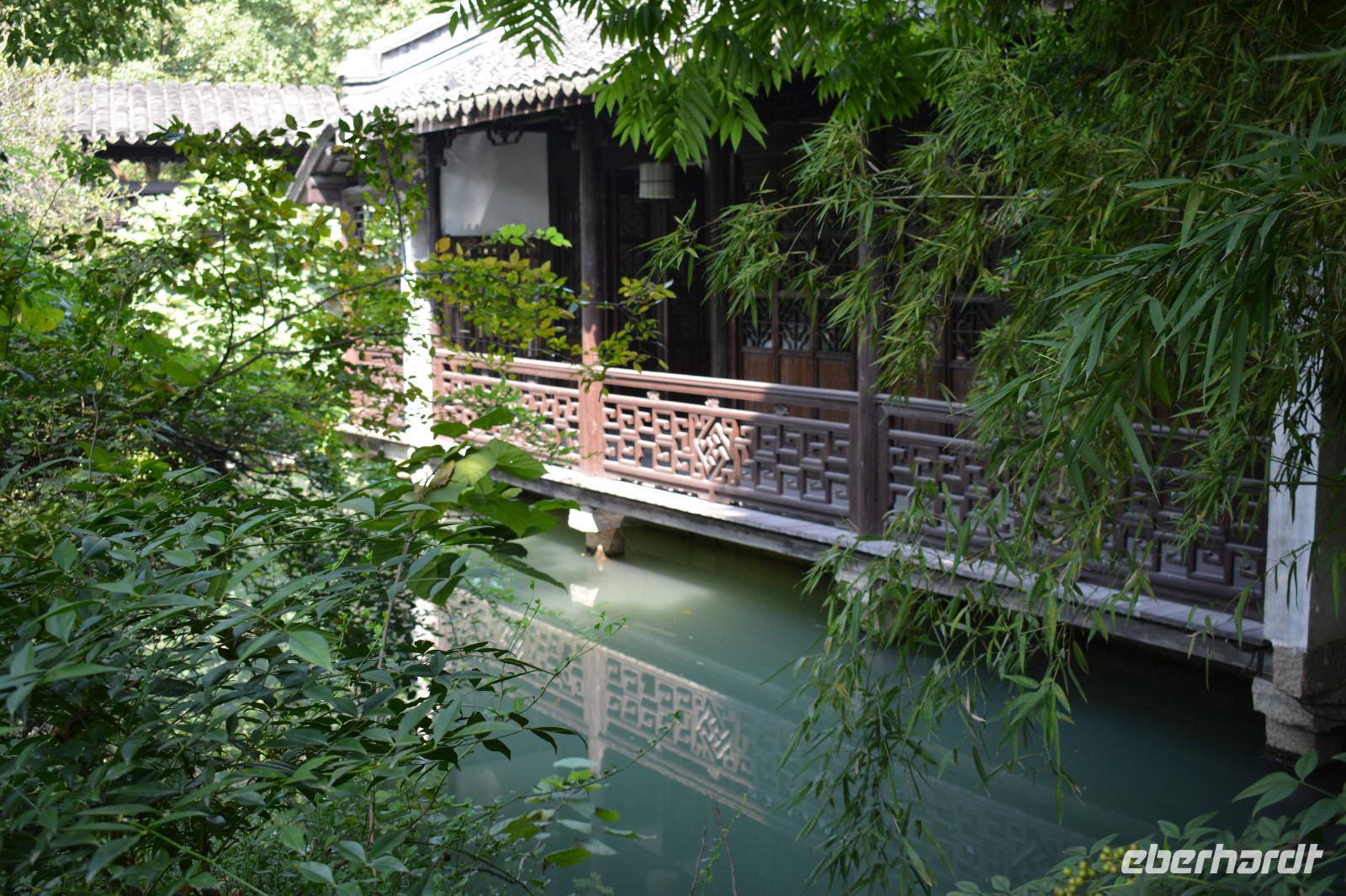 Unser Tag beginnt heute wieder mit viel Natur. Josef bringt uns zum Garten des Meisters der Fischnetze. Einer der fünf schönsten Parkanlagen von China. Auch wenn dieser nur 0,87 Hektar klein ist. Dieser Garten diente, mit seinen fünf Elementen, dem Garten in der verbotenen Stadt als Vorbild. Die fünf Elemente sind: Wasser, natürliche Steine, ein Pavillon, ein Wandelgang und Lebendigkeit, also Fische.