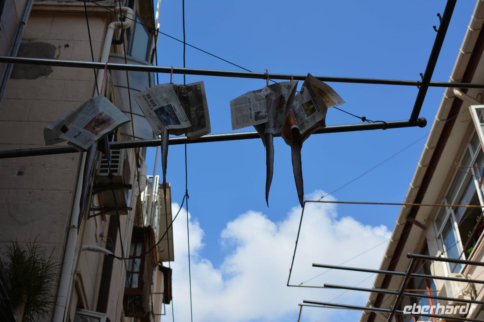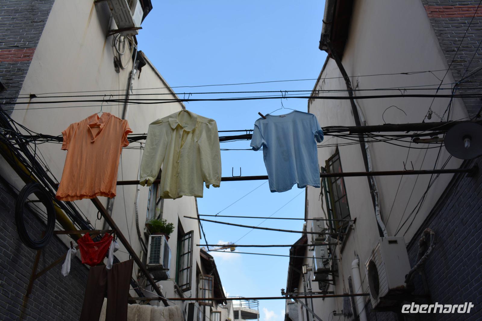 Nach dem Frühstück starten wir mit einem kleinen Spaziergang in der direkten Umgebung unseres Hotel. Josef zeigt uns das alte japanische Viertel, welches Gegensätzlicher nicht sein könnte. Erst gehen wir durch kleine Gassen, wo sich auch das Leben abzuspielen scheint. Die Wäsche der Bewohner ist direkt über unseren Köpfen aufgehängt, ein Blick in die schmalen Häuser lässt uns die Enge darin erahnen. Als wir aus der Gasse durch das kleine Tor hinaustreten, begrüßen uns freundliche Fassaden und breite Straßen. Wir erfahren, dass in einigen Jahren auch nur noch diese Fassaden übrigbleiben werden und das Viertel durch moderne Wohnungen ersetzt werden.