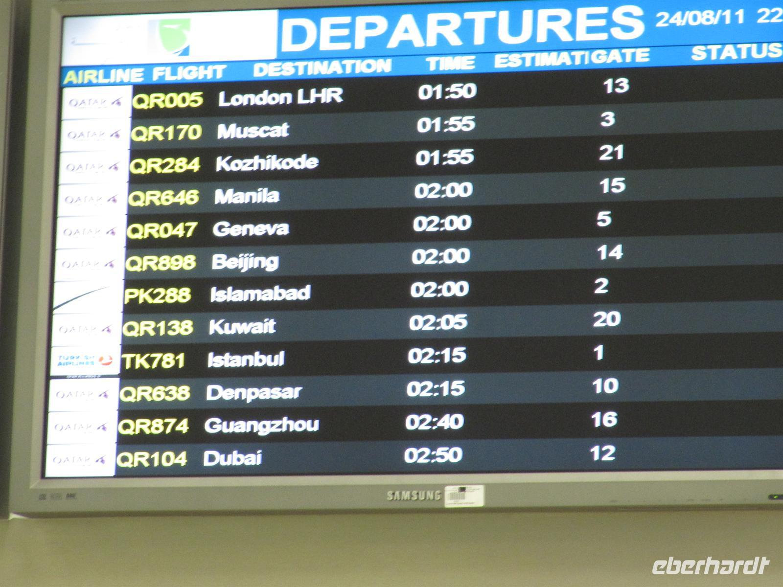 Mittwoch, 24.August 2011 – Wir fliegen nach Doha