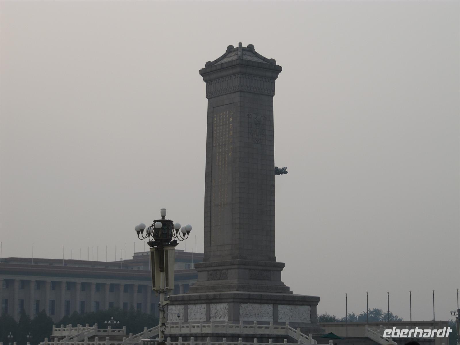 Vom Flughafen aus fuhren wir etwa 45 Minuten bis in das Zentrum von Peking zum Tiananmen Platz. Viele von uns bringen diesen Platz vor allem in Verbindung mit den gewaltsam niedergeschlagenen Protesten von 1989. Für die Chinesen ist dieser Platz allerdings viel mehr als ein Synonym für diese Geschehnisse. Er ist der "Platz des himmlischen Friedens". So sehen wir das große Tor des Himmlischen Friedens, das dem Tiananmen Platz seinen Namen gibt und das Denkmal für die Helden des Volkes im Kampf um die Befreiung. Der Tiananmen Platz wird außerdem umgeben von der Großen Halle des Volkes und dem neuen Nationaltheater. Beeindruckend für uns war allerdings nicht nur der Platz selbst, sondern eigentlich waren wir hier die Attraktion schlechthin.