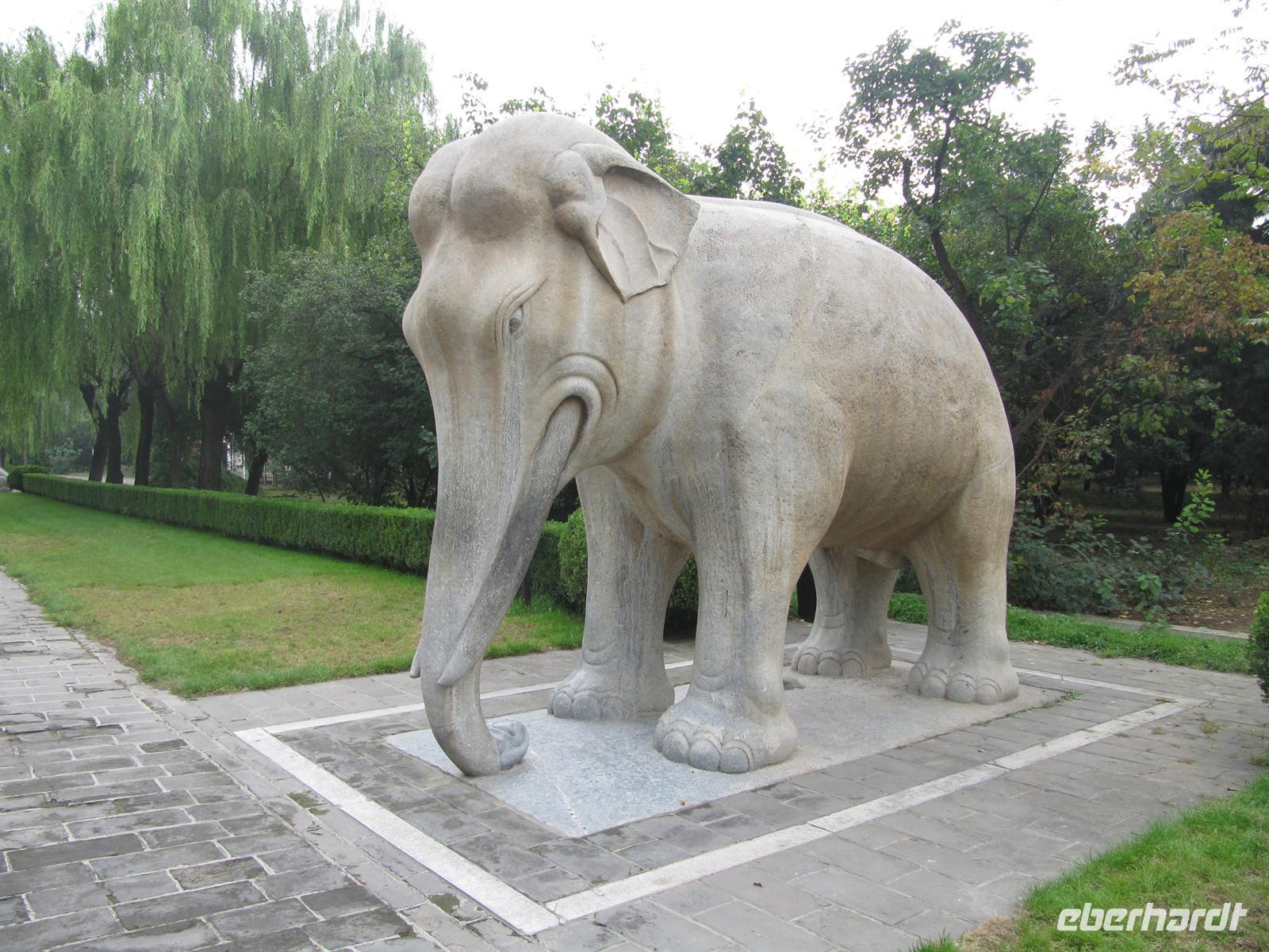 Frohen Mutes freuten wir uns trotzdem auf den heutigen Tag und waren froh, doch noch eine Nacht in diesem wundervollen Hotel verbringen zu dürfen. Entspannung machte sich breit. Der Regen ließ nach und so machten wir uns auf und fuhren zusammen mit unserem Reiseleiter Meng zunächst zur Dieser mit Menschen- und Tierstatuen gesäumte Weg führt zur letzten Ruhestätte der Kaiser. Diese knapp einen Kilometer lange Etappe säumen achtzehn Steinfigurenpaare: sechs Tiere und zwölf Beamte, zusammen 36 Figuren, die dem zu Grab Getragenen die letzte Ehre erwiesen.