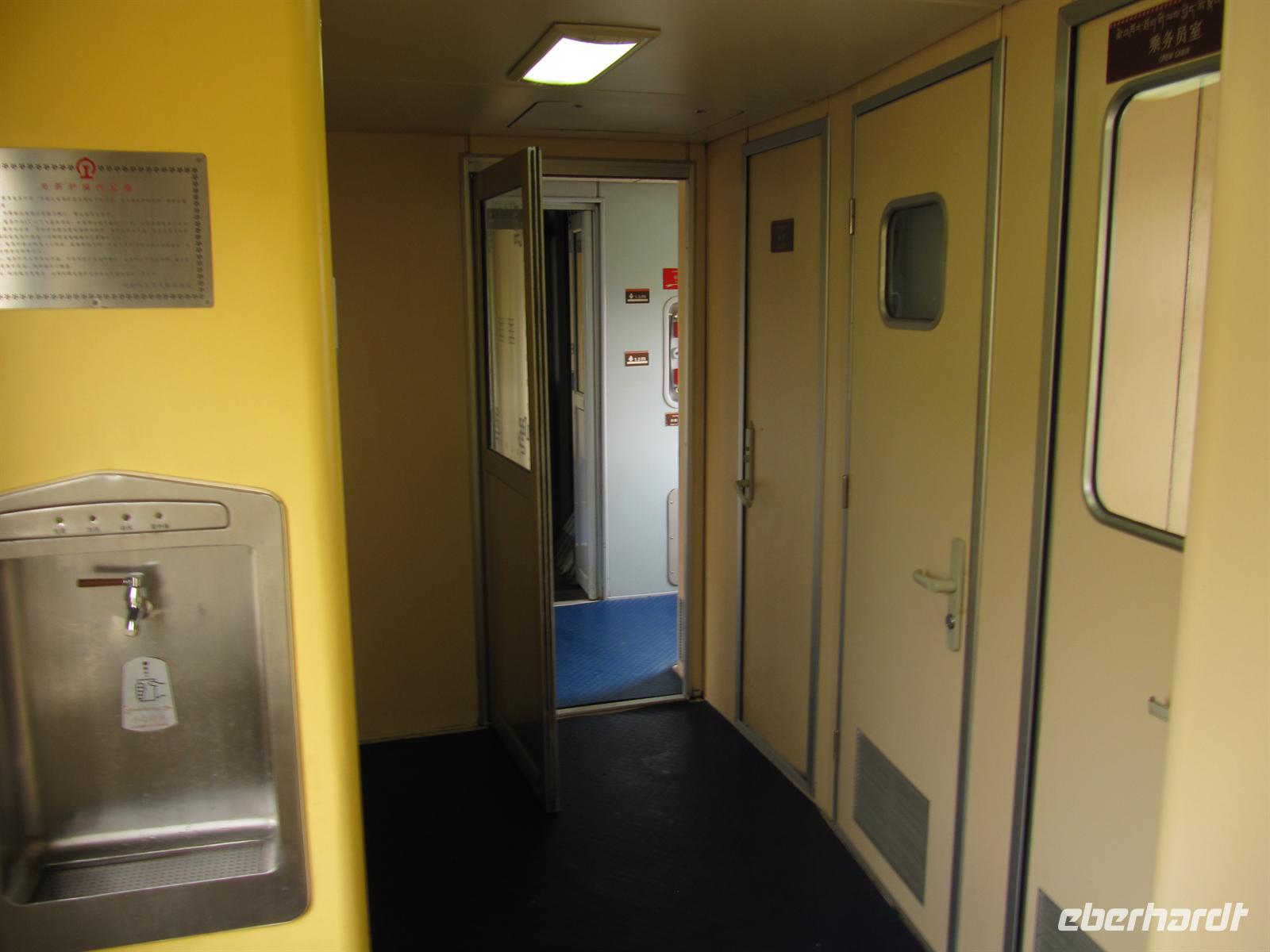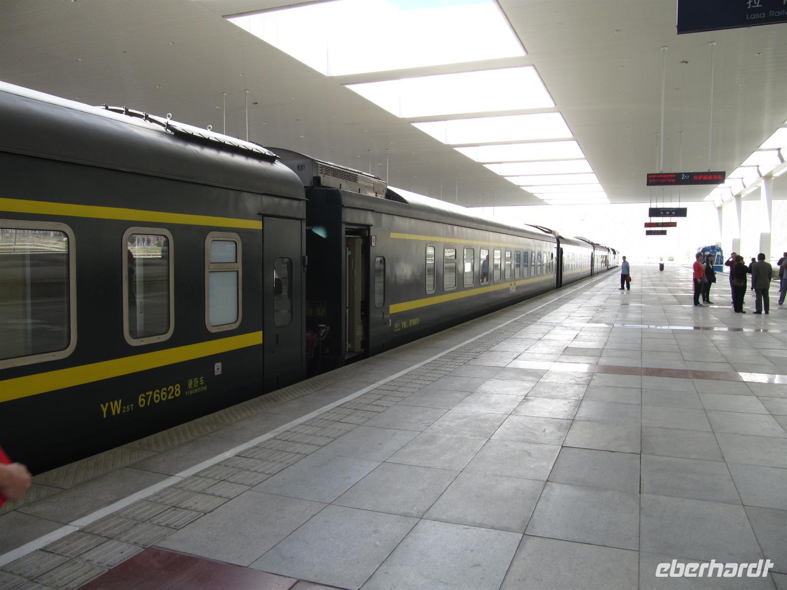 Am Bahnhof angekommen kauften einige von uns noch die ein oder andere Nudelsuppe und Dinge, die man sonst so zum Leben braucht. Am Zugabteil angekommen, ereilte uns noch einmal ein Schreck. Hier teilte uns die Schaffnerin mit, dass wir keine Einreisegenehmigung besitzen. Leider verstand Sie uns in unserem guten Englisch nicht und so waren wir schon der Meinung, nach Lhasa fliegen zu müssen Glücklicherweise half uns eine Übersetzerin und so konnten mir nach vielen Minuten des Bangens und mit Angstschweiß auf der Stirn, doch in unser Abteil einsteigen.