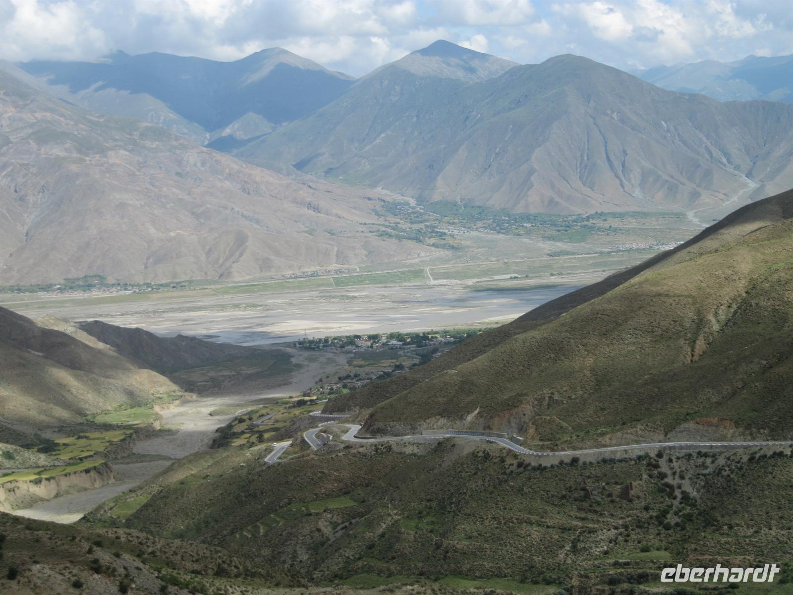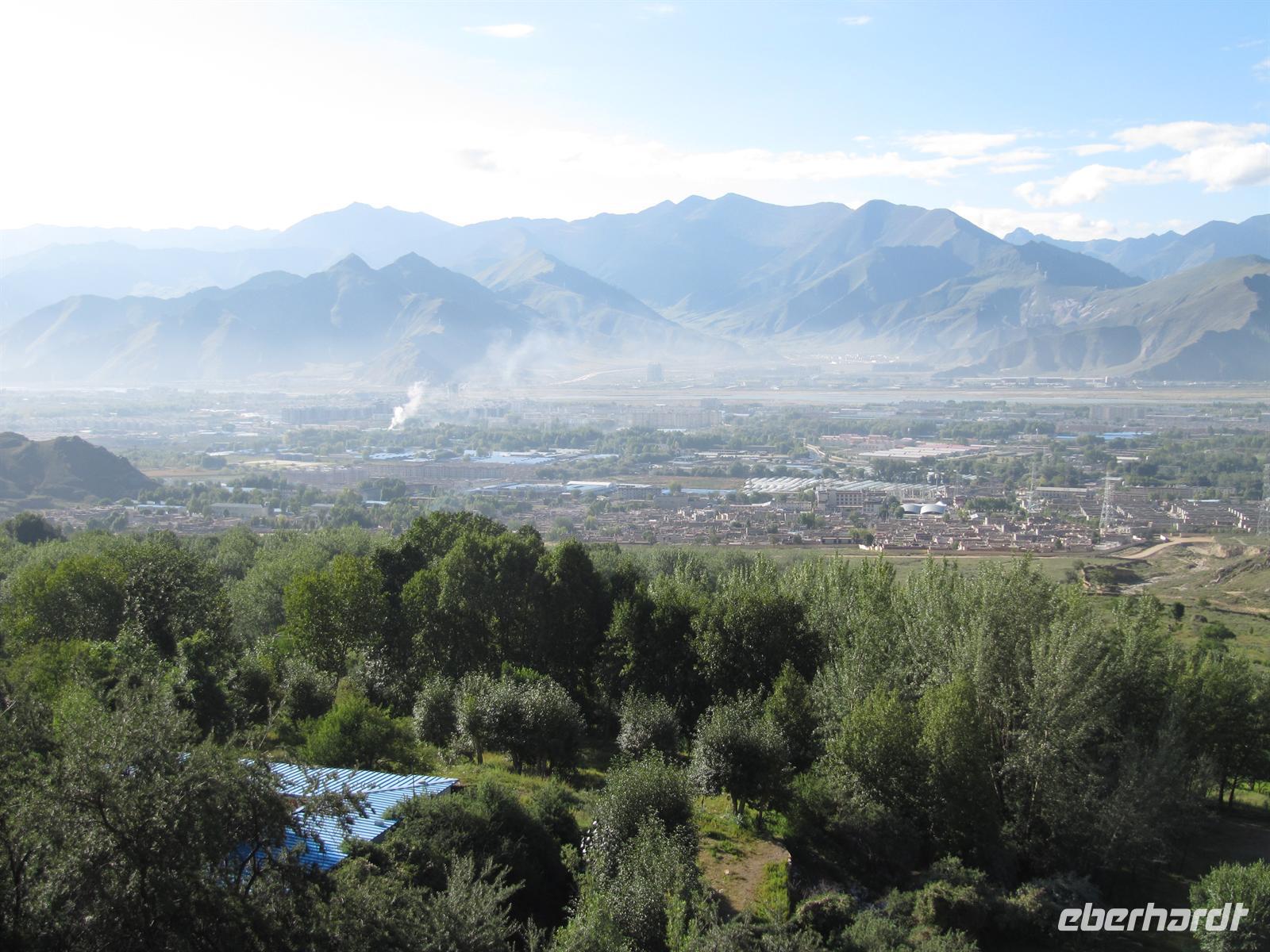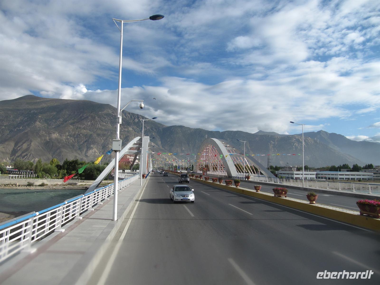 Nun fahren wir von den Höhenmetern her wieder nach unten in die tibetische Stadt .