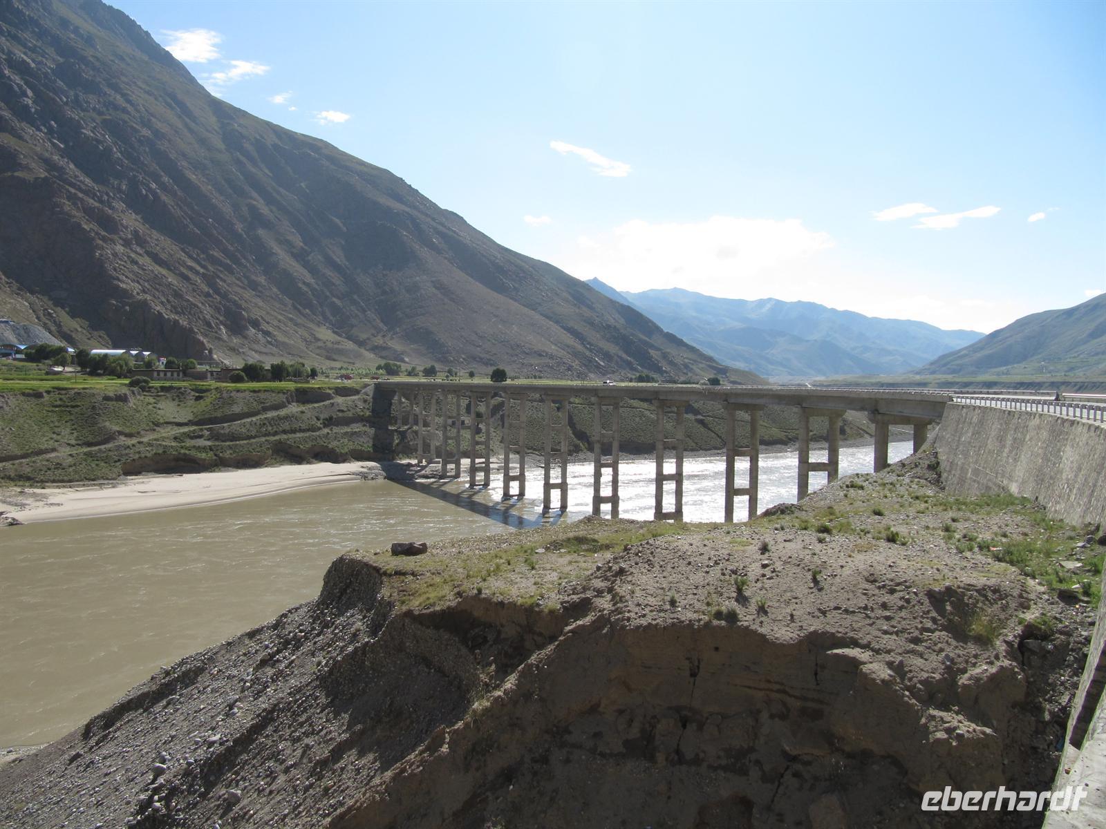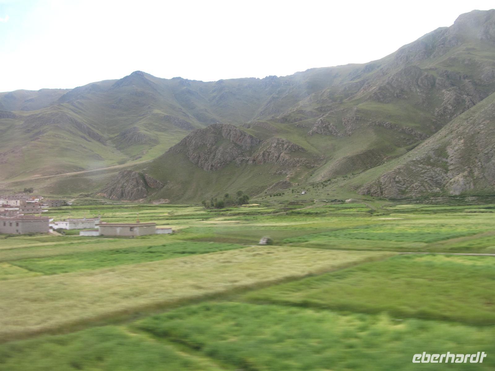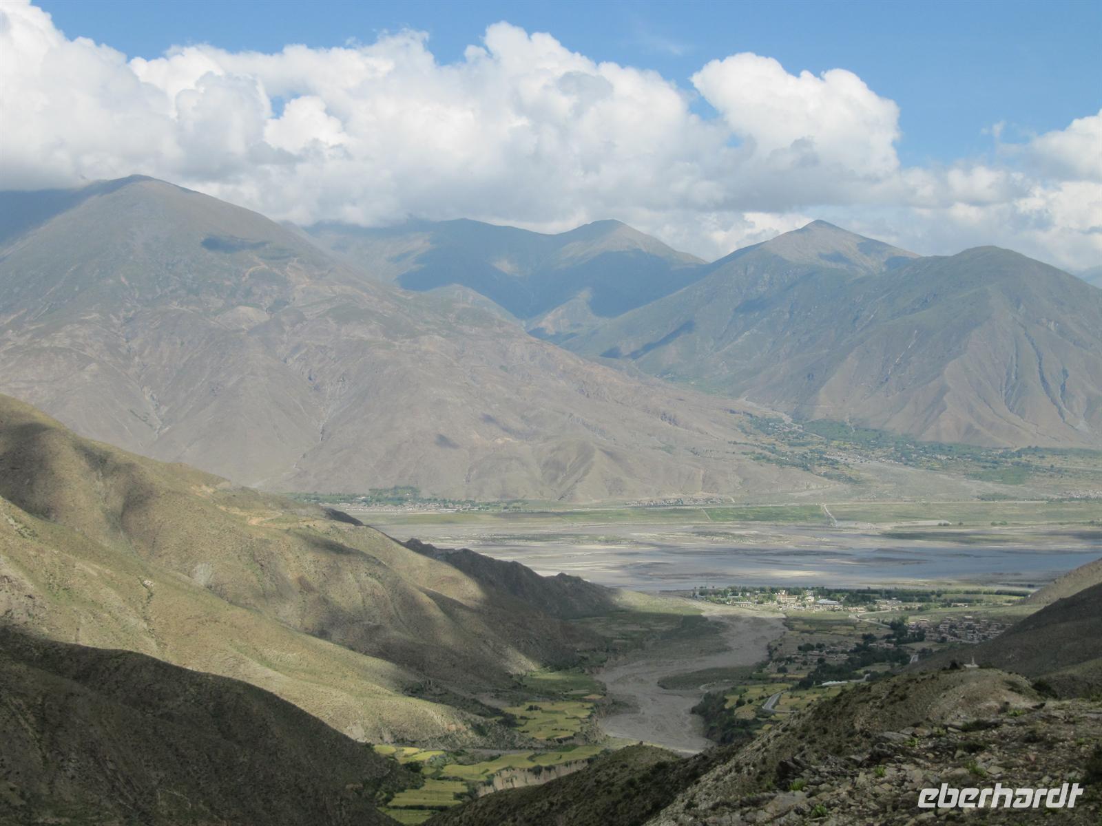Nun fahren wir von den Höhenmetern her wieder nach unten in die tibetische Stadt .