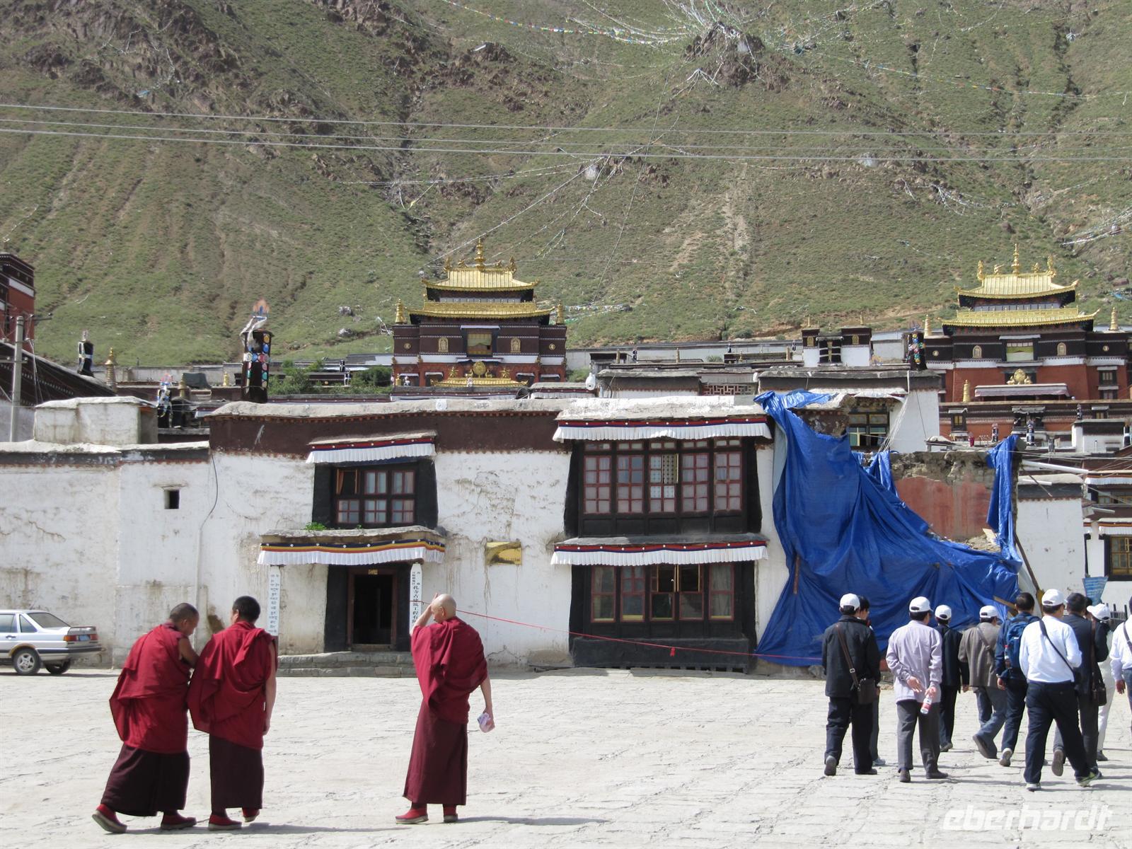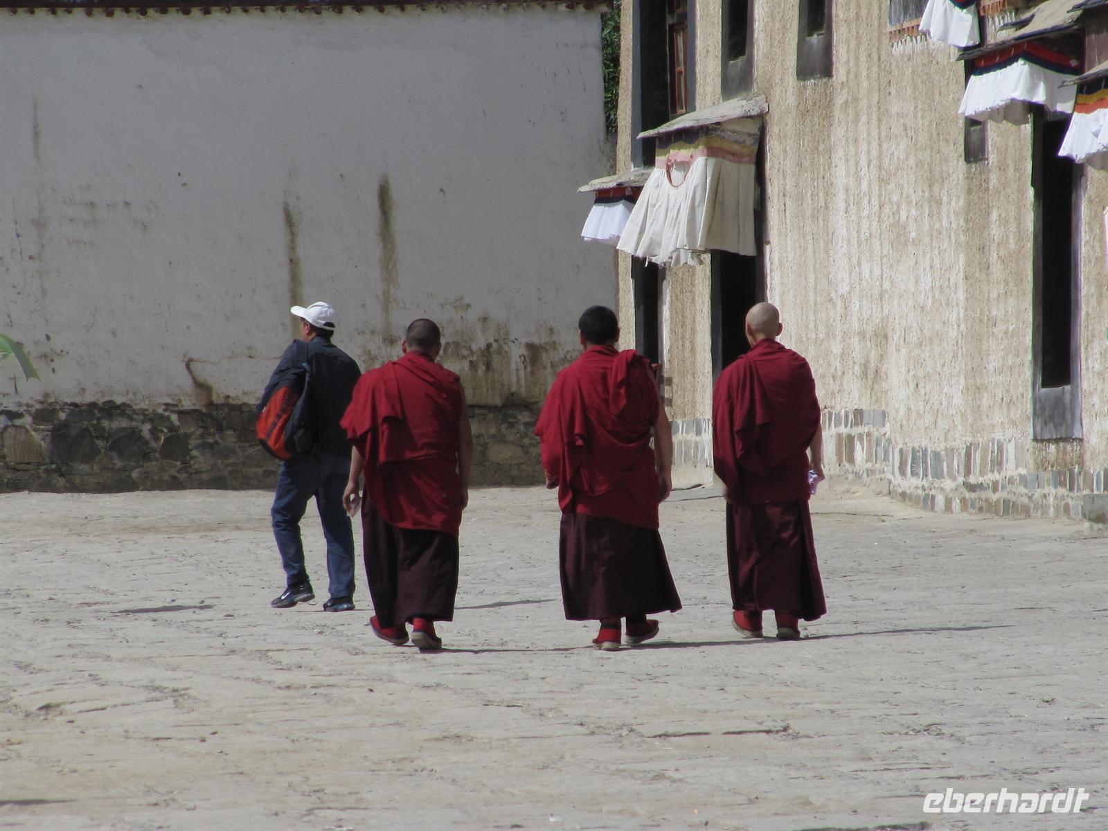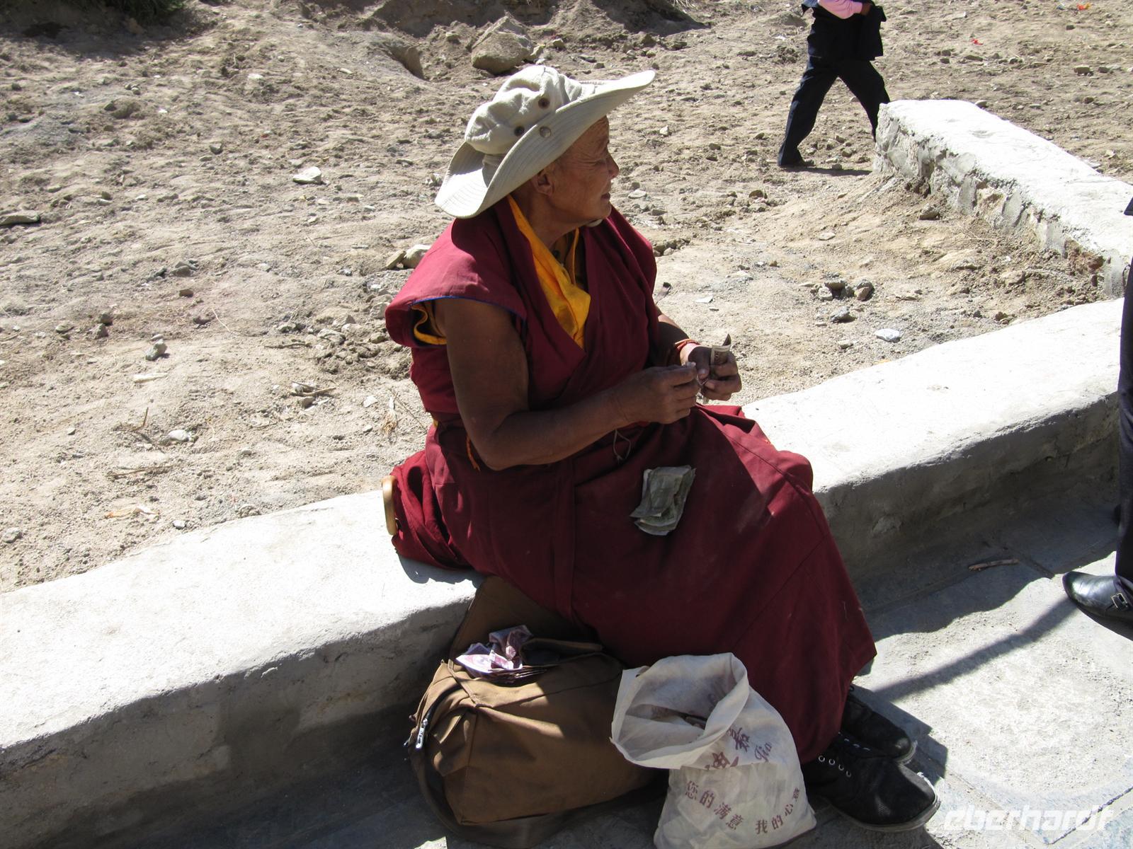 Es stimmt einen ein wenig traurig, wenn man bedenkt, dass die Buddhisten hier ihre Religion nicht frei ausleben dürfen. Wir suchen uns somit unseren Weg durch das Kloster und passen auf, dass Niemand in den Massen verloren geht. Fast werden wir hier schon selbst zu Pilgern. Überall ertönt das Gebetslied "Om mani padme hum", welcher uns noch lange auf unserer Reise begleiten wird.