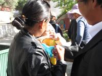 Nach einer mehr oder weniger erholsamen Nacht frühstücken wir heute zum ersten Mal in Tibet. Das Frühstück ist weitestgehend europäisch für uns "Ausländer" Natürlich hat ein Jeder auch die Möglichkeit tibetische Spezialitäten wie Tofu, Hefebällchen oder Bandnudeln zu probieren. Von unserem örtlichen Reiseleiter Leo erfuhren wir am Vortag, dass in Lhasa das Pilgerfest Einzug gehalten hat. Für uns war dieses Ereignis ein großes Glück. Wir beschlossen aus diesem Grund, unser Programm ein wenig umzustellen und fuhren heute zunächst zum Sera-Kloster. Auf unserem Weg dahin, überraschte uns das tibetische Leben. Mönche gehen auf den Straßen ein und aus und Pilger versammeln sich in Massen auf den Straßen. Das Pilgerfest ist speziell dem rituellen Besuch heiliger Stätten gewidmet und wird am Nachmittag mit Feiern, Picknicks und Volkstänzen fortgesetzt. Wir erleben das Spektakel hautnah. Da das Drepung-Kloster an diesem Tag nur so vor Menschenmassen sprüht, entscheiden wir uns, erst morgen zum Kloster zu fahren.