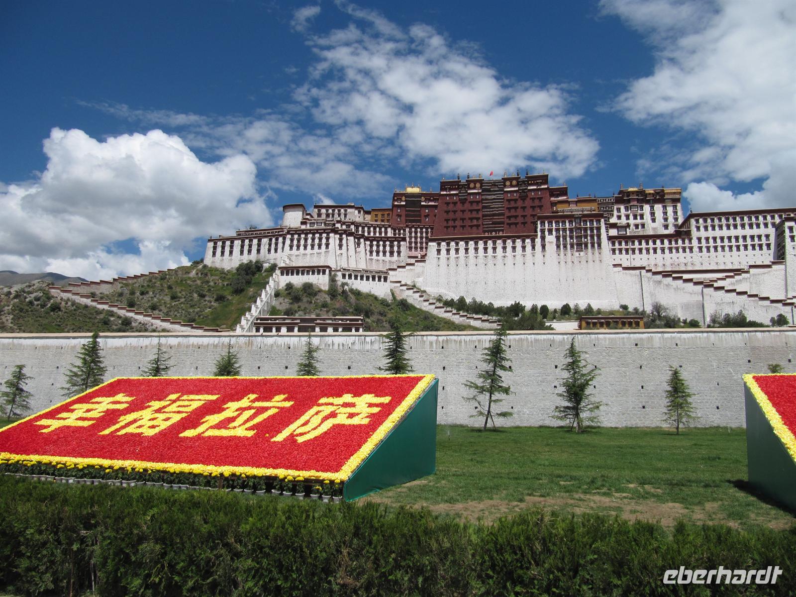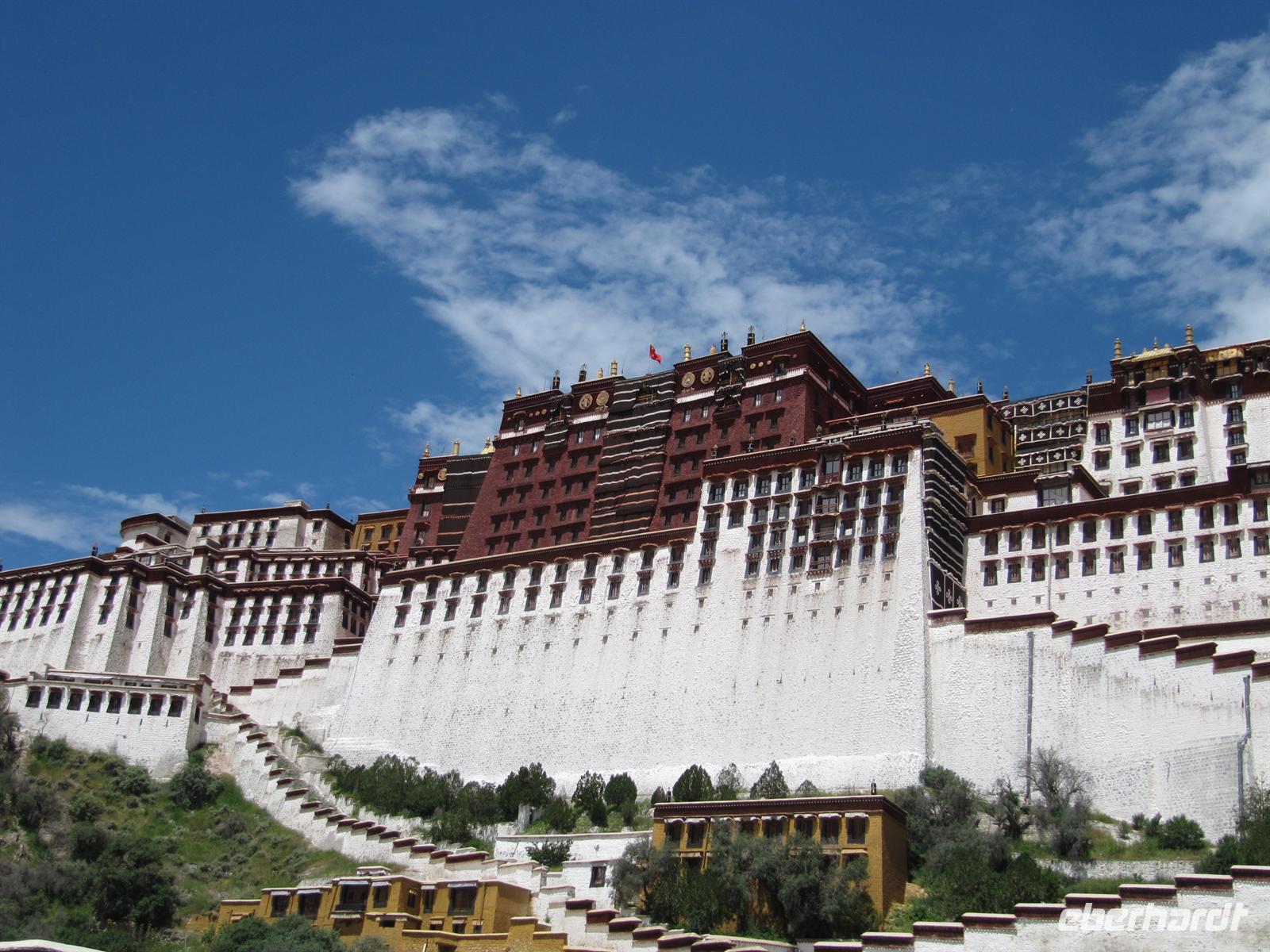 Unsere Reise führt uns heute zu einem ganz besonderen Höhepunkt unserer Reise. Wir fahren zum legendären . Der fünfte Dalai Lama begann im 17. Jahrhundert mit den Arbeiten für das rot-weiße Bauwerk. Es ist das Zentrum des tibetanischen Buddhismus und war außerdem für lange Zeit der Regierungssitz des Landes. Seit die sozialistische Regierung Chinas den 14. Dalai Lama im Jahr 1959 vertrieben und das Land besetzt hat, dient der Tempel als Museum und Touristenattraktion. Für einen Teil von uns ist es fraglich, ob dies gut ist, für die Mönche, die hier leben. Auf der anderen Seite leben Sie auch von den Spenden der Touristen.