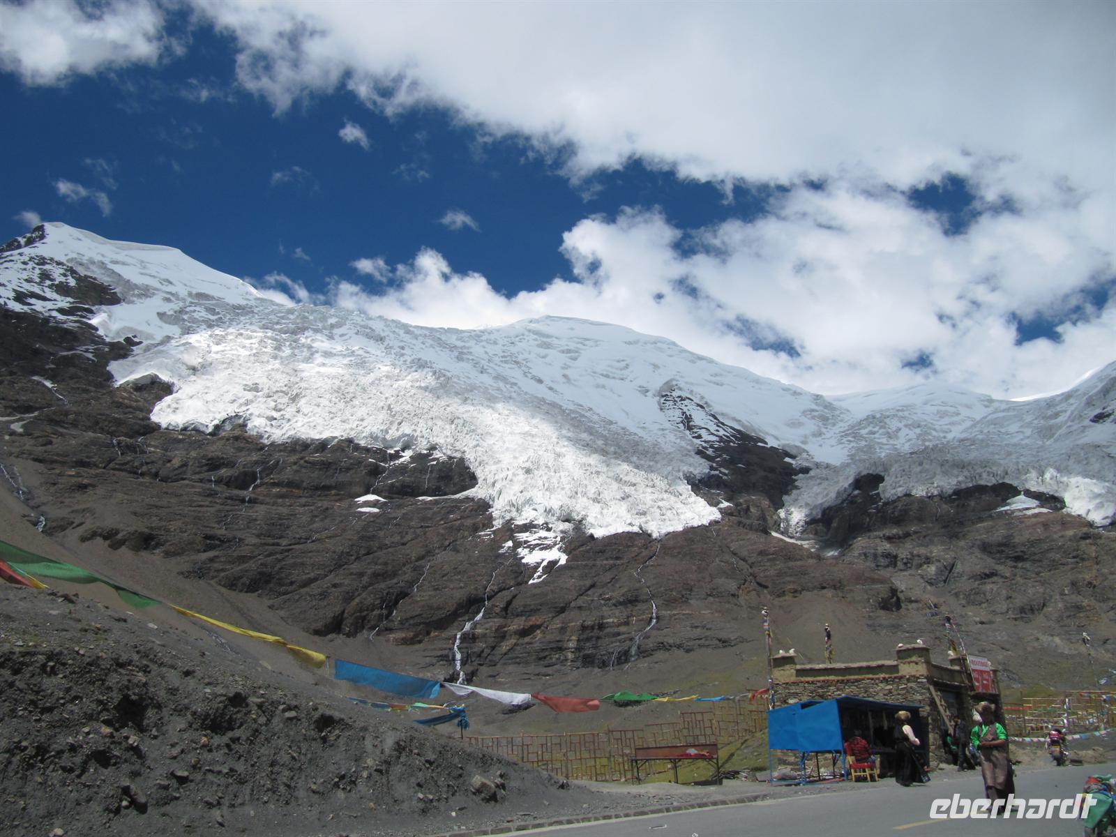 Hier hat man wirklich das Gefühl, dass einem sprichwörtlich die Luft wegbleibt Aber natürlich hat das deutsch-chinesisch-tibetische Reiseleiter-Team wie schon beschrieben, vorgesorgt. So bekommt jeder eine Sauerstoffflasche und das tut uns wirklich gut. So halten wir es einigermaßen draußen aus.