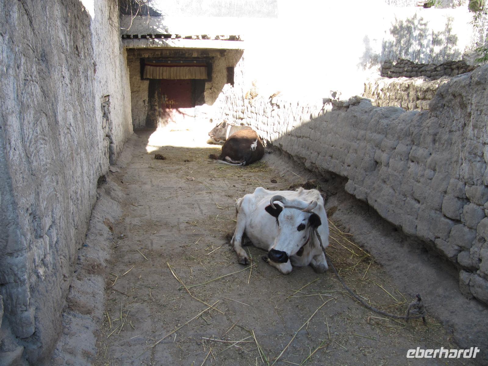Unterwegs halten wir immer wieder mal an und lassen uns auch mit einem Yak fotografieren. Einige von uns werden sogar von den Tibetern als Yaks bezeichnet Wieder andere passen nicht auf und haben etwas von dem Yak am Fuß