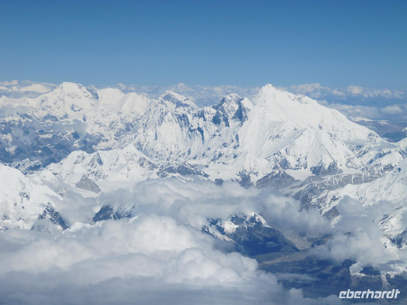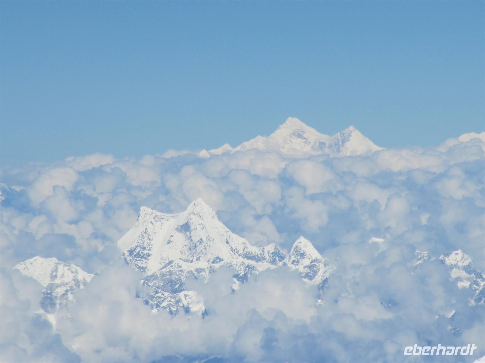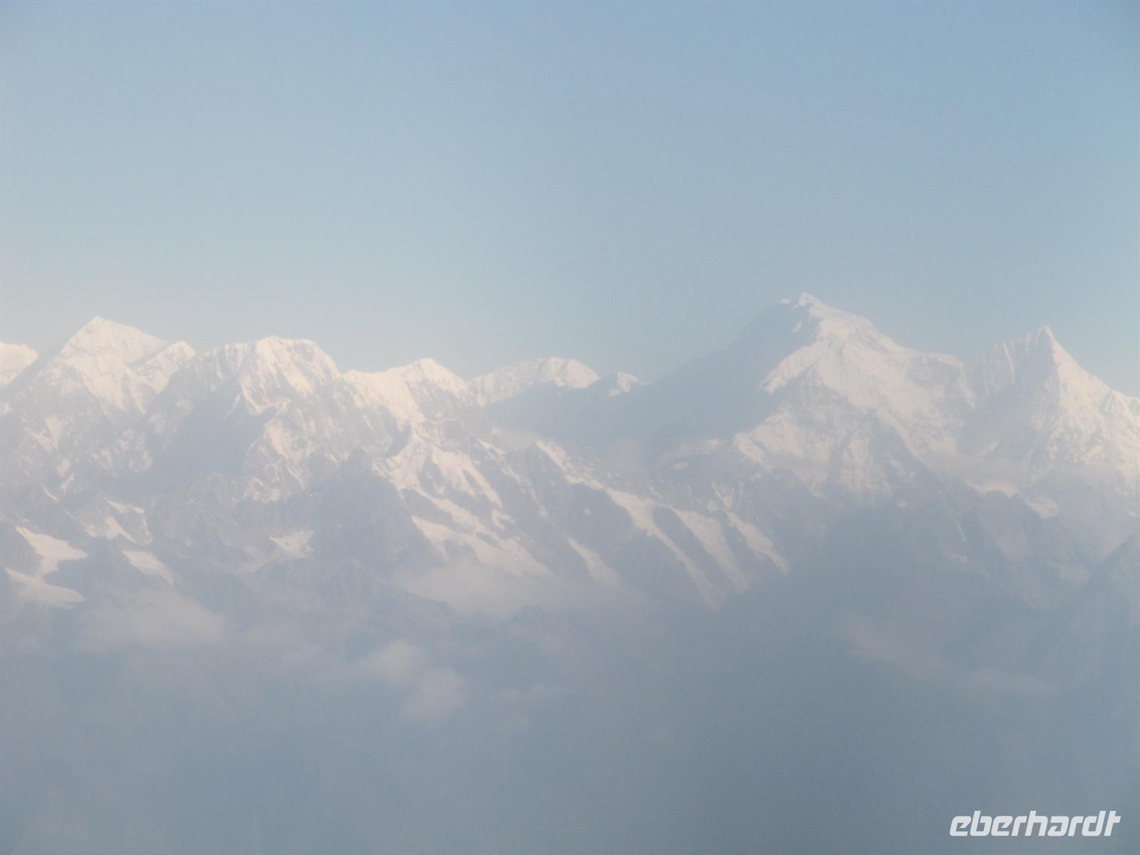 Unser Flug verläuft ruhig und bereits von Weitem haben wir ihn nun endlich langersehnt vor unserer Nase: den legendären, großartigen Mount Everest und die Gebirgskette des Himalaya. Es ist ein traumhaftes Wetter, so dass wir Ihn wunderbar sehen können. Unsere Augen können kaum von seiner Schönheit lassen. Aber uns erwartet ja noch ein Flug auf unserer Reise.