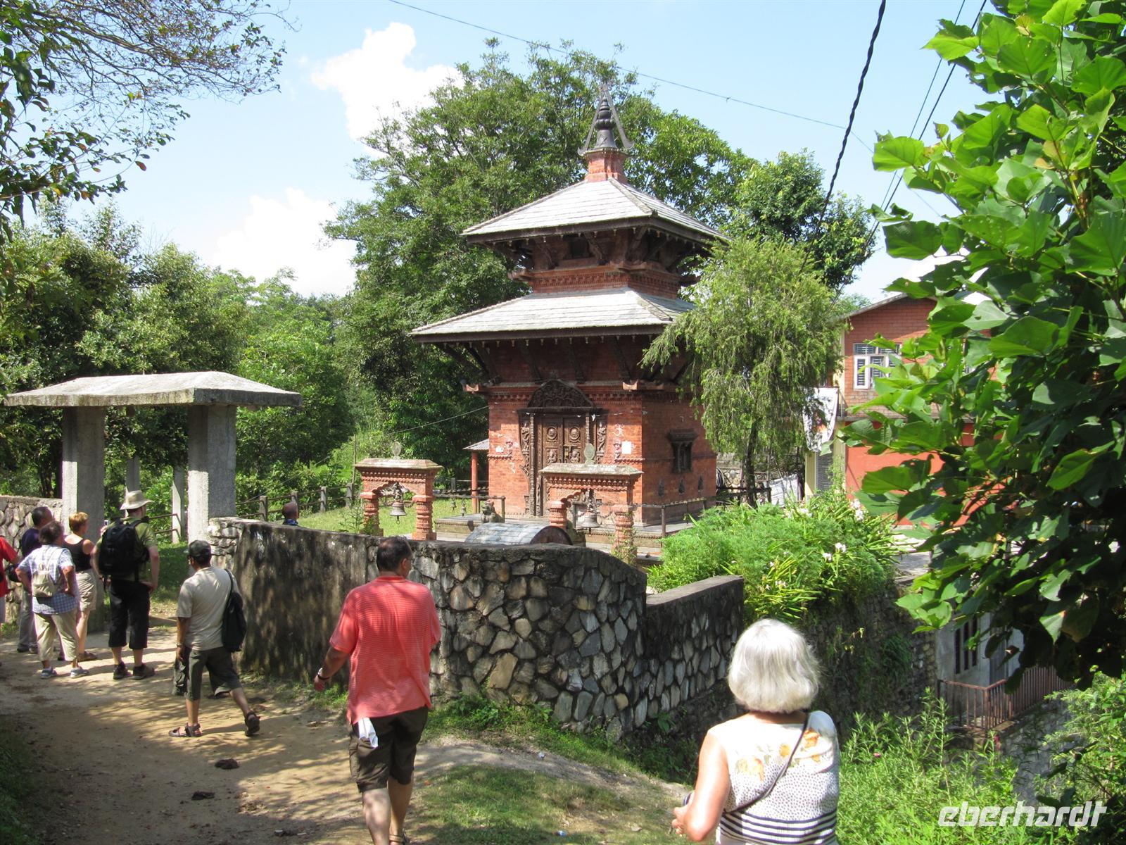 Am frühen Nachmittag erreichen wir Pokhara. Pokhara liegt etwas über achthundert Meter über dem Meeresspiegel, und damit fast 500 Meter tiefer als Kathmandu. Dies merken wir direkt am wärmeren, aber auch feuchterem Wetter. In Pokhara friert es nie und so säumen tropische Blütenpflanzen und manchmal Bananenstauden die Gärten. Wir beschließen zusammen mit K.C. heute schon das gesamte Programm zu bewältigen, so dass wir morgen einen freien Tag im wundervollen Begnas Lake Resort verbringen können. So besichtigen wir die Devi-Wasserfälle und die Mahendra-Höhle. Es ist an diesem Tag wirklich unerträglich heiß, so dass unsere Kraft fast nicht mehr für weitere Besichtigungen ausreicht.