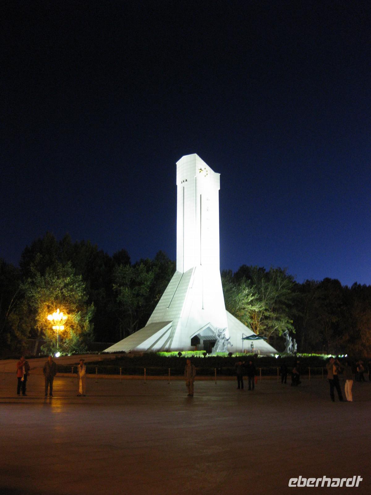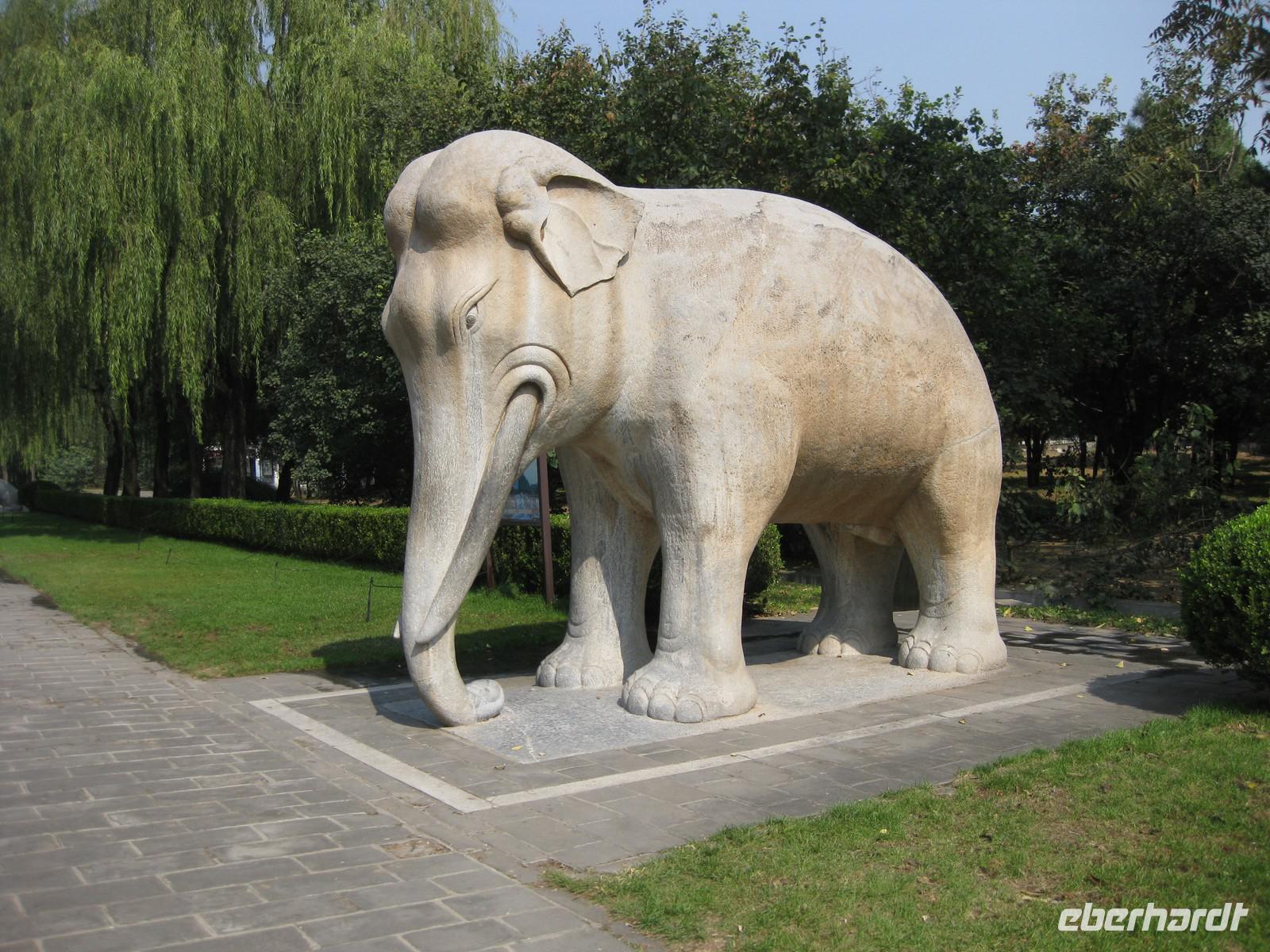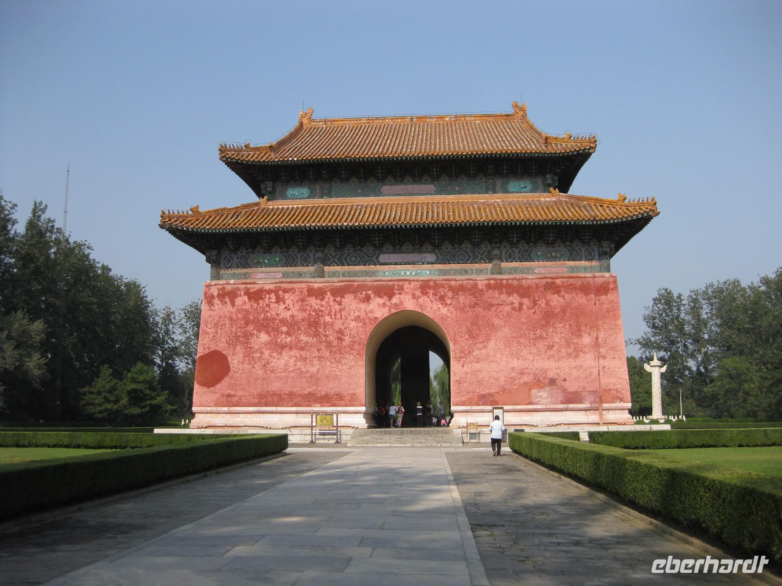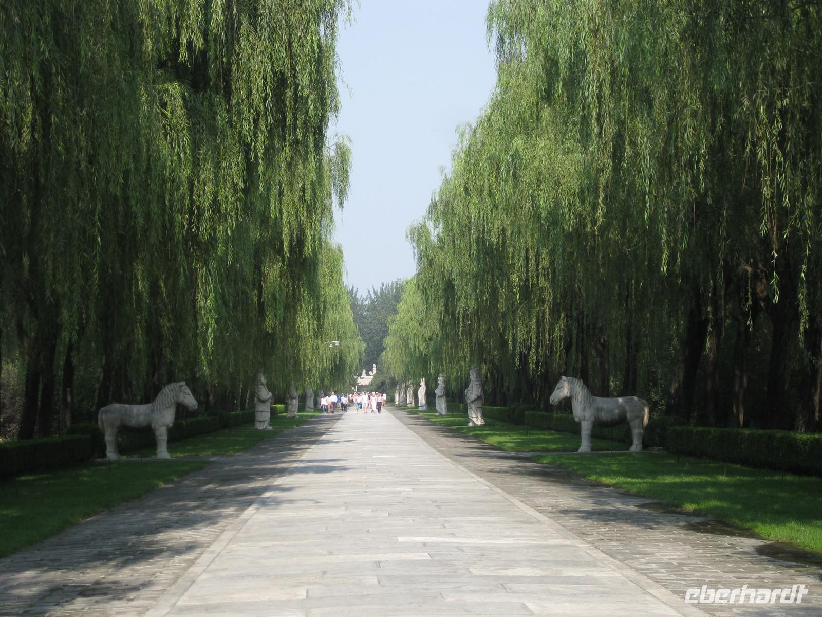 In Absprache mit Cui machen wir auf der Rückfahrt in die Stadt zusätzlich einen Stopp am "Seelenweg" bei den Ming-Gräbern. Wir laufen den "Seelenweg" entlang und bestaunen die achtzehn Steinfigurenpaare, zwölf Beamte und sechs Tiere, die den Weg säumen. Am Ende erreichen wir den Stelenpavillon und verlassen die Anlage und fahren nach Peking in die Stadt zurück.