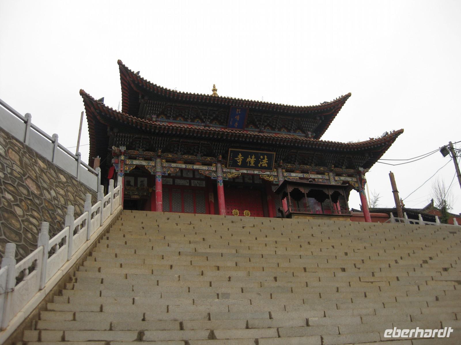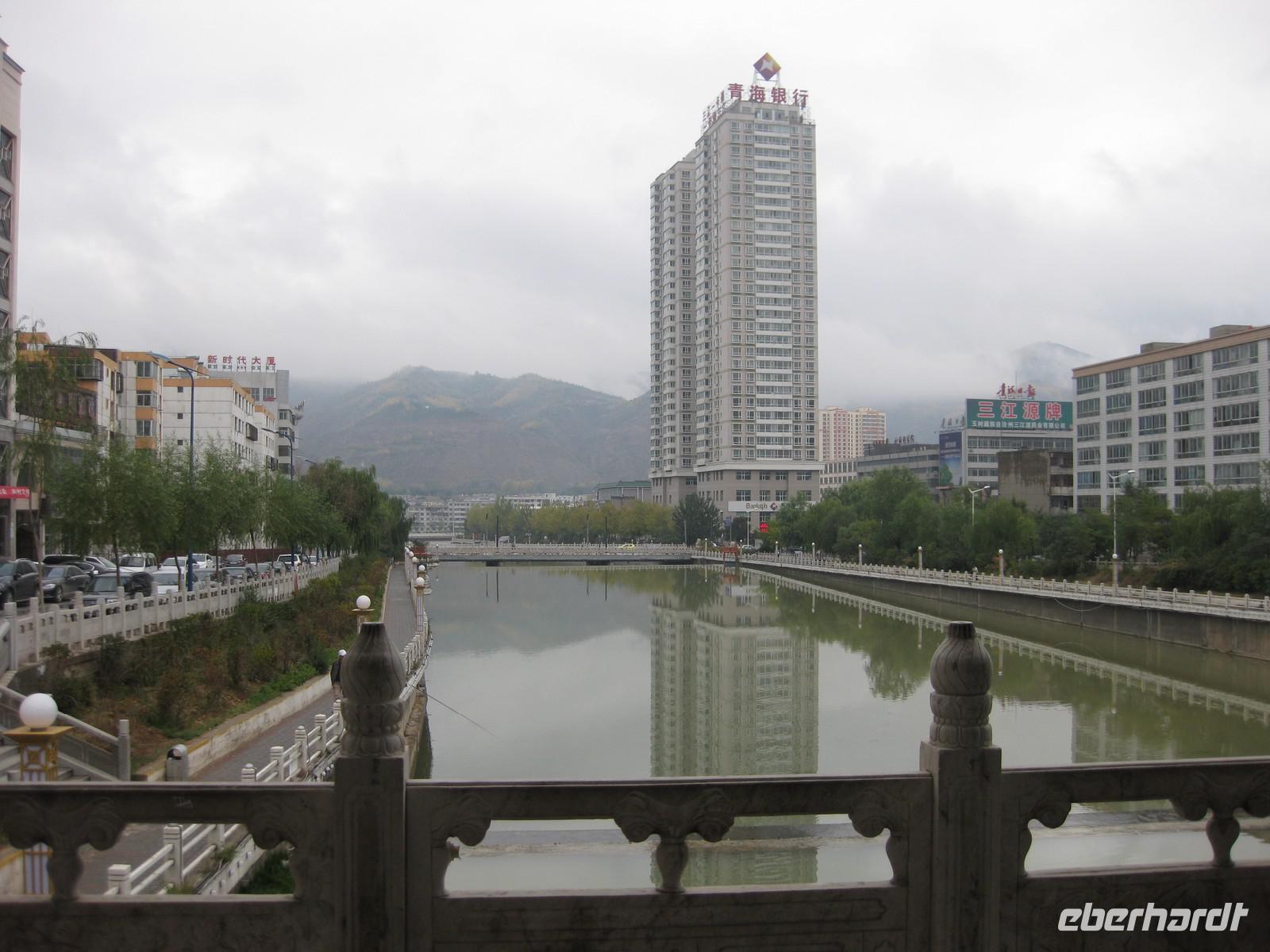 Um 10.00 Uhr landen wir auf dem Flughafen in Xining. Leider regnet es. Unser örtlicher Reiseleiter Liu (Udo) erwartet uns schon am Flughafen. Wir fahren vom Flughafen in die Stadt Xining. Die Autobahn ist wegen eines Unfalls gesperrt und so müssen wir die alte Straße durch einige Dörfer fahren. Es ist eine etwas abenteuerliche Fahrt mit einigen Staus unterwegs, so dass wir erst gegen 12.00 Uhr in der Stadt Xining ankommen. Wir besuchen ein Kloster, gehen über einen "Freimarkt", wo frische Waren von kleinen Händlern angeboten werden. An einem Obststand schlagen wir zu und kaufen Bananen, Äpfel, Orangen und Mandarinen für die Fahrt mit dem Zug nach Lhasa. Anschließend essen wir Mittag. Und bevor wir zum Bahnhof fahren, kaufen wir noch etwas für das Abendbrot und Frühstück im Zug ein, denn im Speisewagen gibt es "nur" chinesisches Essen.