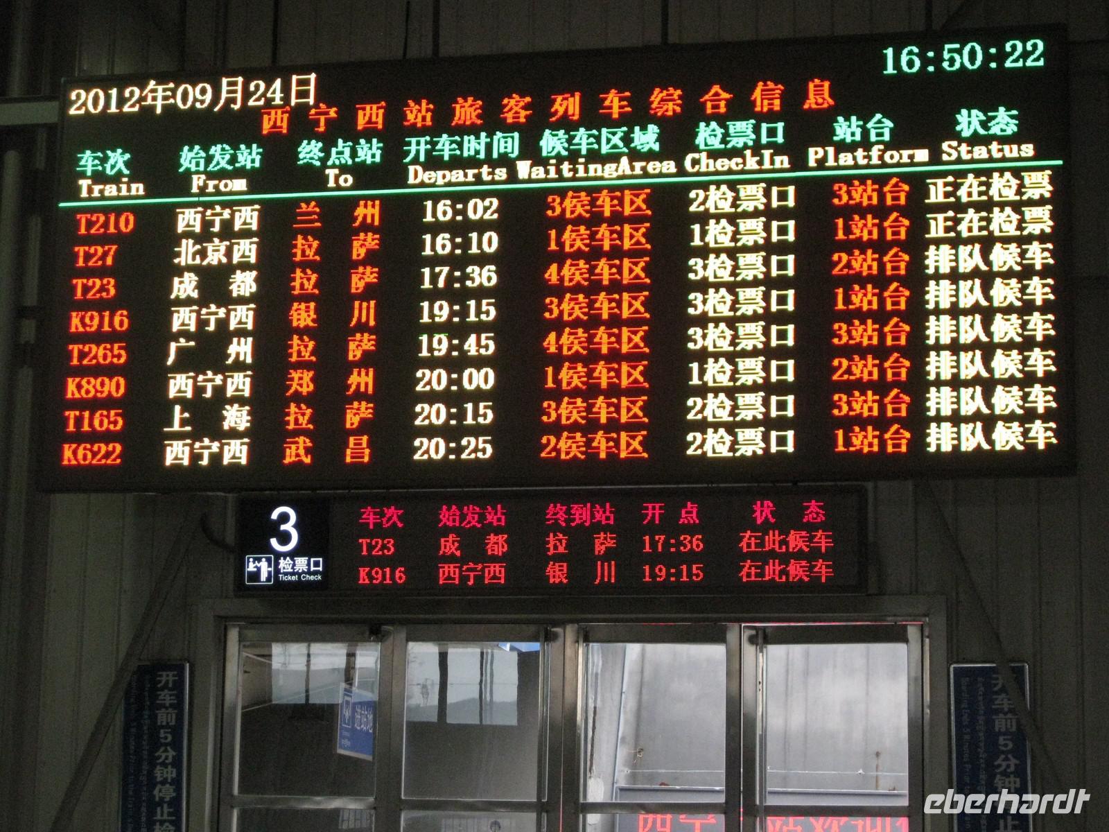 Montag, 24.09.2012 – Flug nach Xining, Fahrt mit dem Zug nach Lhasa