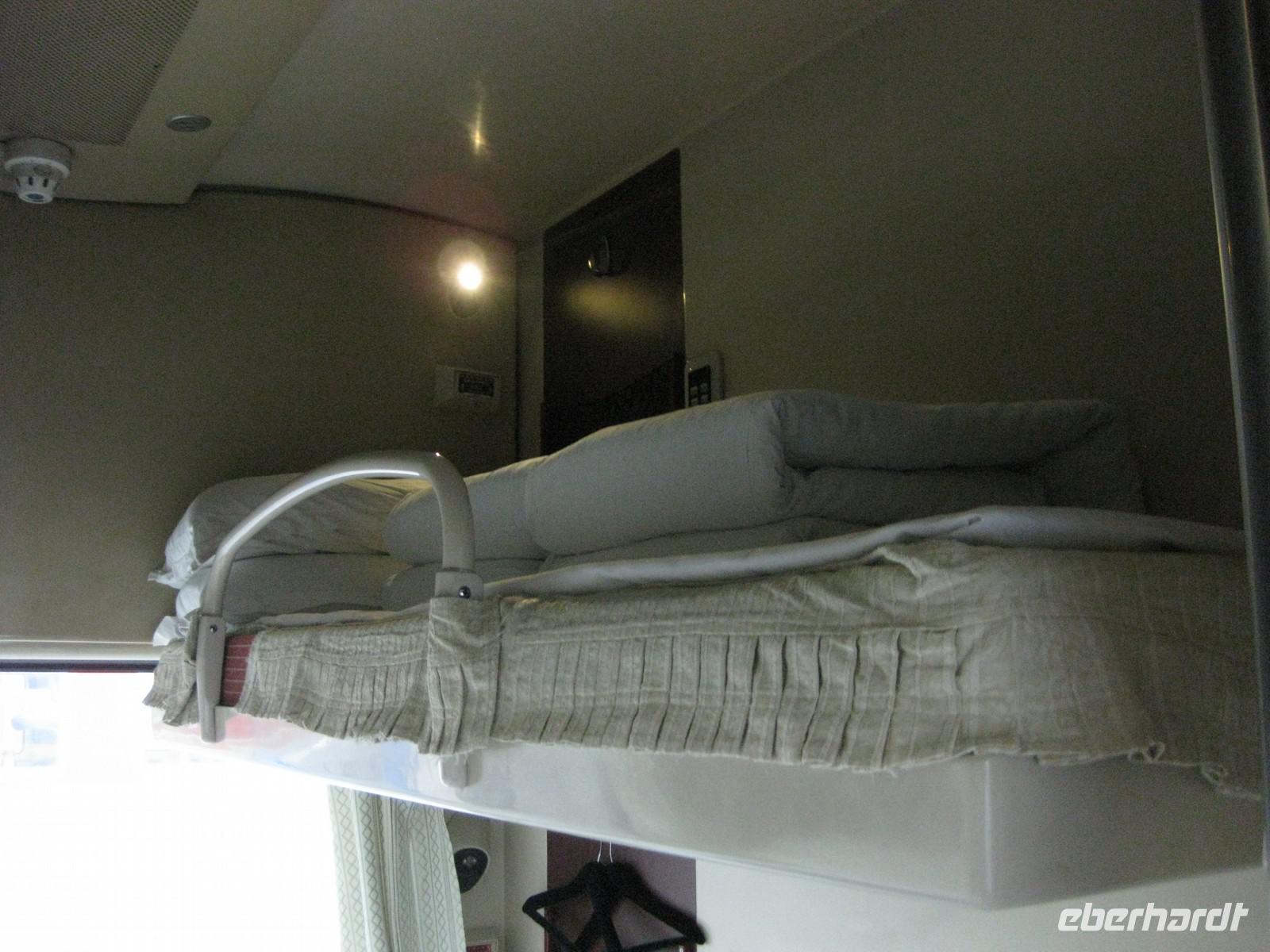 17.15 Uhr können wir einsteigen und unsere Abteile beziehen. Wir haben Vierbett-Abteile in der 1. Klasse, alle unmittelbar nebeneinander. Wir bekommen vom Zugbegleiter der 1. Klasse und unserem Reiseleiter Liu gezeigt, wo sich alles befindet, die sanitären Einrichtungen, heißes Wasser , Sauerstoffdüsen ... . Um 17.45 Uhr setzt sich der Zug in Bewegung - Abfahrt.