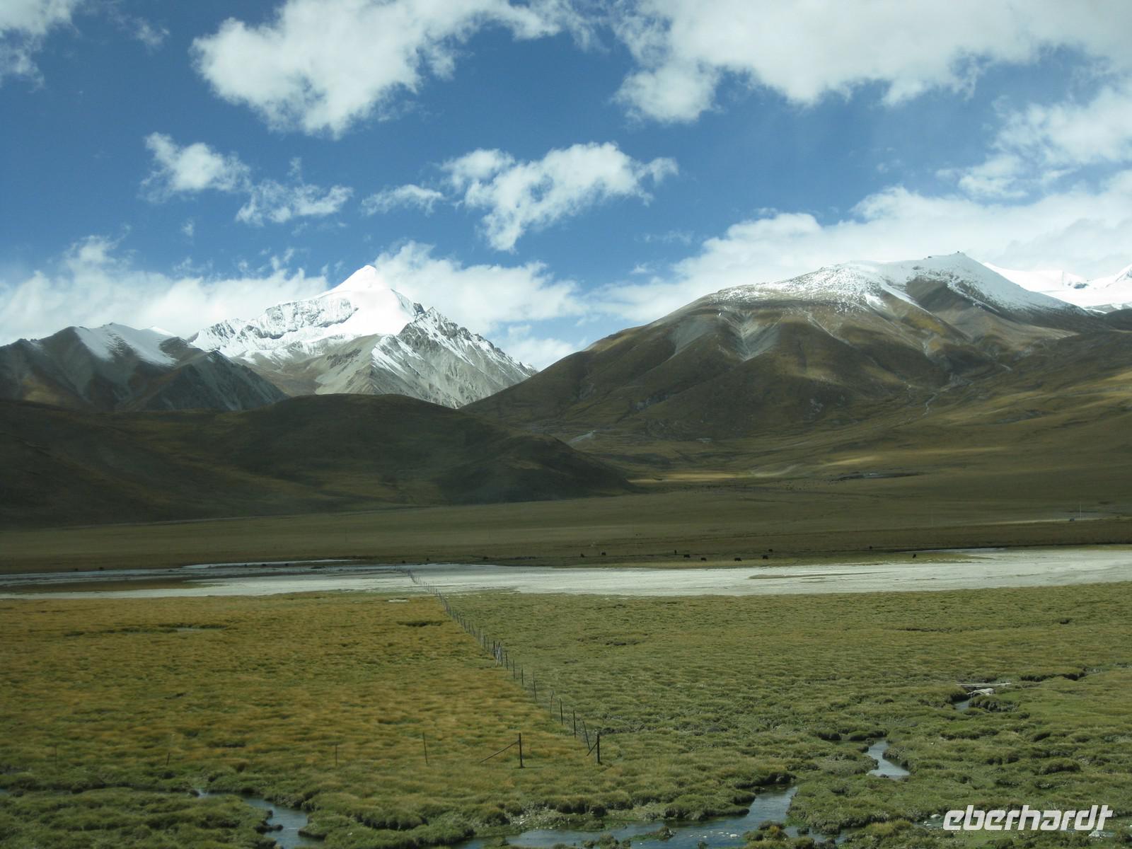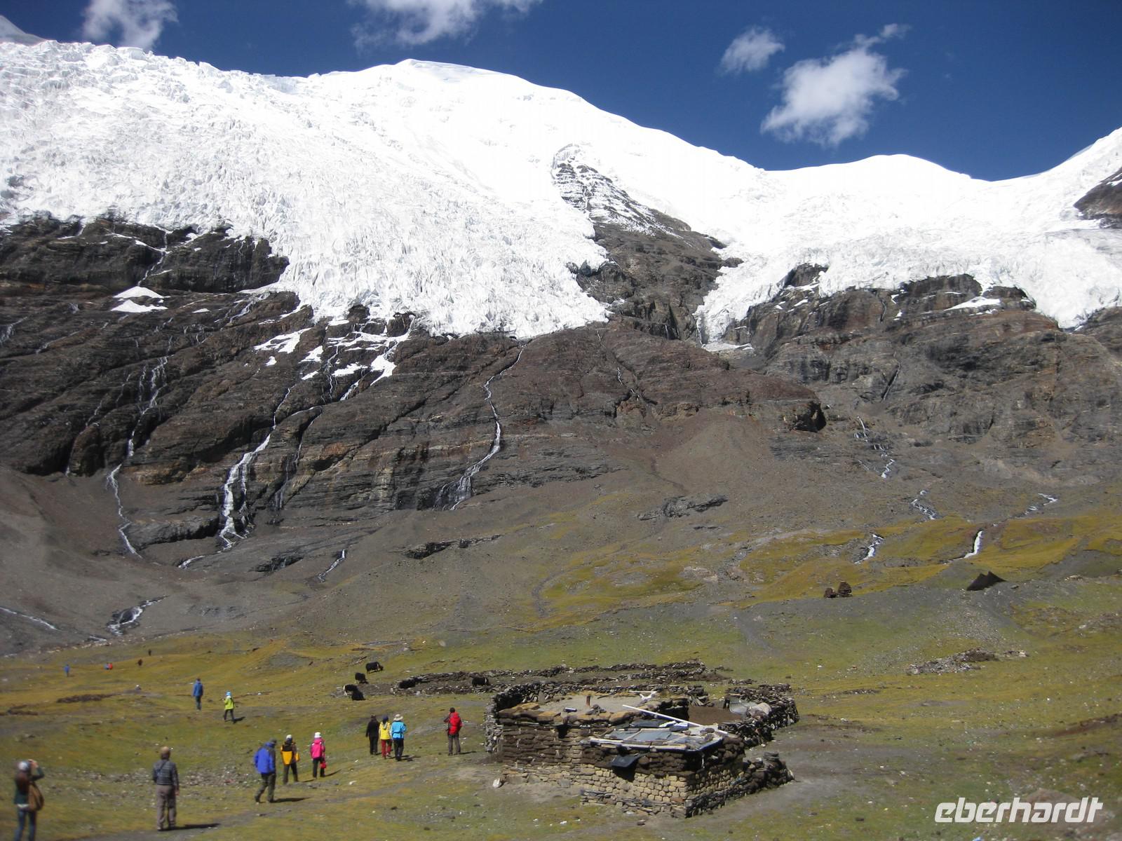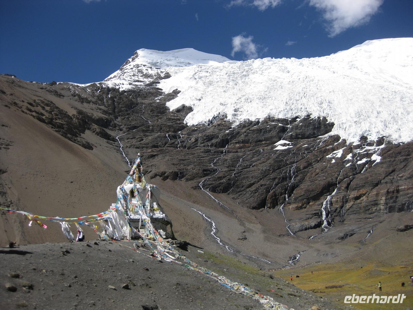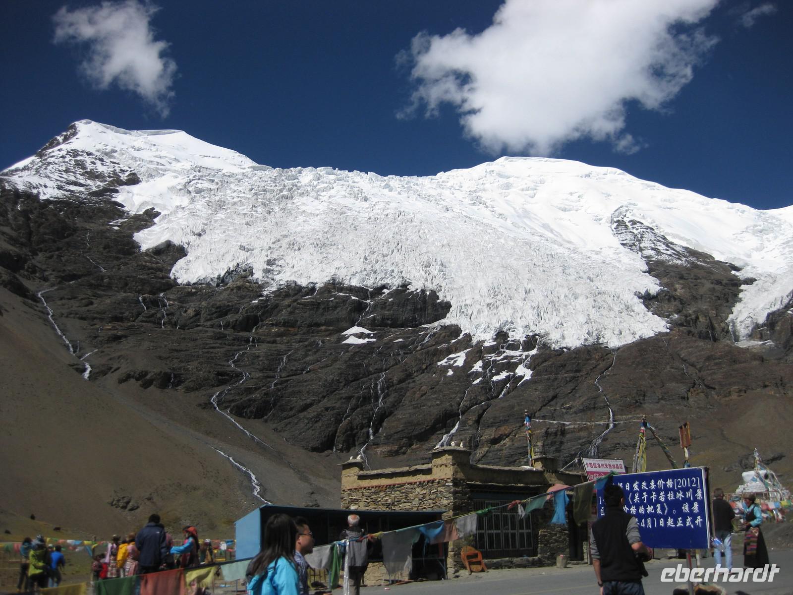 Nach längerer Fahrt am Ufer des Yamdrok Yutsho See entlang, fahren wir nun durch eine atemberaubende Landschaft zum Karo La Pass. Wir können die Gipfel der Sechstausender aus unmittelbarer Nähe bewundern. Vom Parkplatz des Karo La Passes (5.020 m) aus, dem "Höchstpunkt" unserer Reise, bietet sich ein atemberaubender Blick auf den Karo La Gletscher. Hier machen wir eine Pause, um diese einmalige Landschaft in Ruhe zu sehen. Man sieht hier auch die Auswirkungen der Klimaveränderung. Noch vor wenigen Jahren reichte der Gletscher bis zu uns hinunter auf die Straße.