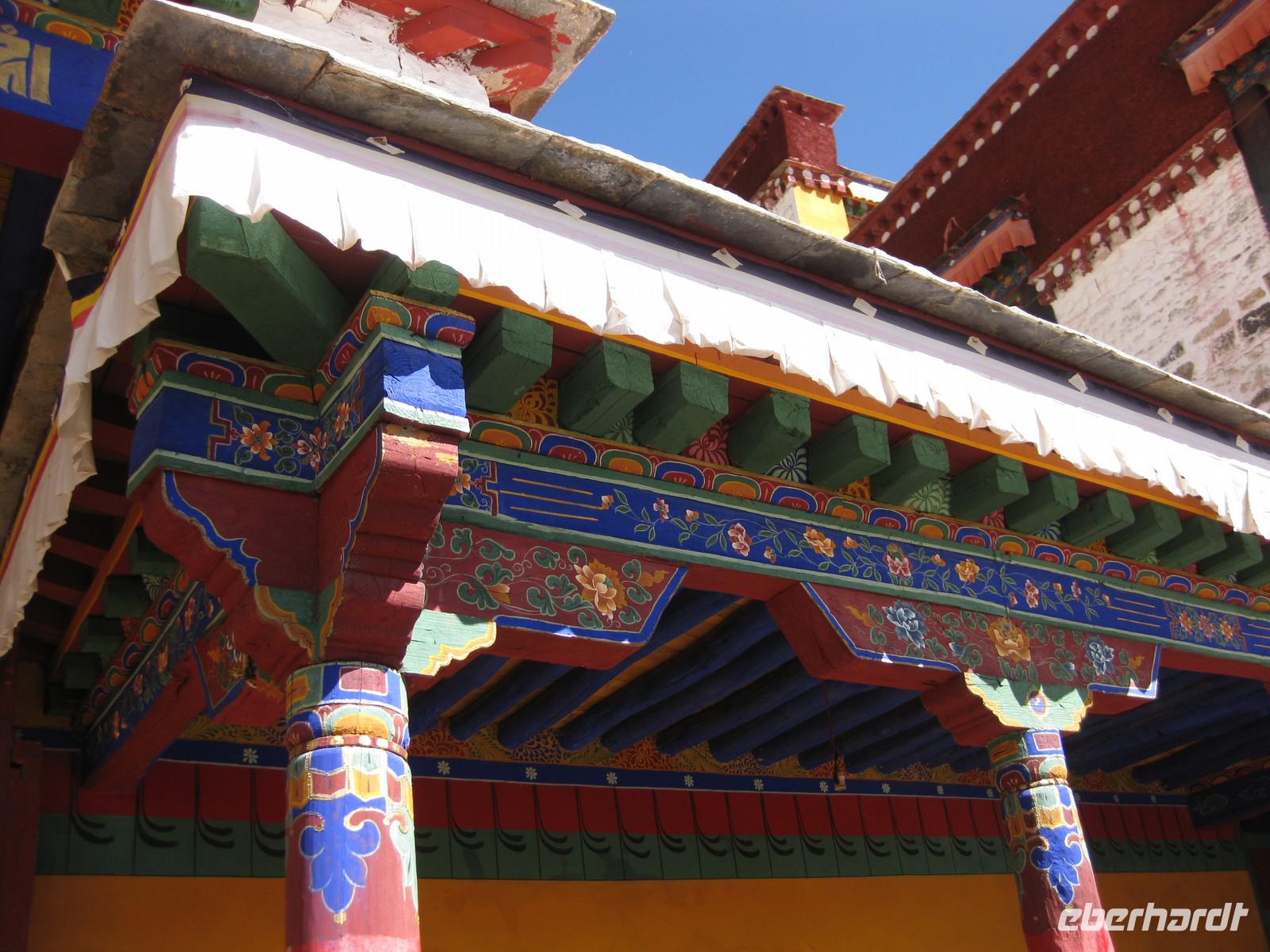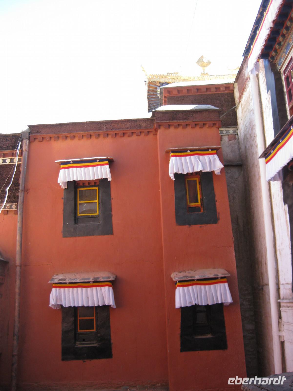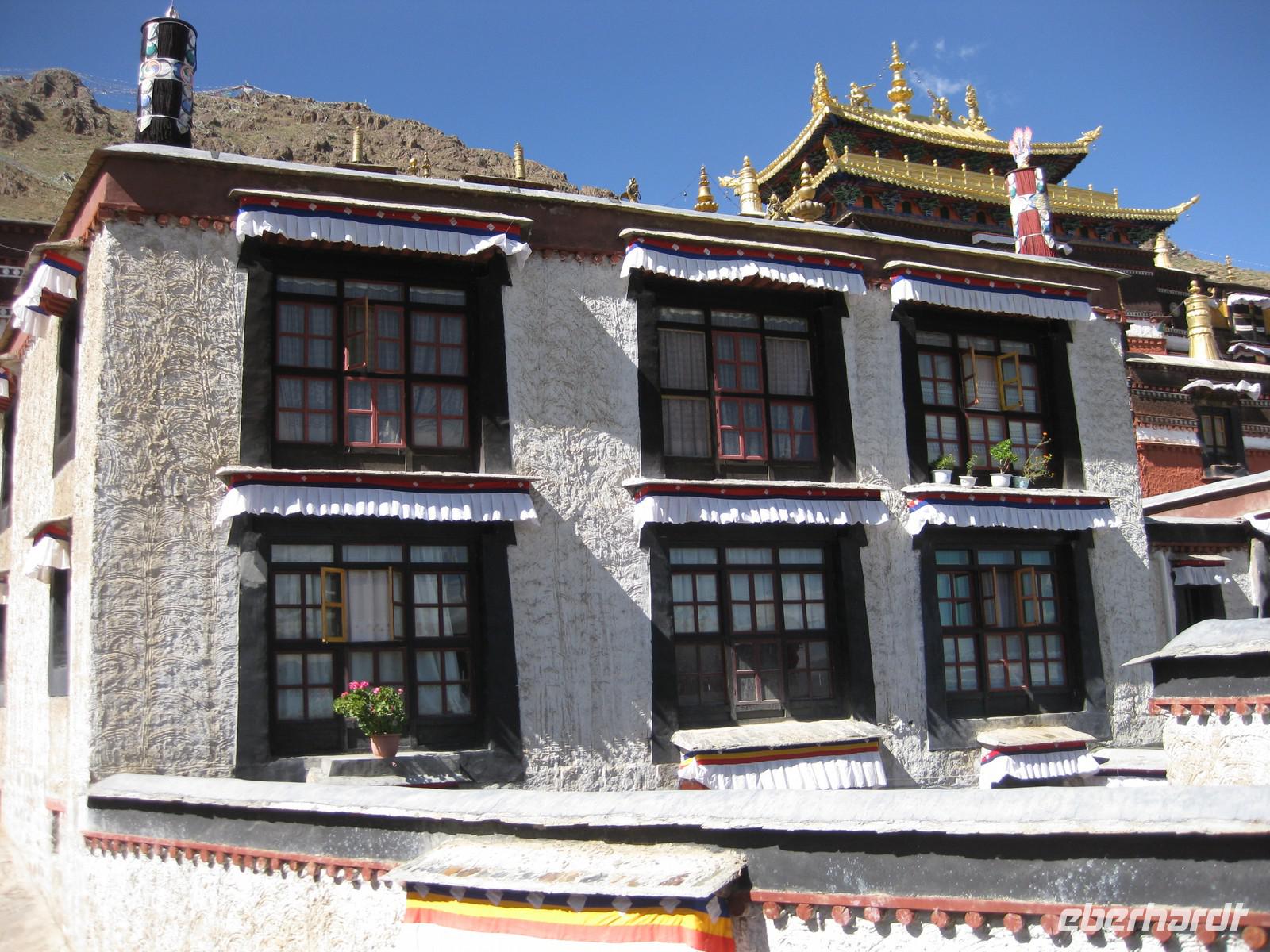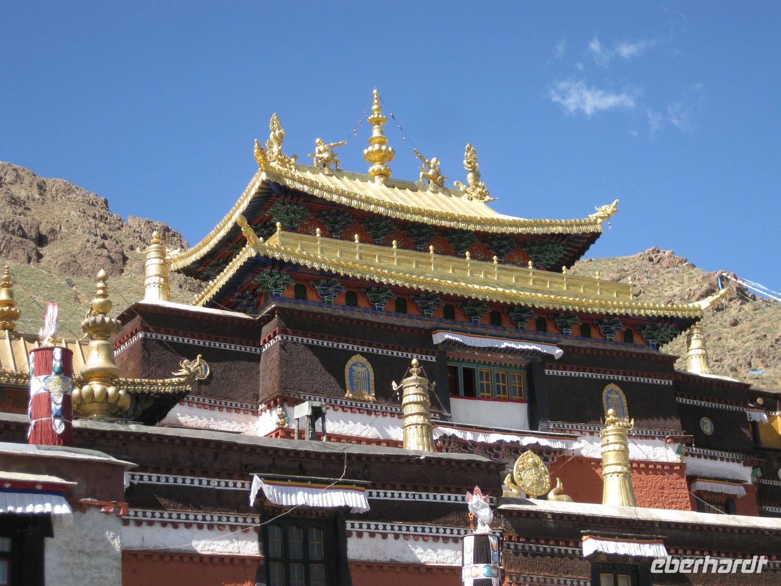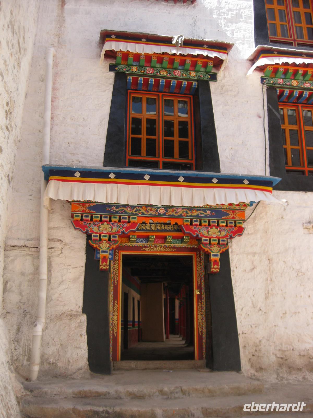 Nach dem Frühstück starten wir zur Besichtigung des Klosters Pälkhor Chöde in Gyantse. Wir sind wohl die Ersten am heutigen Tag. Das Pälkhor Chöde wurde auch im 15. Jh. gegründet und es bildete das kultische Zentrum. Es besitzt eine große Versammlungshalle, in der auch aus Holz hergestellte ausdrucksvolle Statuen untergebracht sind. Desweiteren befindet sich auf dem Gelände des Pälkhor Chöde Klosters der einzige heute noch existierende begehbare Reliquienschrein, als "Kumbum" bekannt. Wir können den "Kumbum" besteigen und so die Malereien und die Statuen ganz aus der Nähe betrachten. Von oben bietet sich ein faszinierender Blick auf das Kloster und die Altstadt von Gyantse. Anschließend machen wir noch einen Spaziergang durch die Altstadt.