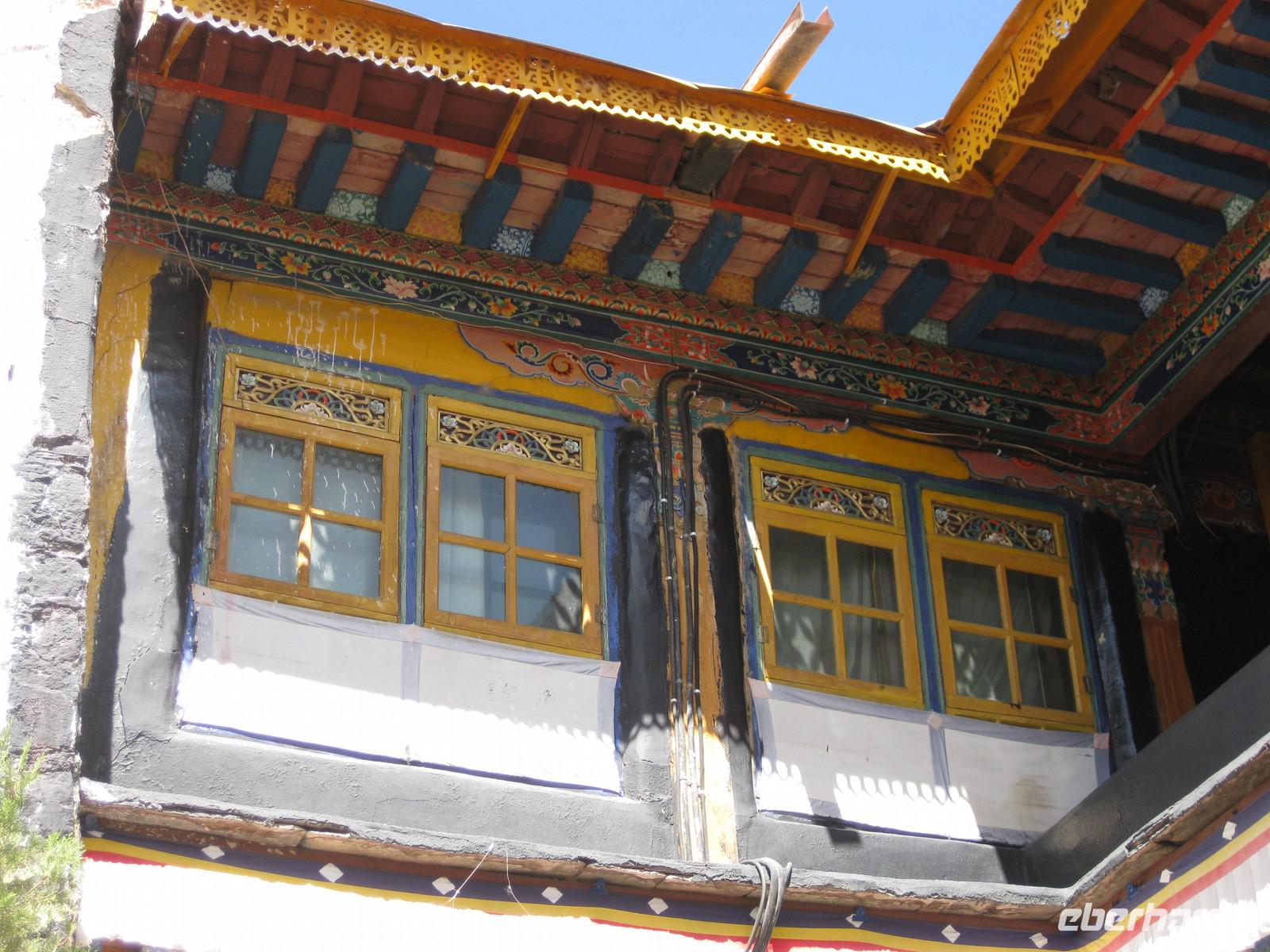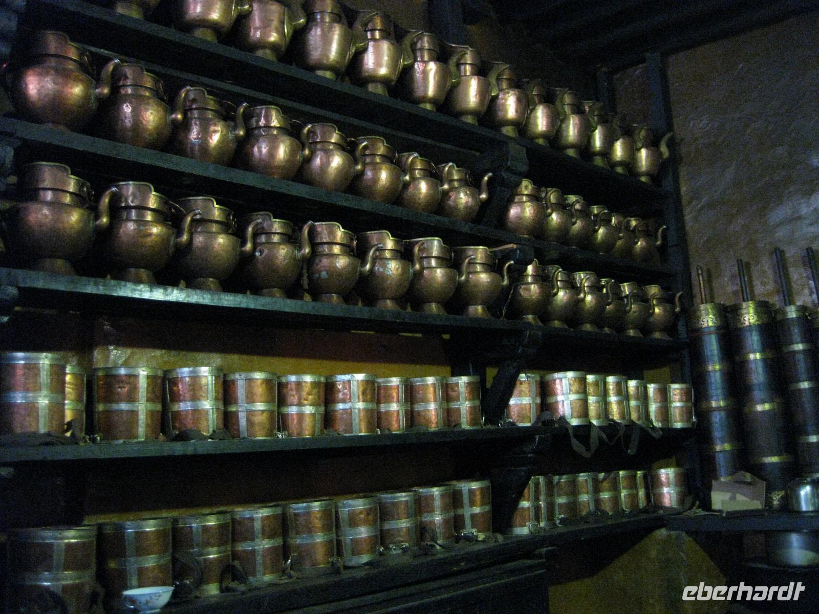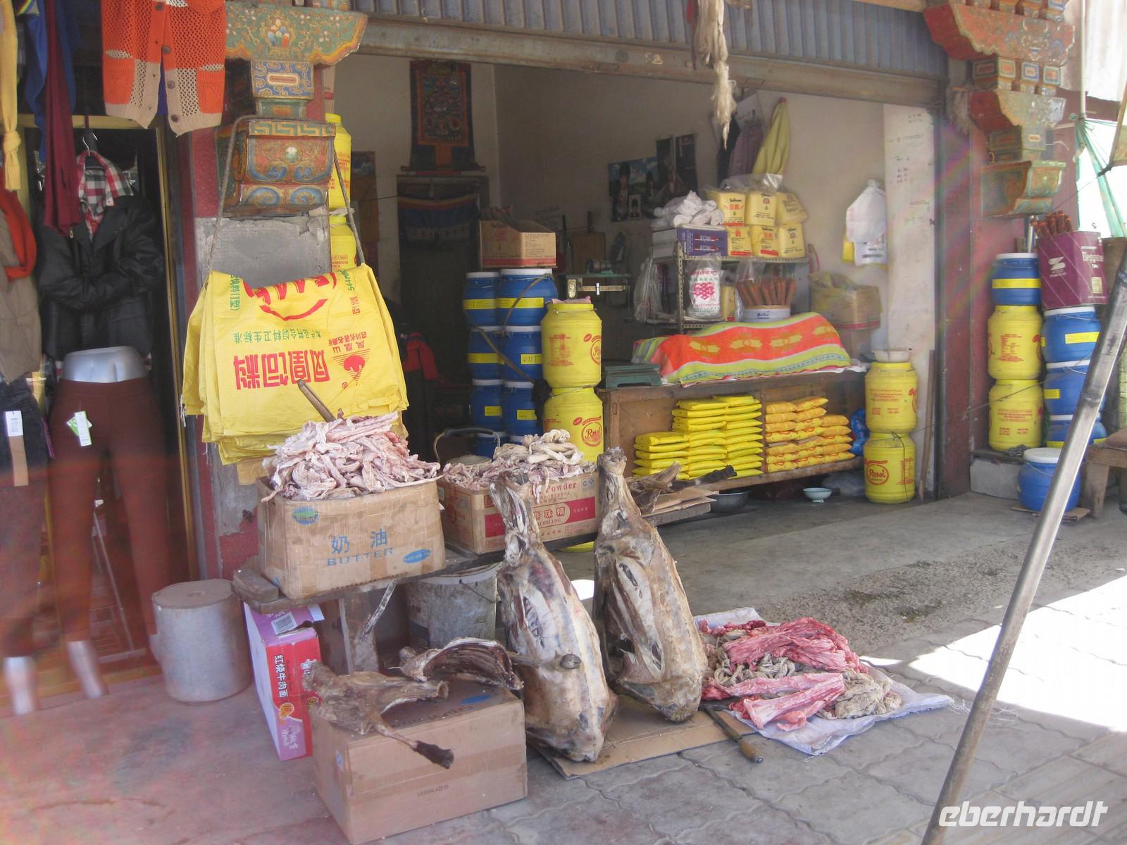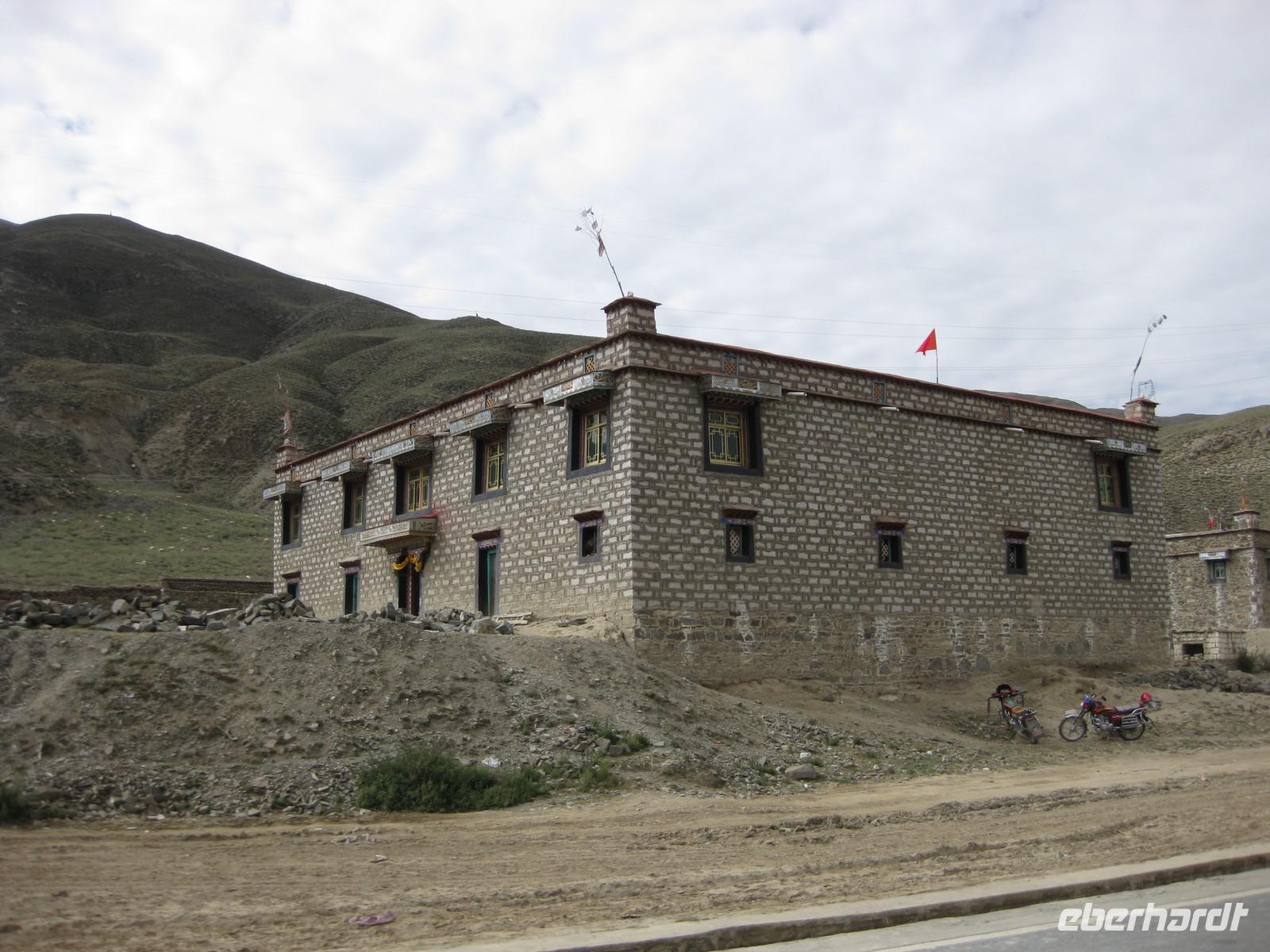 Heute haben wir ein etwas anderes Frühstück. Der Frühstücksraum ist tibetisch eingerichtet. Es gibt Kaffee, Tee, Saft, Yakbutter, Eier, Marmelade und eine Art Fladenbrot. Im ersten Moment etwas gewöhnungsbedürftig, aber eigentlich gar nicht so schlecht - eben mal landestypisch tibetisch für uns Europäer.