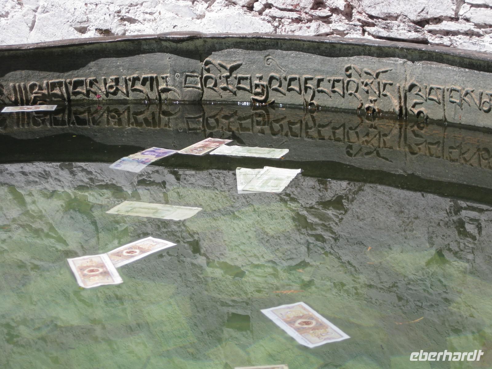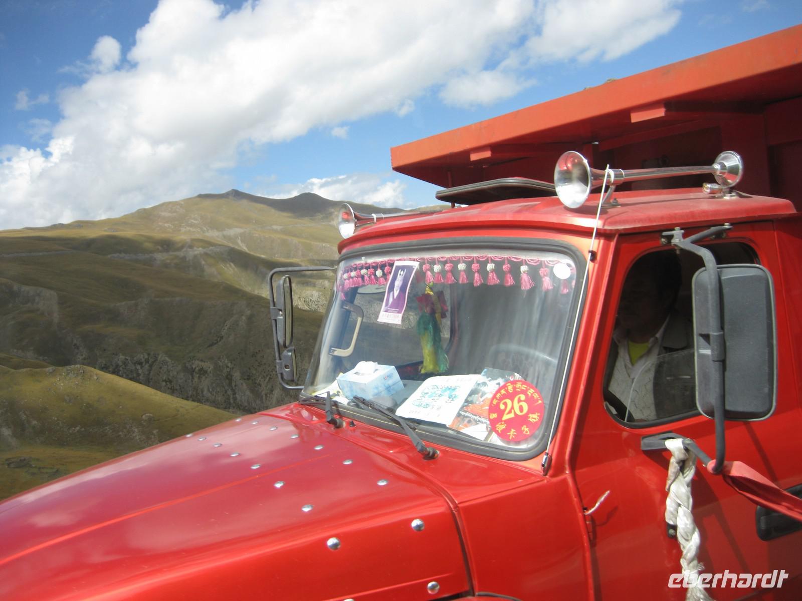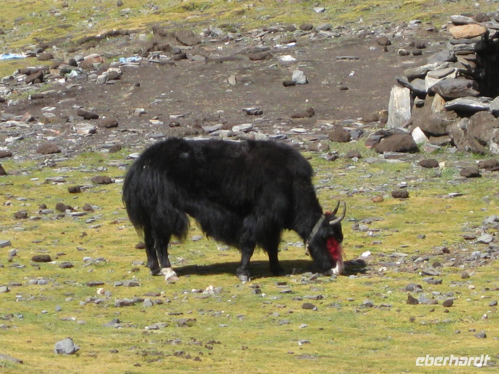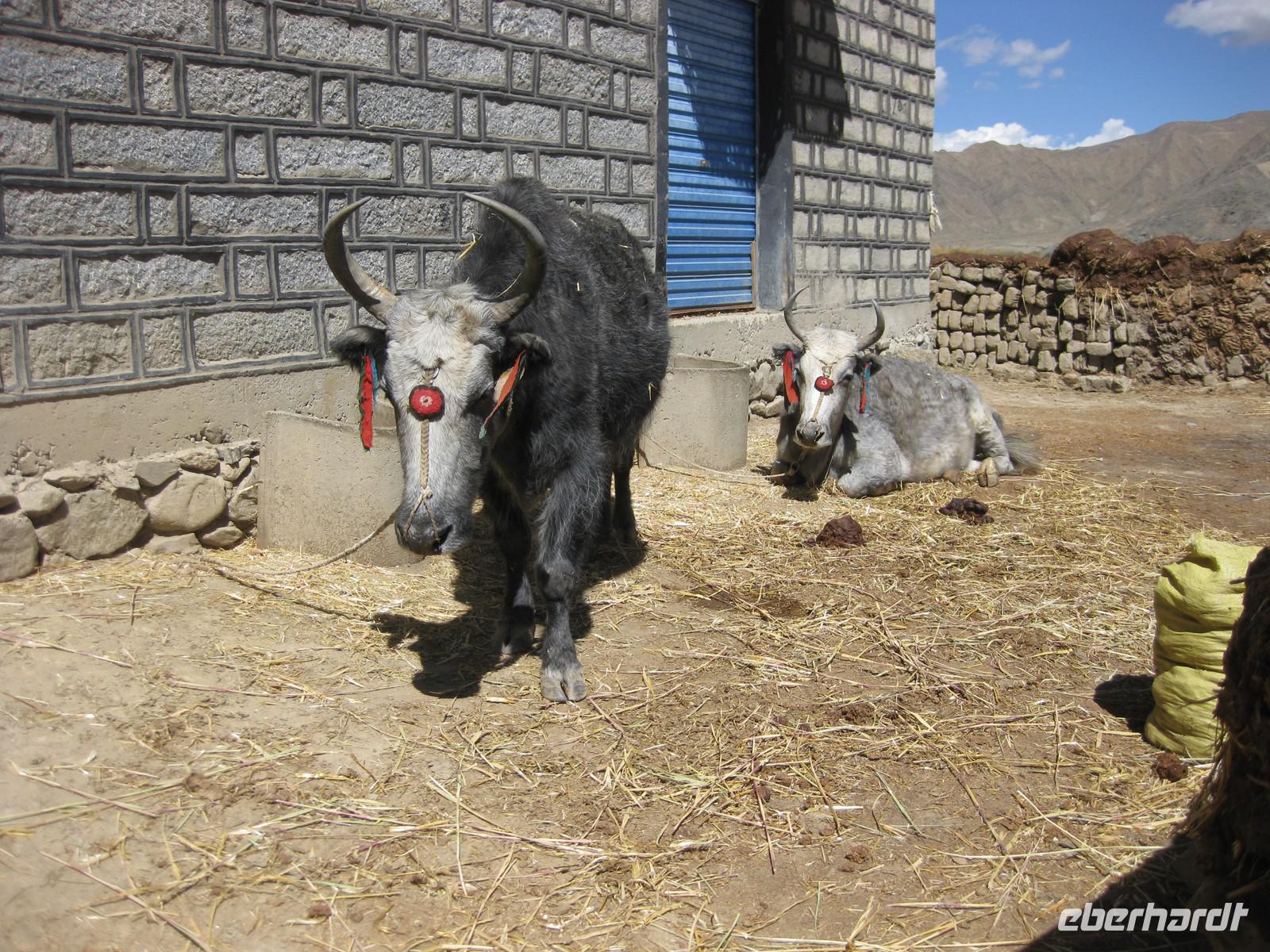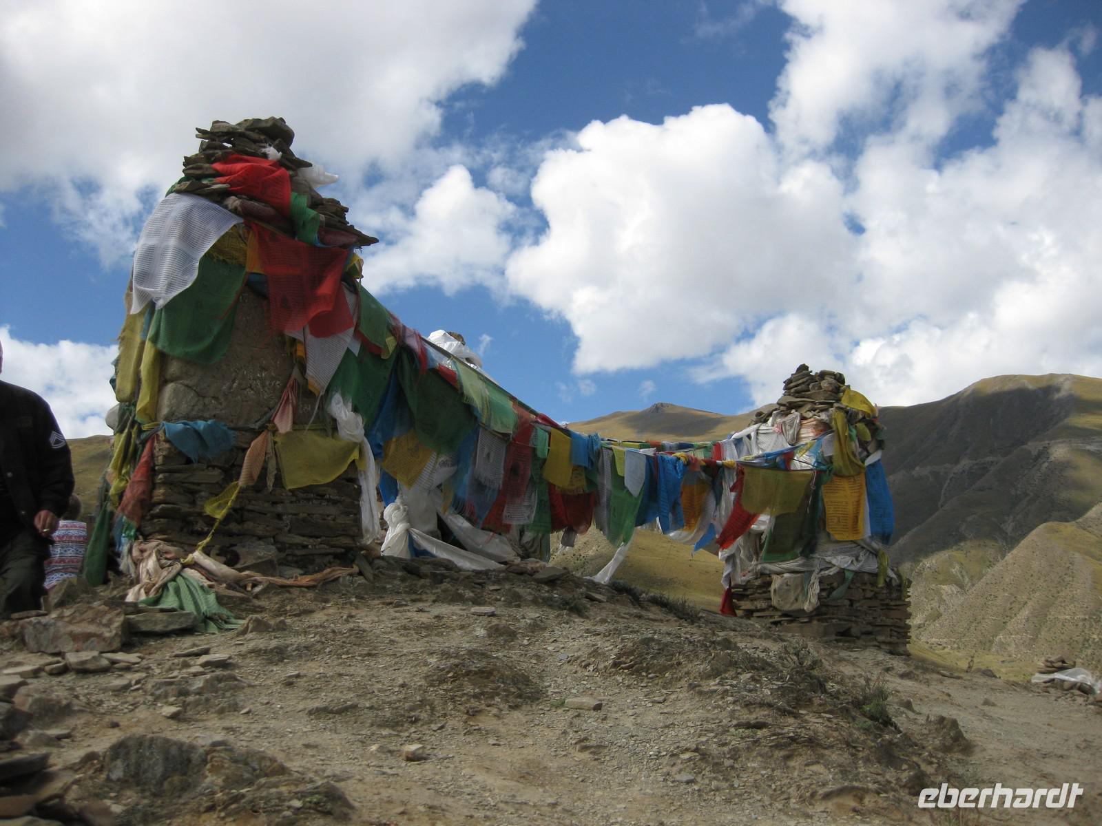 Heute haben wir ein etwas anderes Frühstück. Der Frühstücksraum ist tibetisch eingerichtet. Es gibt Kaffee, Tee, Saft, Yakbutter, Eier, Marmelade und eine Art Fladenbrot. Im ersten Moment etwas gewöhnungsbedürftig, aber eigentlich gar nicht so schlecht - eben mal landestypisch tibetisch für uns Europäer.