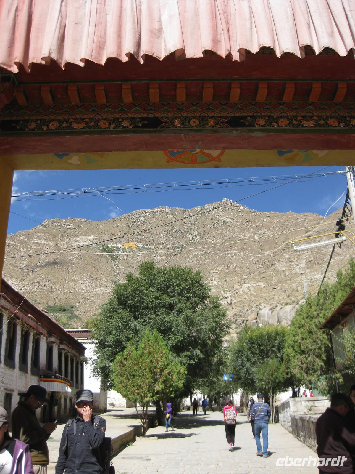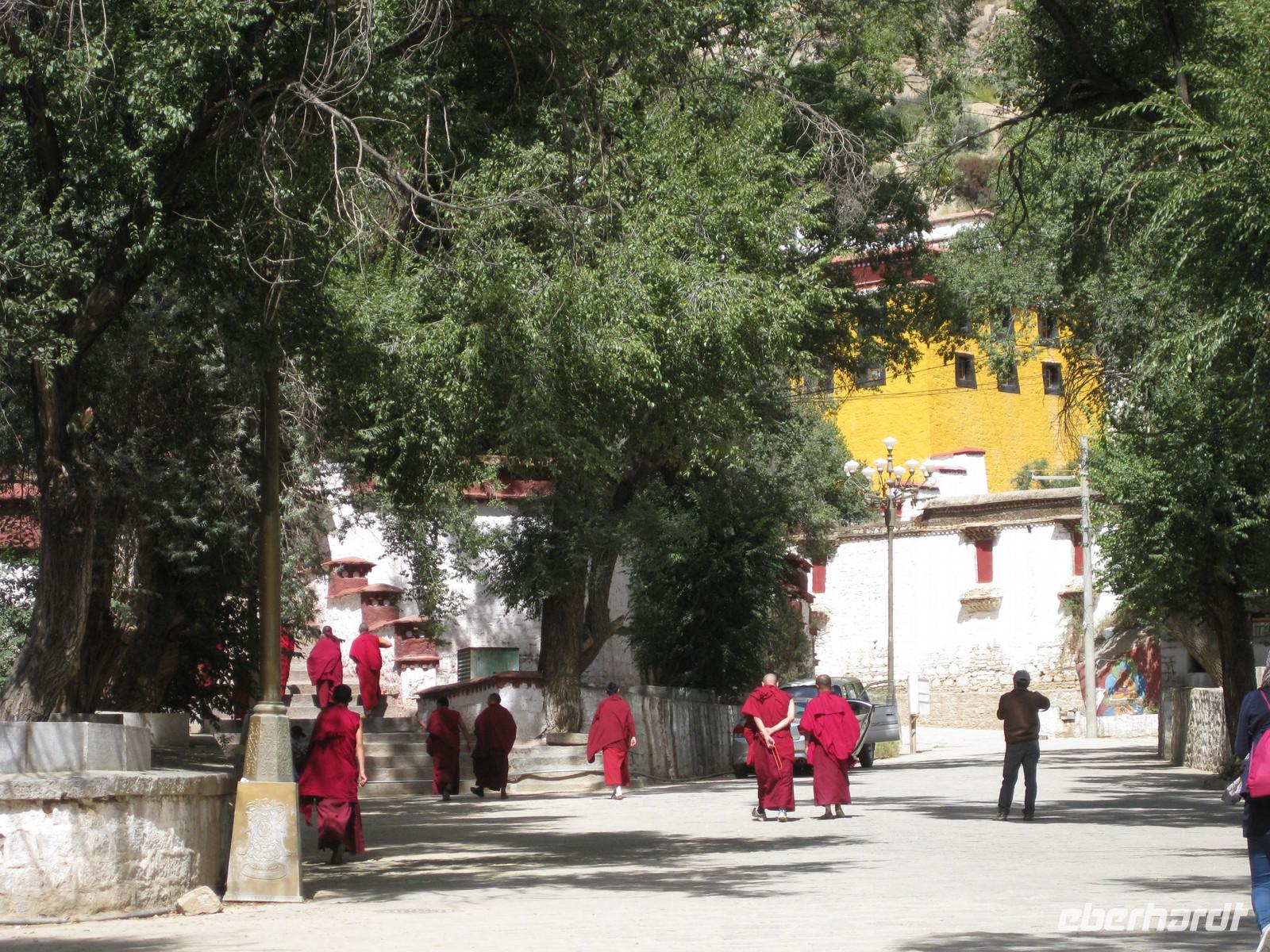 14.30 Uhr treffen wir uns wieder und fahren an den nördlichen Stadtrand zum Kloster Sera. Auch Sera wurde im 15. Jh. gegründet. Seine Gründer pflegten ein enges Verhältnis zu China. Im Kloster studierten im 20. Jh. bis zu 6.000 Mönche an drei Fakultäten. Yang führt uns durch das Kloster. Ein besonderer Höhepunkt im Kloster ist die Debattierstunde der Mönche, die wir als Besucher des Klosters miterleben können. Yang hat uns dazu vorher schon eingestimmt. Sie hat uns die Bedeutung der einzelnen Gesten erklärt. Die Mönche diskutieren im Garten des Klosters auf einem extra dafür bestimmten Platz. Das ist sehr interessant. Nach unserer Besichtigung fahren wir nach Lhasa zum Hotel zurück.