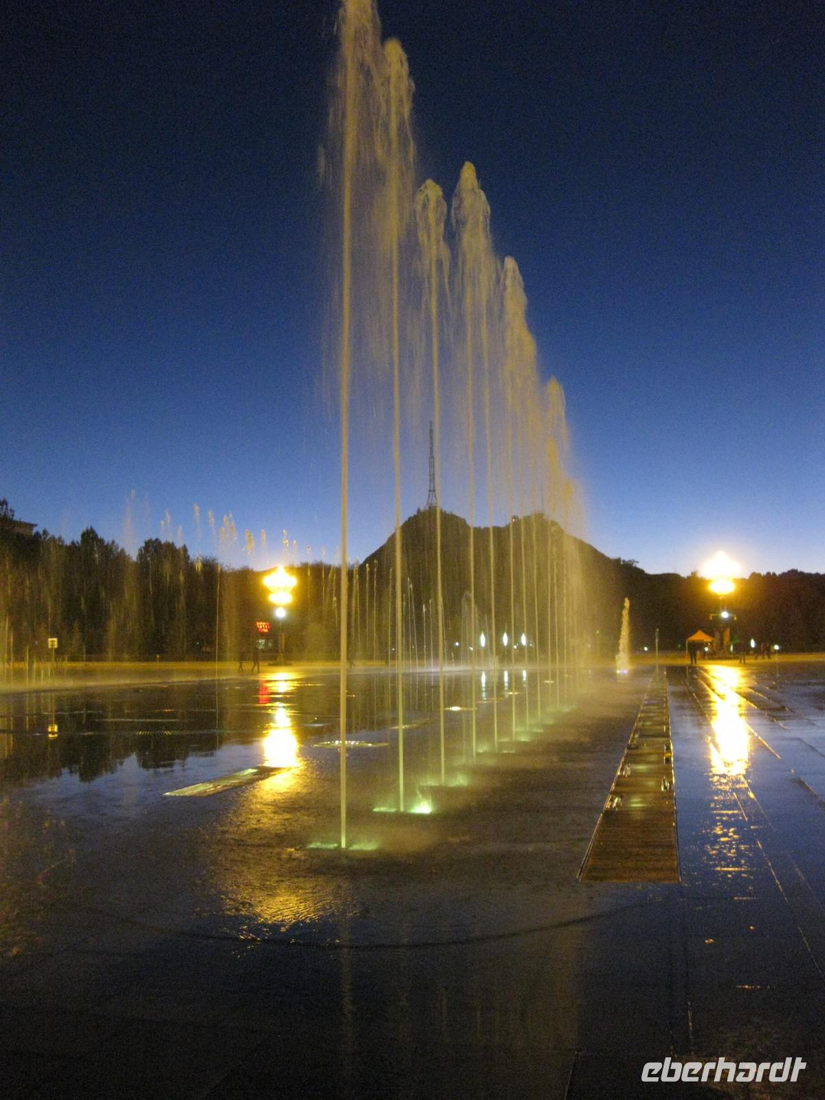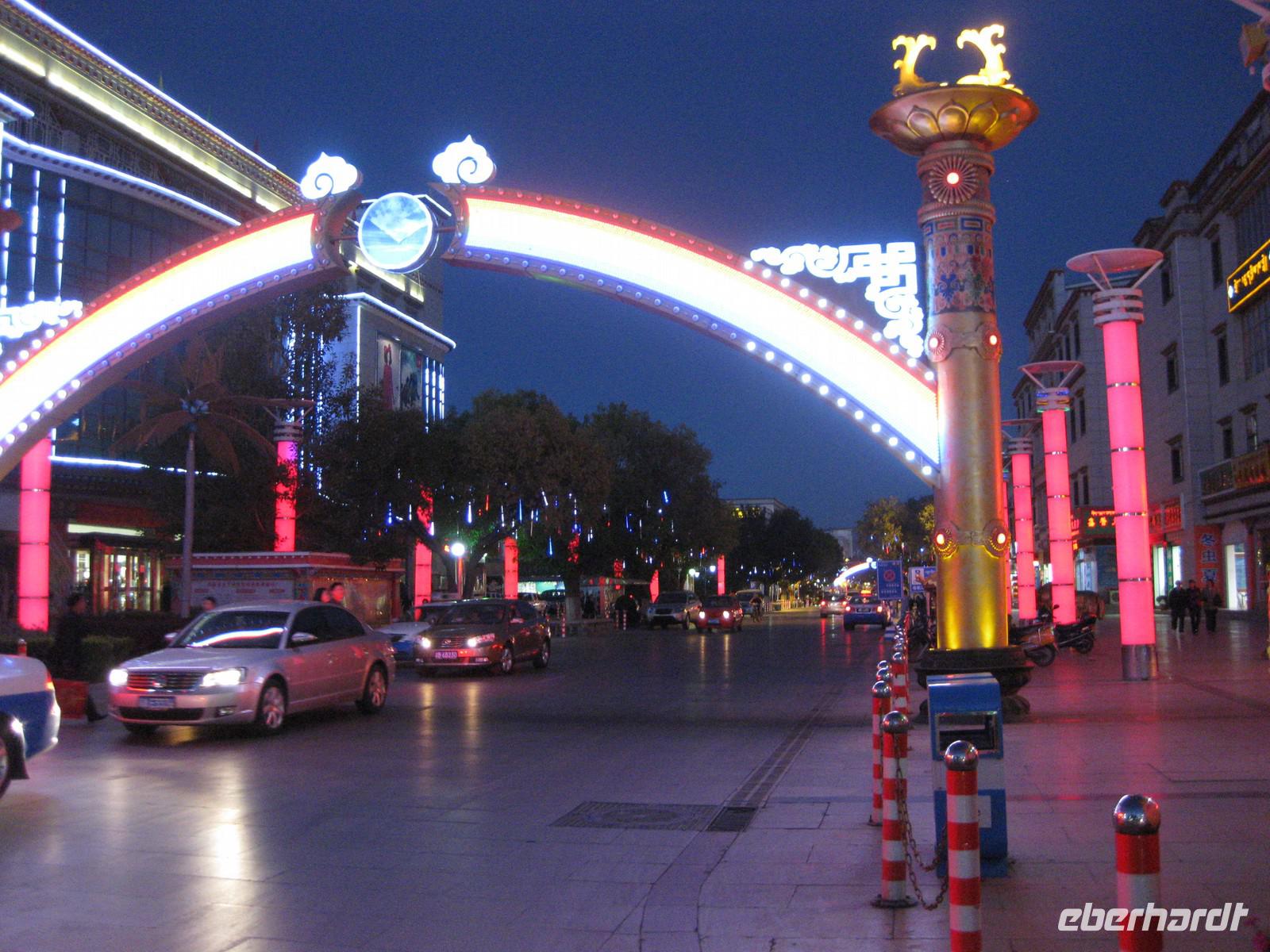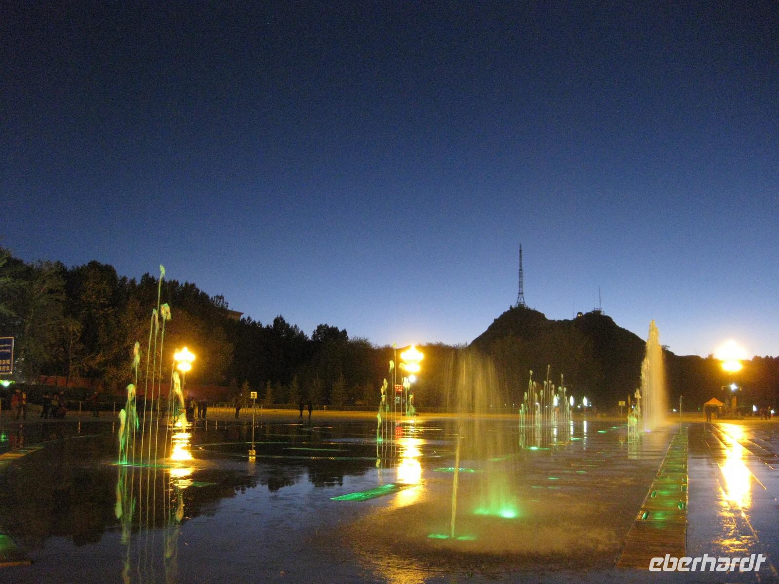 Den restlichen Nachmittag nutzen wir für individuelle Bummel durch die Stadt. Das Abendessen nehmen wir heute im Hotel ein. Nach dem Abendessen machen wir alle zusammen noch einen Spaziergang bis zum Platz vor dem Potala-Palast. Dort bietet sich uns ein unvergessliches Bild - der beleuchtete Potala-Palast. Auf dem riesigen Platz vor dem Palast sind beleuchteten Wasserspiele, die zu Musik die Gestalt ihrer Fontänen ändern. Wir verbringen dort den Rest des Abends und geben uns ganz den Eindrücken hin. Für den Rückweg zum Hotel mieten wir uns Fahrrad-Rickschas. Wir haben viel Spaß dabei. Diese Fahrt komplettiert den wunderschönen Abend.