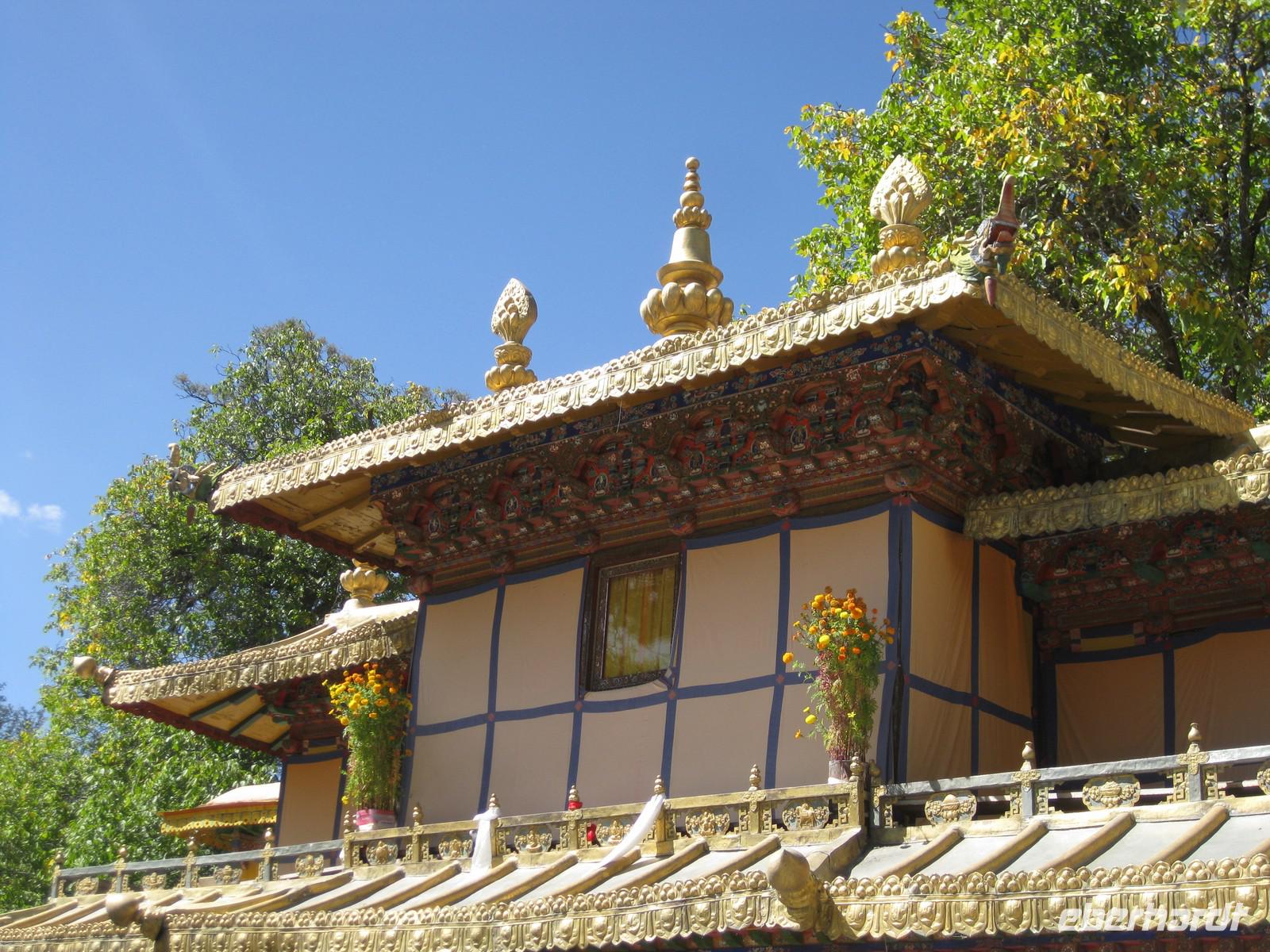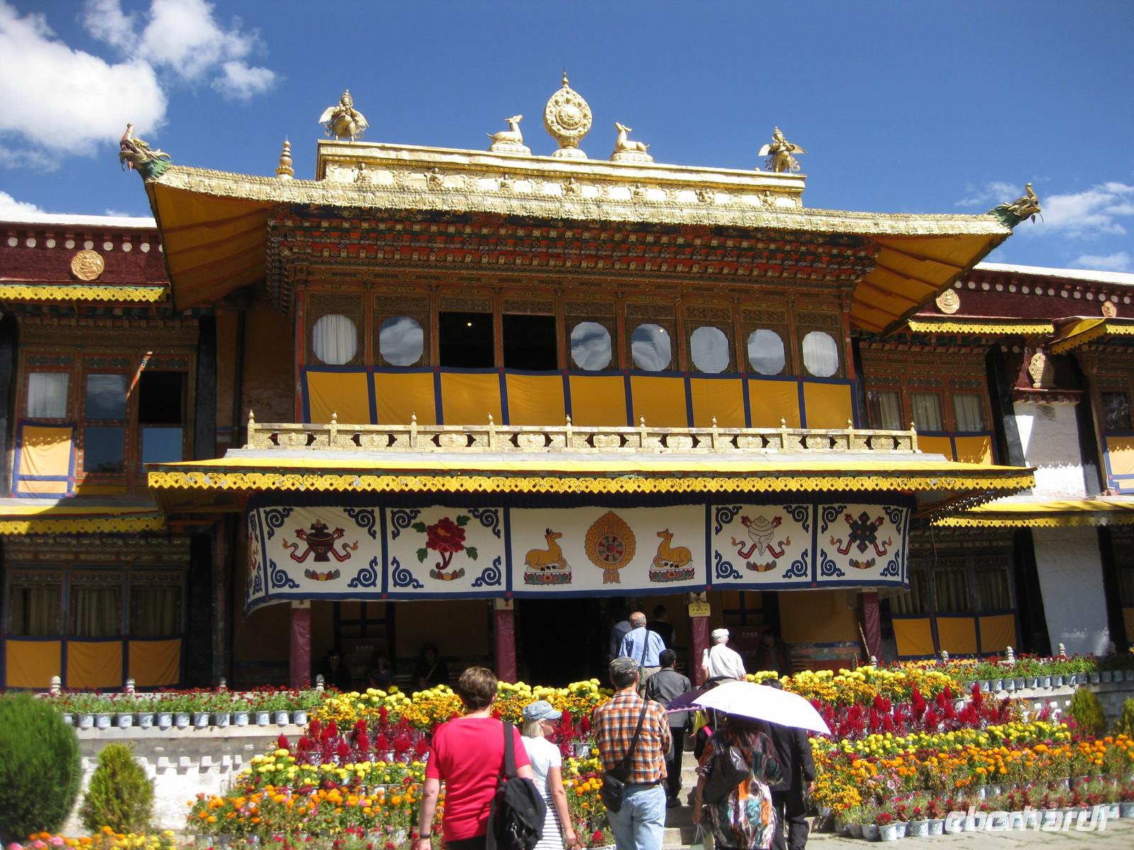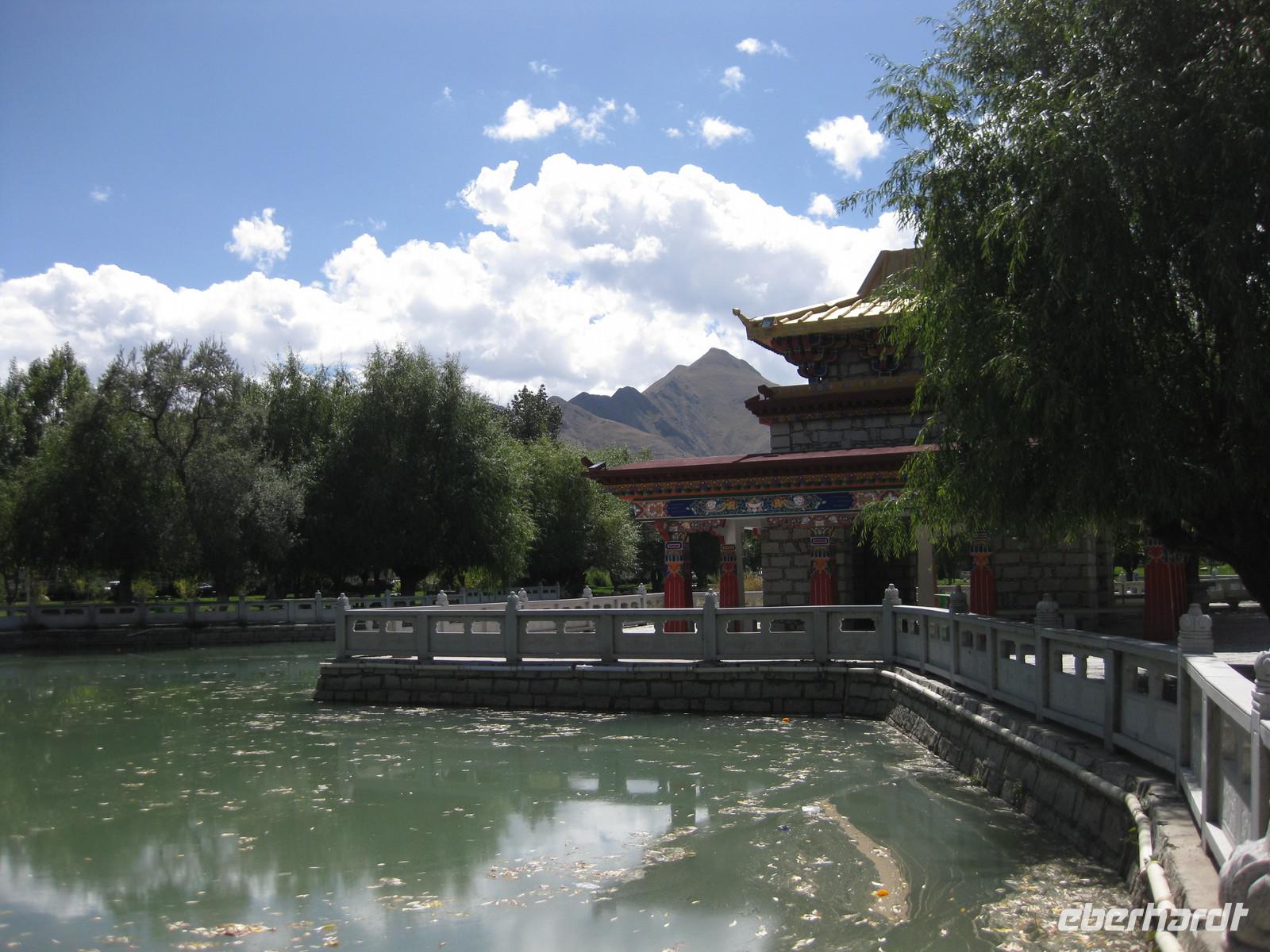 Im Anschluss daran fahren wir zur Sommerresidenz (Kloster Norbulinka) des Dalai Lama. Auch hier haben wir eine sehr interessante Führung durch den Park. Wir besichtigen die 1956 fertig gestellte Sommerresidenz des derzeitigen Dalai Lamas. Yang zeigt uns die riesige, wunderschöne Parkanlage mit den Sommerpalästen der einzelnen Dalai Lamas. Der Garten ist mit unzähligen Blumen geschmückt. Dann fahren wir zum Hotel zurück und machen eine kleine Mittagspause.