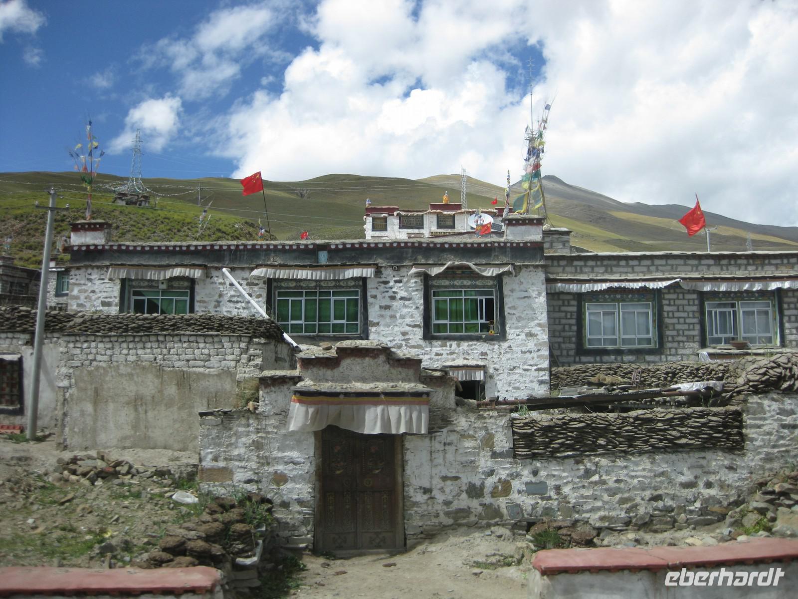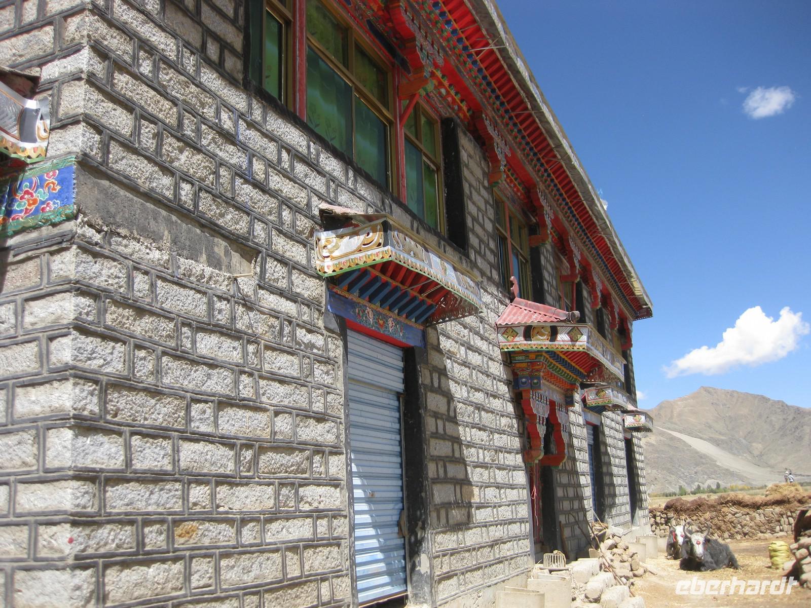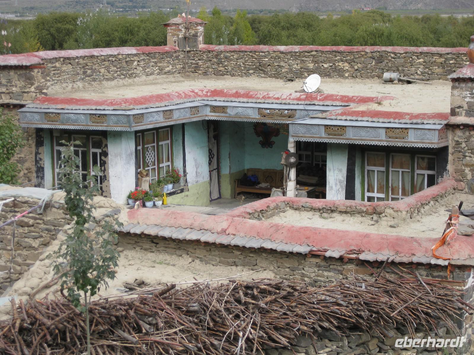 Nach dem Frühstück starten wir um 9.00 Uhr zu unserer Fahrt zurück nach Lhasa. Unterwegs, gar nicht so weit von Shigatse entfernt, besuchen wir eine tibetische Familie. Wir wollen der Familie einen unangekündigten Besuch abstatten. Erst sieht es so aus, als ob keiner zu Hause wäre. Aber dann werden wir doch hereingelassen und sehr freundlich empfangen. So können wir einmal in ein tibetisches Wohnhaus hineinschauen. Es ist schon toll, dass wir in den intimsten Bereich einer tibetischen Familie schauen dürfen. Die Menschen hier in Tibet haben eine ganz andere Lebensart als wir Europäer. Wir sind ganz schön berührt und müssen das alles erst einmal verarbeiten.