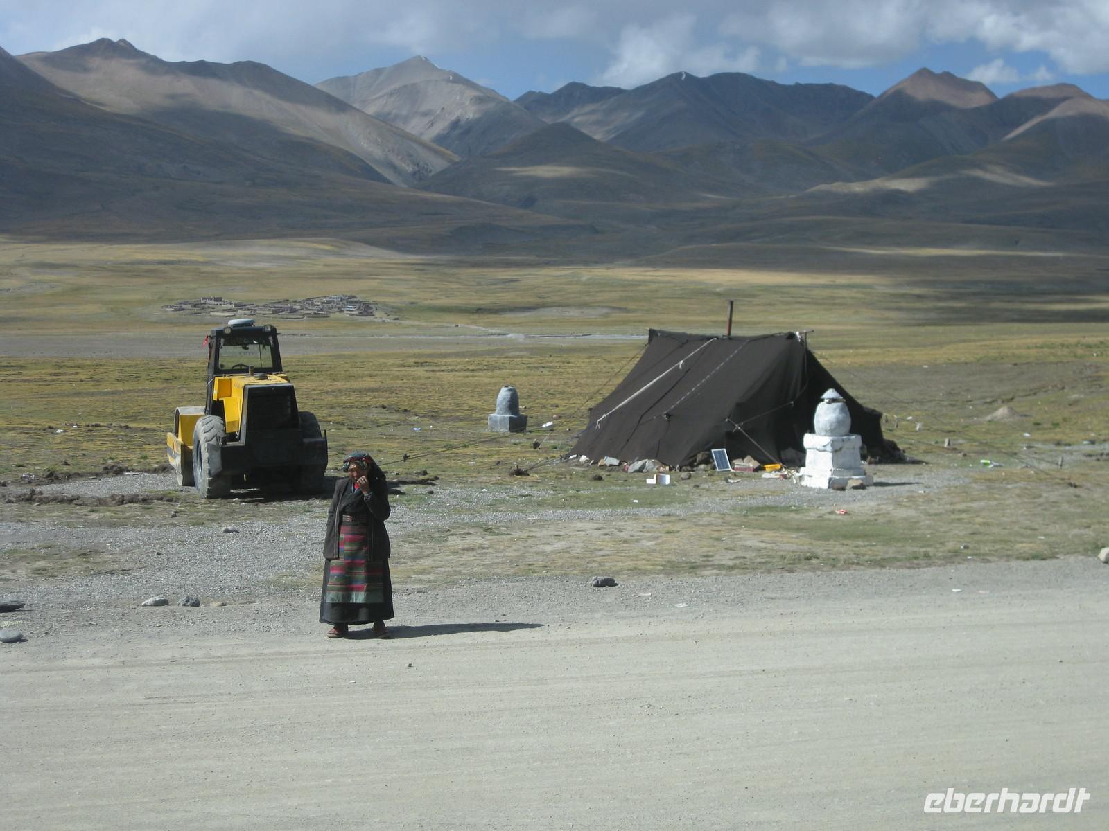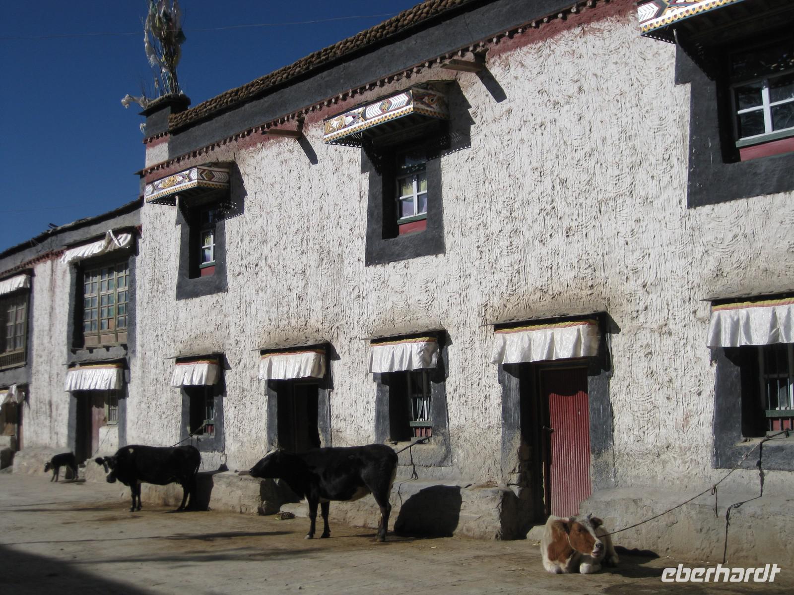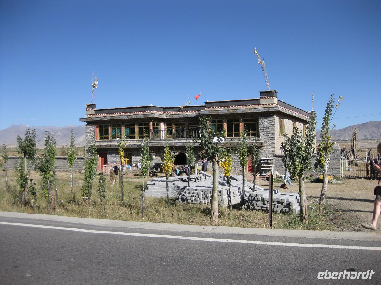 Nach dem Frühstück starten wir um 9.00 Uhr zu unserer Fahrt zurück nach Lhasa. Unterwegs, gar nicht so weit von Shigatse entfernt, besuchen wir eine tibetische Familie. Wir wollen der Familie einen unangekündigten Besuch abstatten. Erst sieht es so aus, als ob keiner zu Hause wäre. Aber dann werden wir doch hereingelassen und sehr freundlich empfangen. So können wir einmal in ein tibetisches Wohnhaus hineinschauen. Es ist schon toll, dass wir in den intimsten Bereich einer tibetischen Familie schauen dürfen. Die Menschen hier in Tibet haben eine ganz andere Lebensart als wir Europäer. Wir sind ganz schön berührt und müssen das alles erst einmal verarbeiten.