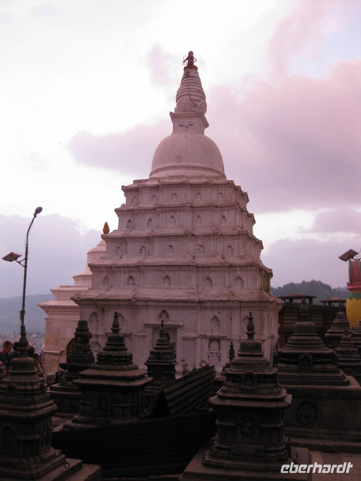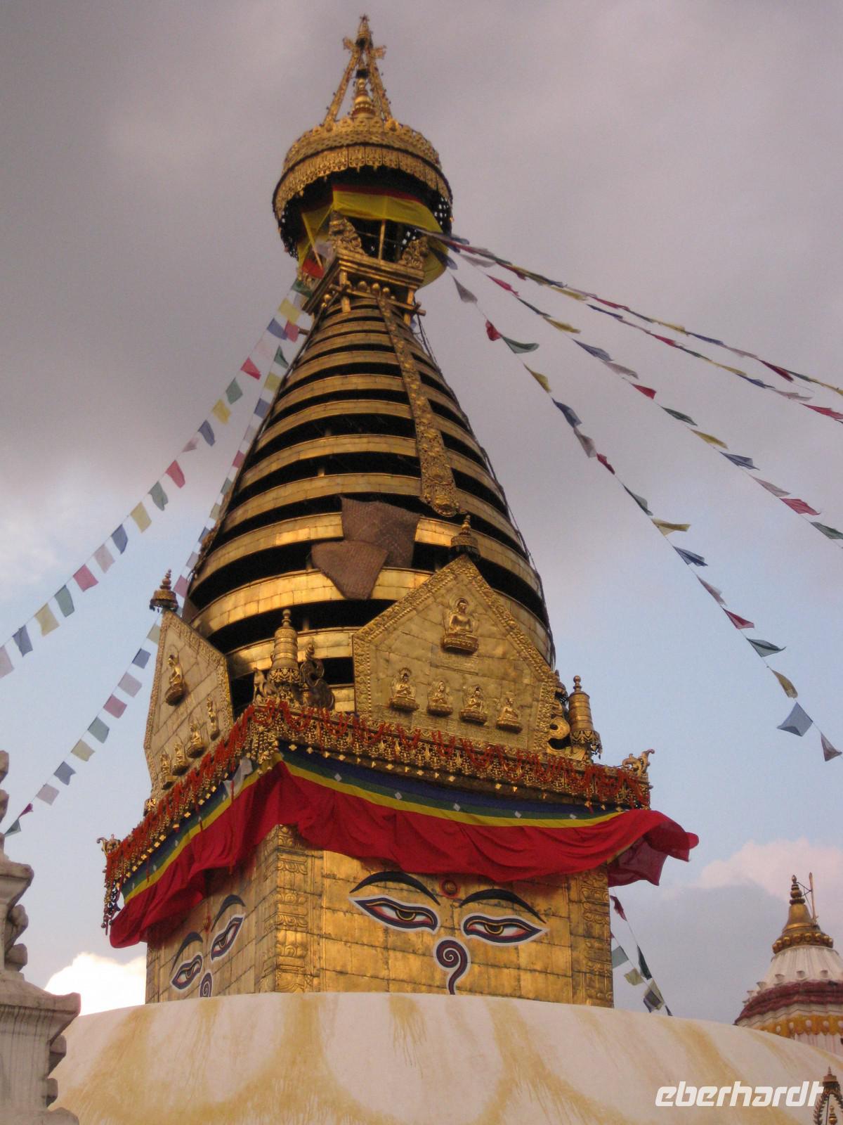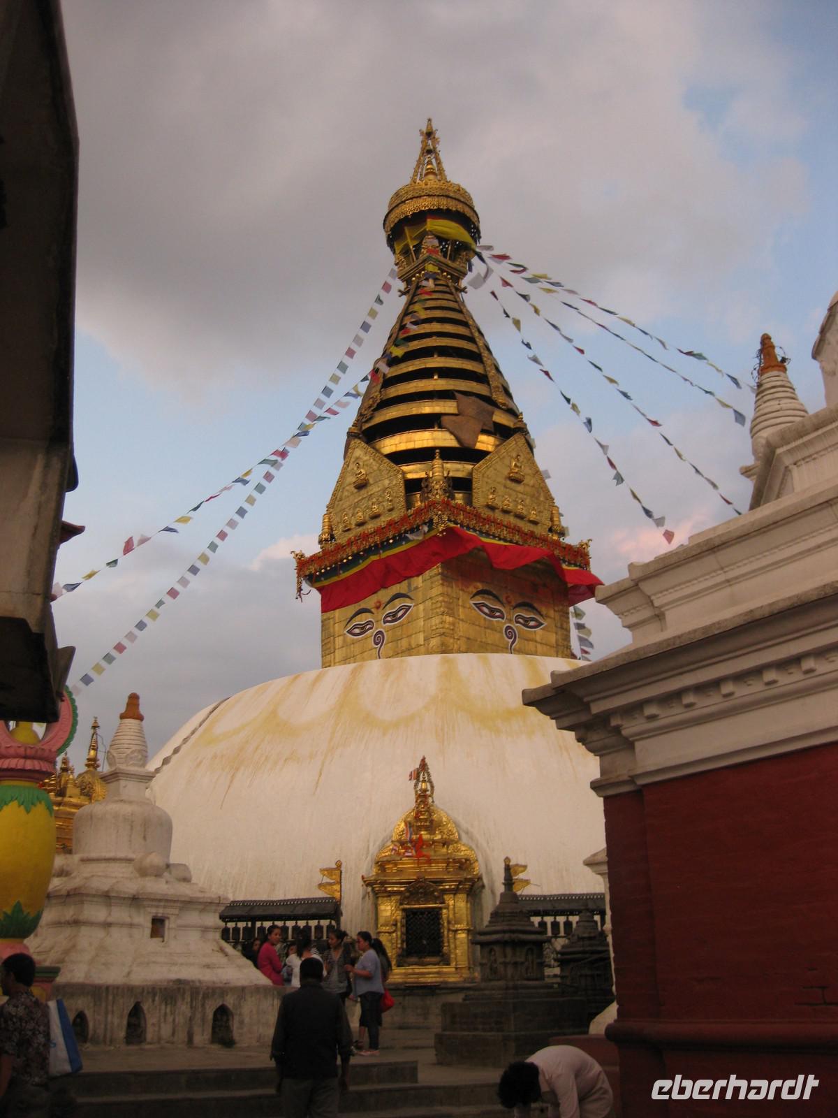 Der restliche Nachmittag steht zur freien Verfügung. Die meisten von uns statten der Stupa von Bodhnath ganz in der Nähe unseres Hotels noch einen Besuch ab. Sie ist das wichtigste buddhistische Heiligtum Nepals. In unmittelbarer Umgebung befinden sich einige Klostergebäude. Bodhnath ist von einer kreisförmigen tibetischen Siedlung umgeben. In den Häusern befinden sich nicht nur Wohnungen der Tibeter sondern auch viele Geschäfte und Restaurants.