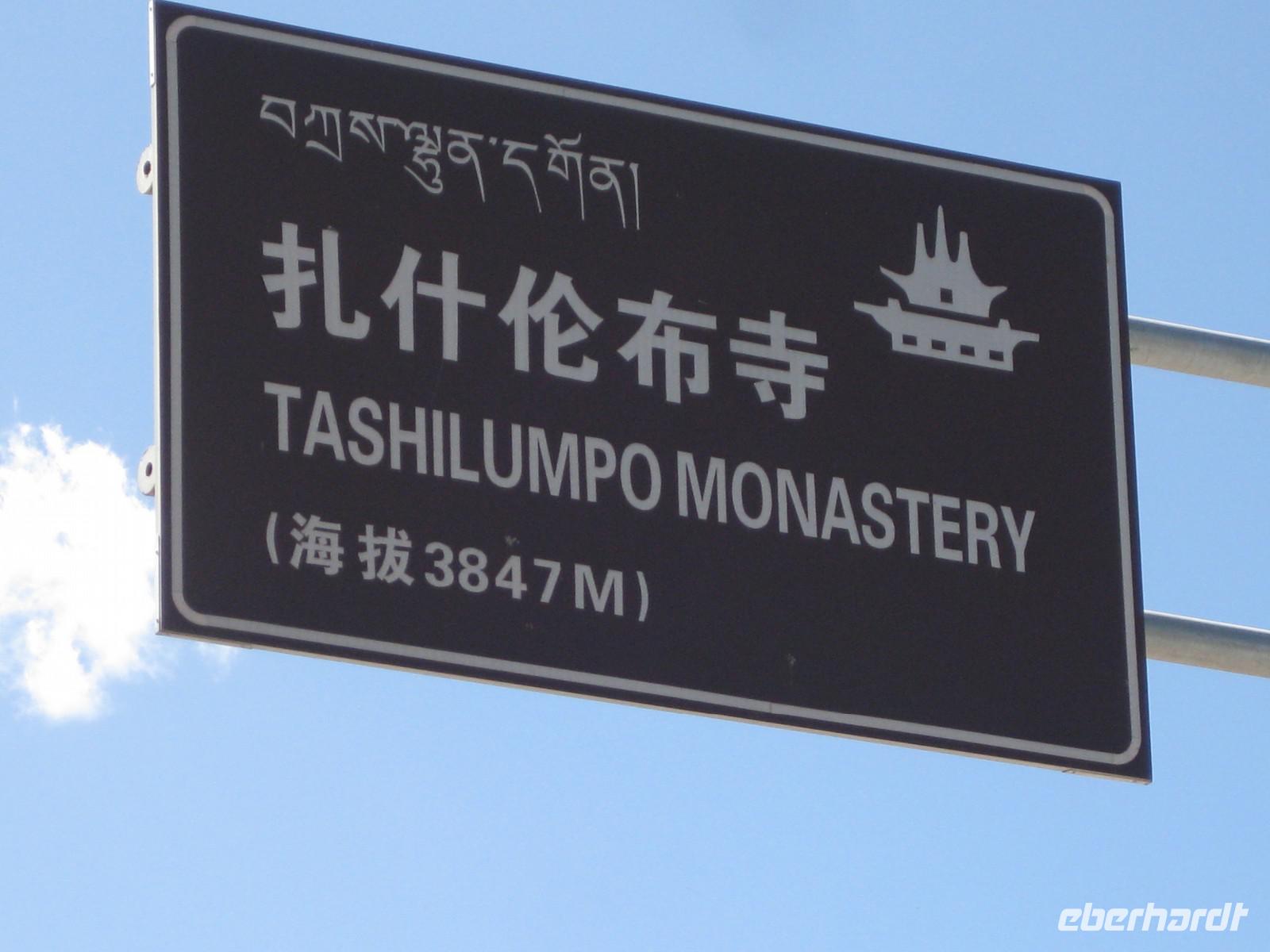 Am frühen Nachmittag um 14.00 Uhr kommen wir in unserem Hotel in Shigatse an. Wir machen erst einmal eine Pause. Dann besuchen wir das Tashilhünpo Kloster bei Shigatse. Es ist der Sitz des jeweiligen Pänchen Lama (Gelehrter Lama). In vier Fakultäten studierten hier ca. 3.700 Mönche, heute sind es noch 800. Yang führt uns durch das Kloster und erklärt uns die einzelnen Gebäude mit ihren Schätzen. Eine besondere Sehenswürdigkeit davon ist die größte Buddha-Statue Tibets, die sich hier im Kloster befindet. Sie misst 26,20 m in der Höhe und wurde 1914 vom 9. Pänchen Lama errichtet. Der zentrale Klosterhof, dessen Galerien mit Wandmalereien der Tausend Buddhas verziert sind, ist ebenso sehenswert wie vieles andere hier in Tashilhünpo. Wir können nur einen Bruchteil davon besichtigen.