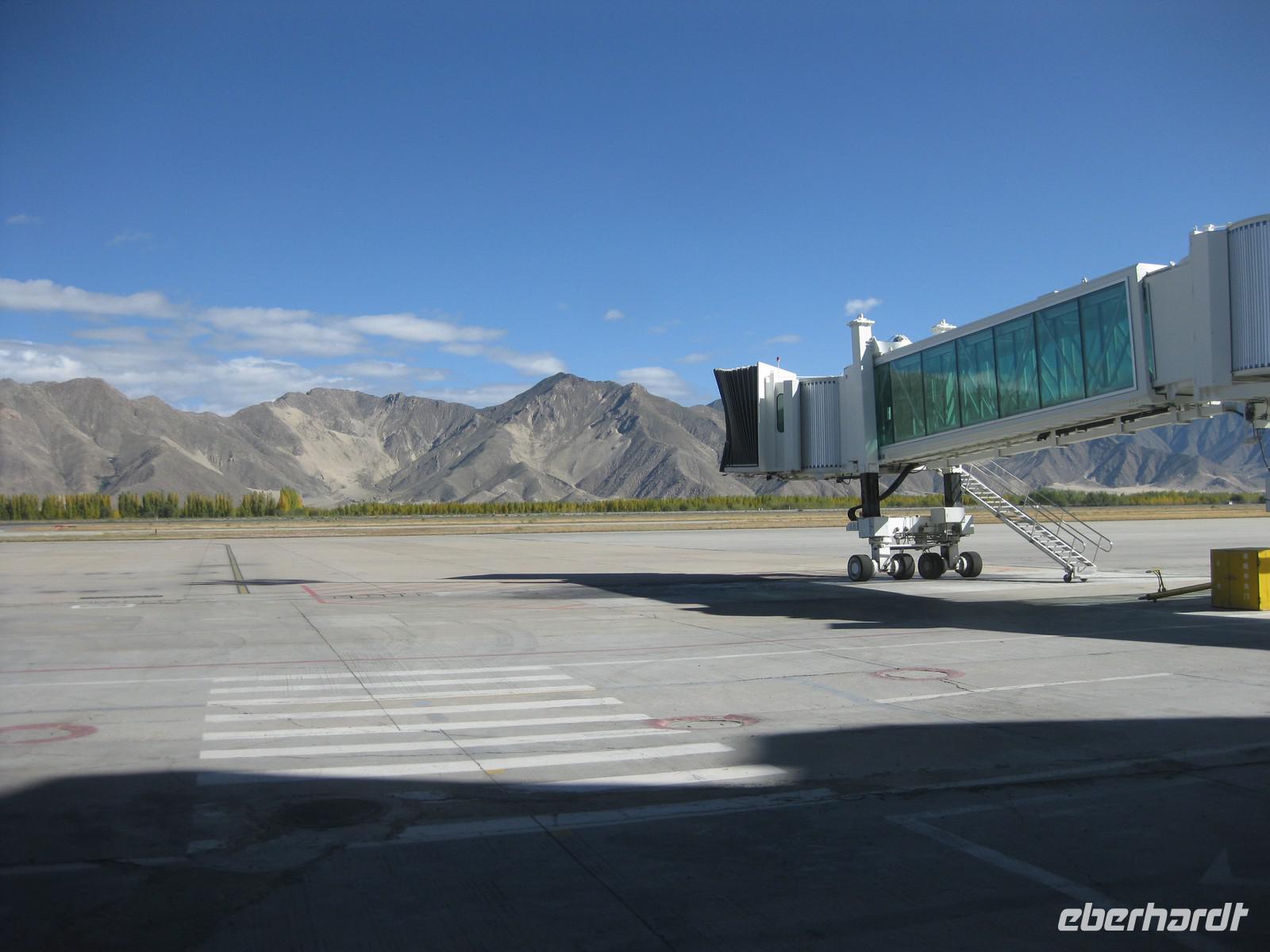Heute müssen wir wieder zeitig aufstehen, denn wir müssen schon 8.00 Uhr vom Hotel zum Flughafen Gongkar abfahren. Der Flughafen ist ungefähr 100 km von der Stadt Lhasa entfernt. Wir sind mit die ersten Passagiere, die am Flughafen eintreffen. Am Flughafen verabschieden wir uns von Yang und unserem Busfahrer und bedanken uns für die unvergesslichen Tage in ihrer tibetischen Heimat.