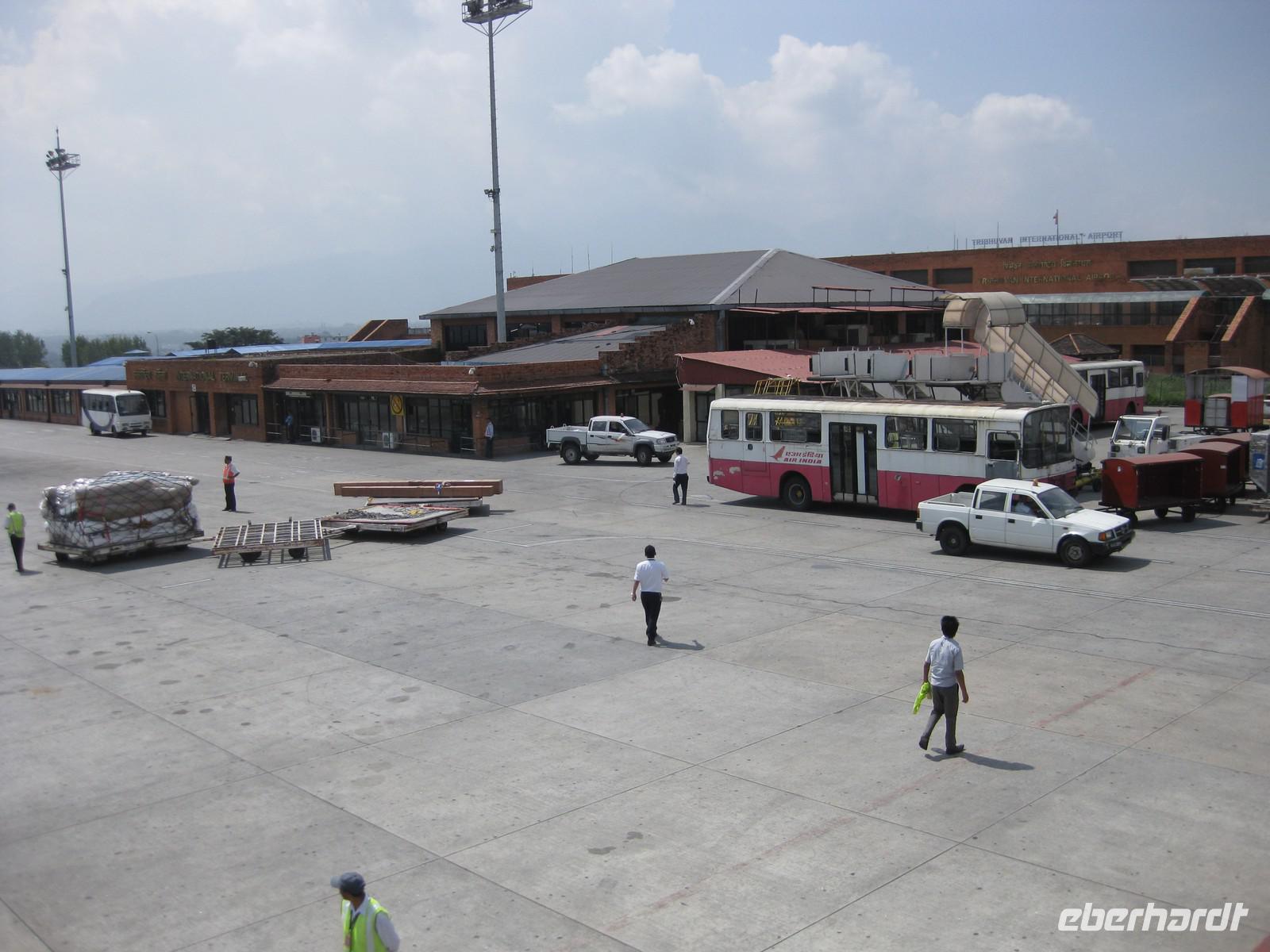 Heute heißt es Abschied nehmen. Unsere Reise geht zu Ende. 5.30 Uhr werden wir geweckt, 6.00 Uhr gibt es Frühstück und 6.30 Uhr ist Abfahrt zum Tribhuvan Airport von Kathmandu. Wir verabschieden uns von unserem Reiseleiter K.C., unserem Busfahrer und seinem Assistenten. Wir bedanken uns bei ihnen für die schöne Zeit, die wir in Nepal verbringen durften. Alle drei haben einen großen Anteil am Gelingen der Reise.